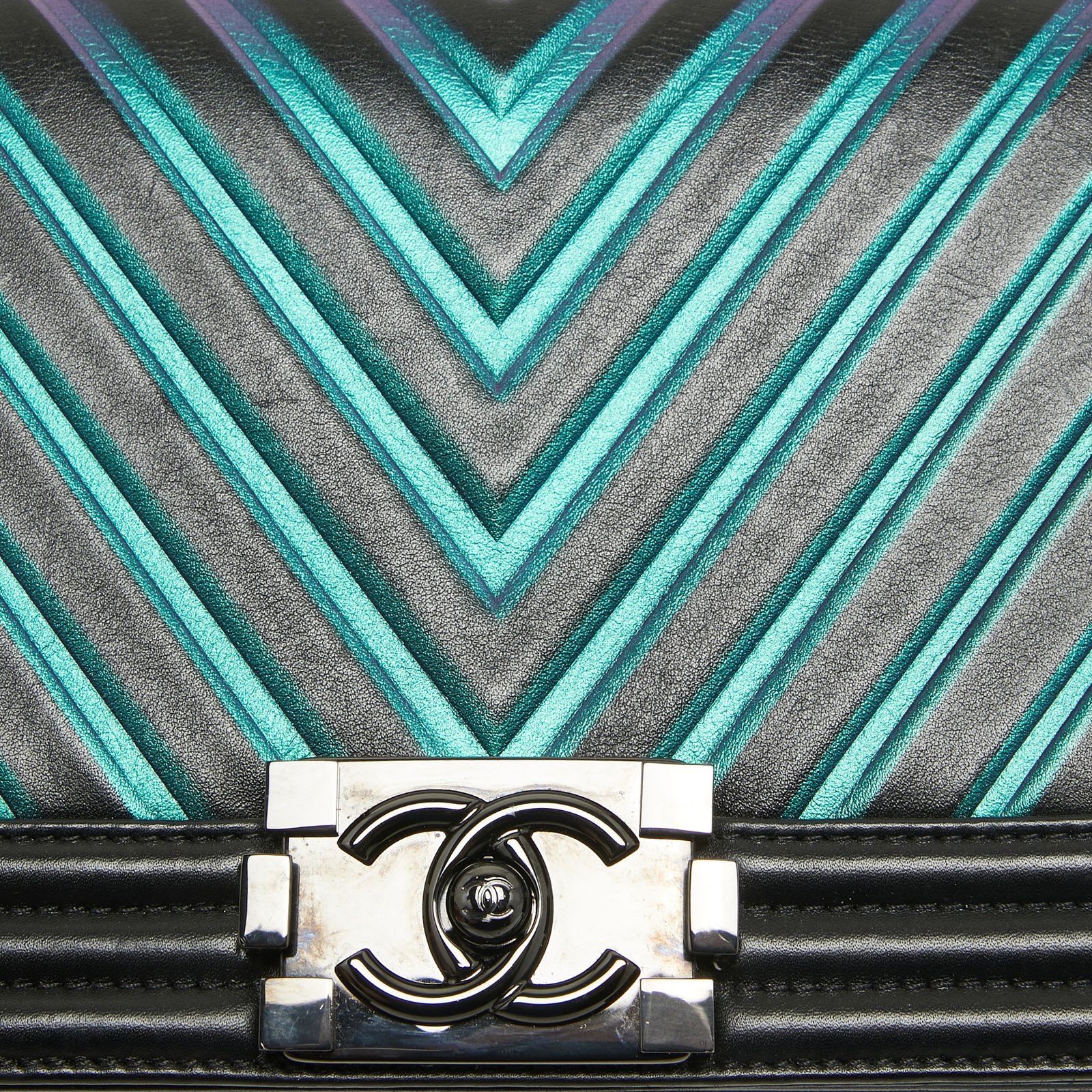Chanel Black/Holographic Chevron Leather Medium Boy Flap Bag - Image 7