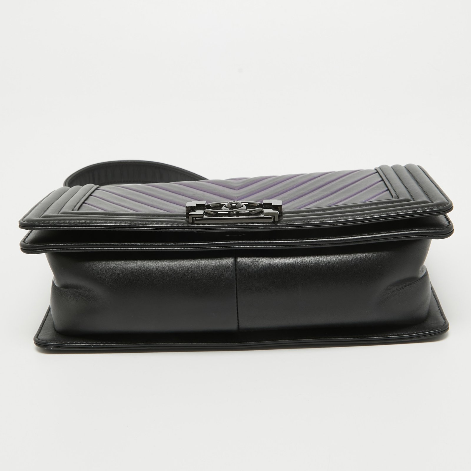 Chanel Black/Holographic Chevron Leather Medium Boy Flap Bag - Image 4