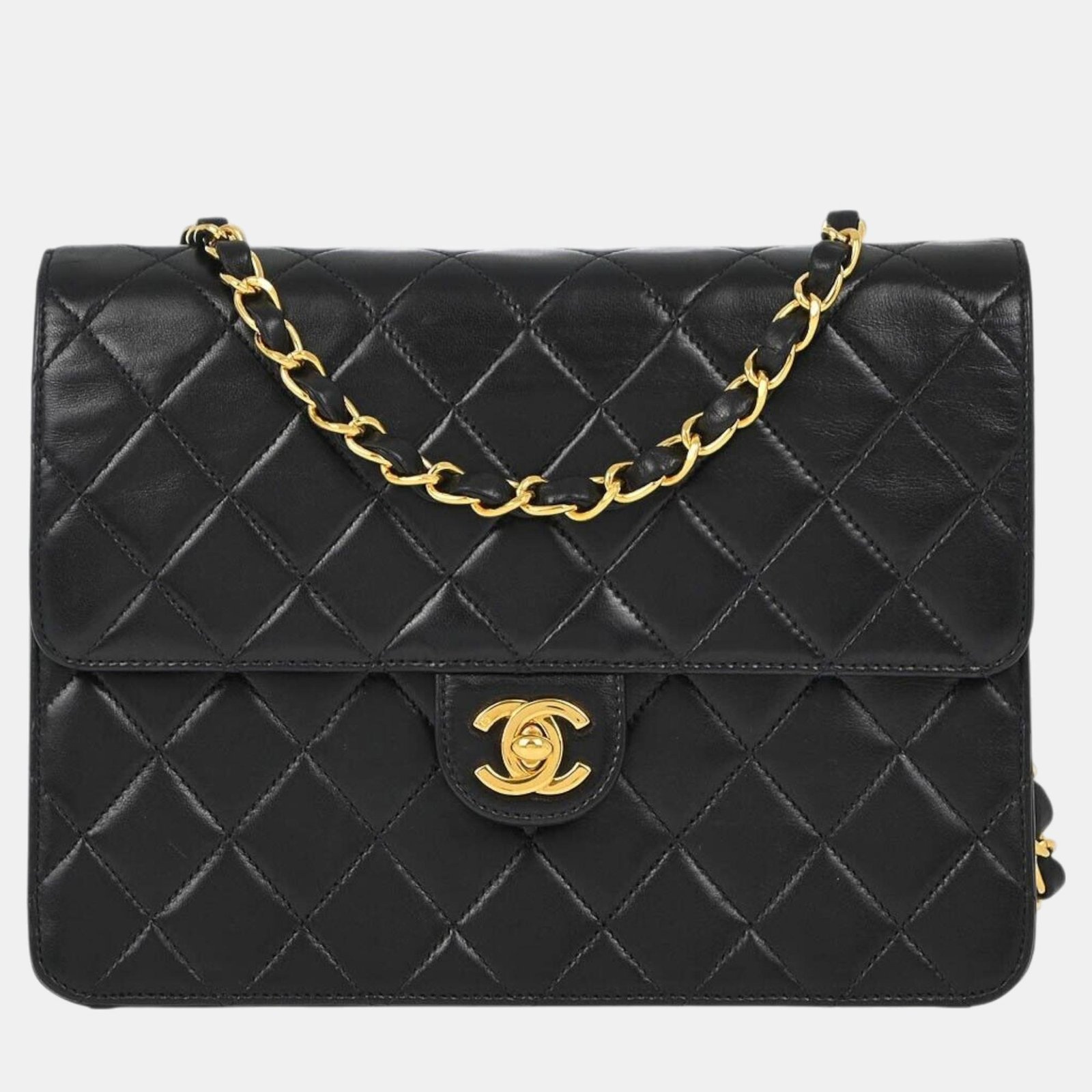 Chanel Black Lambskin Turnlock Small Half Flap Shoulder Bag
