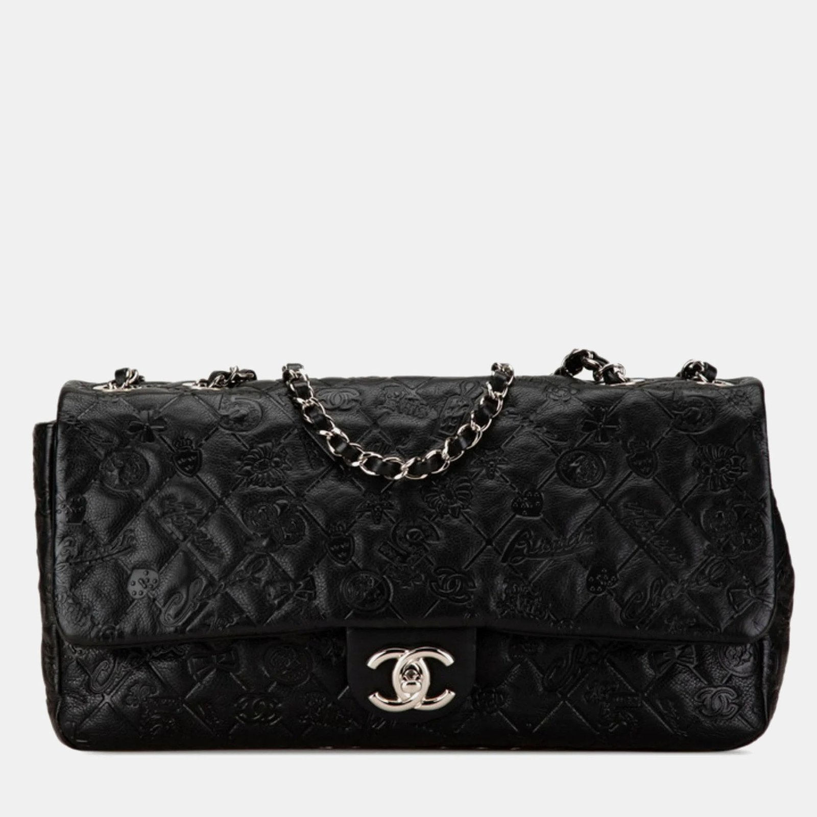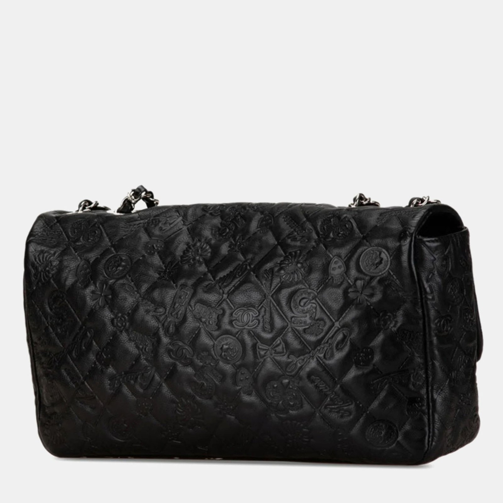Chanel Black Leather Matelasse Icon Chain Shoulder Handbag