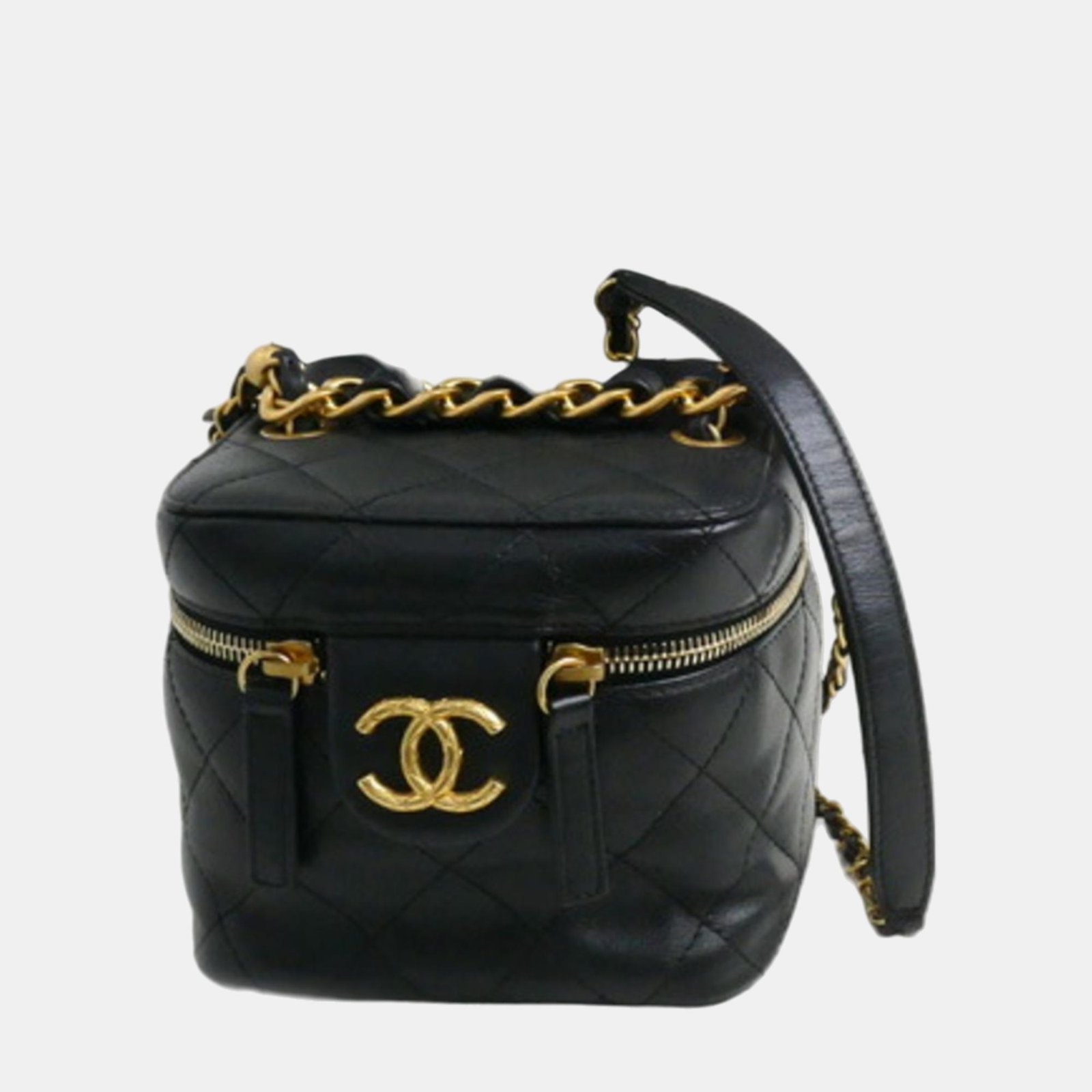 Chanel Black Matelasse Small Vanity Chain Shoulder Bag