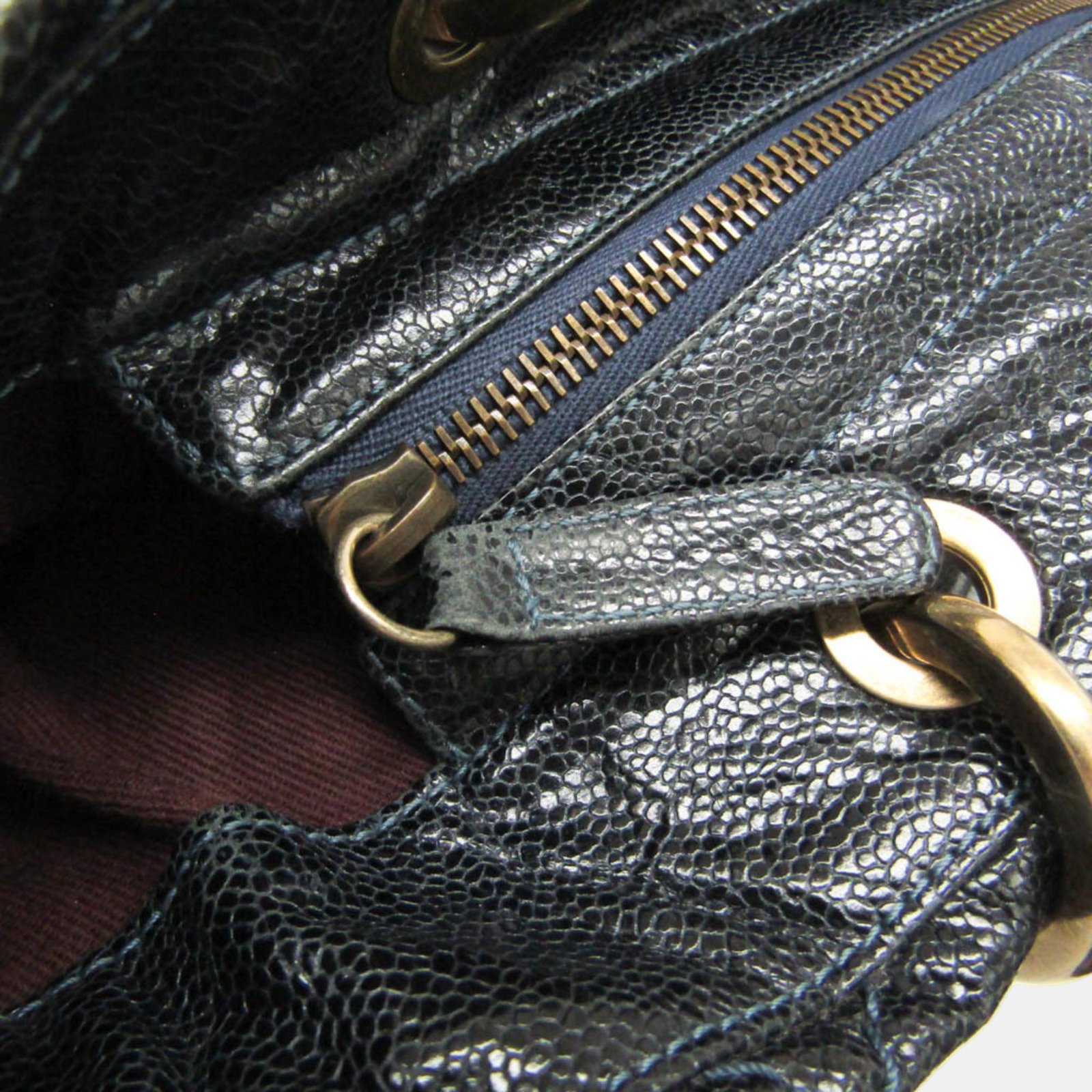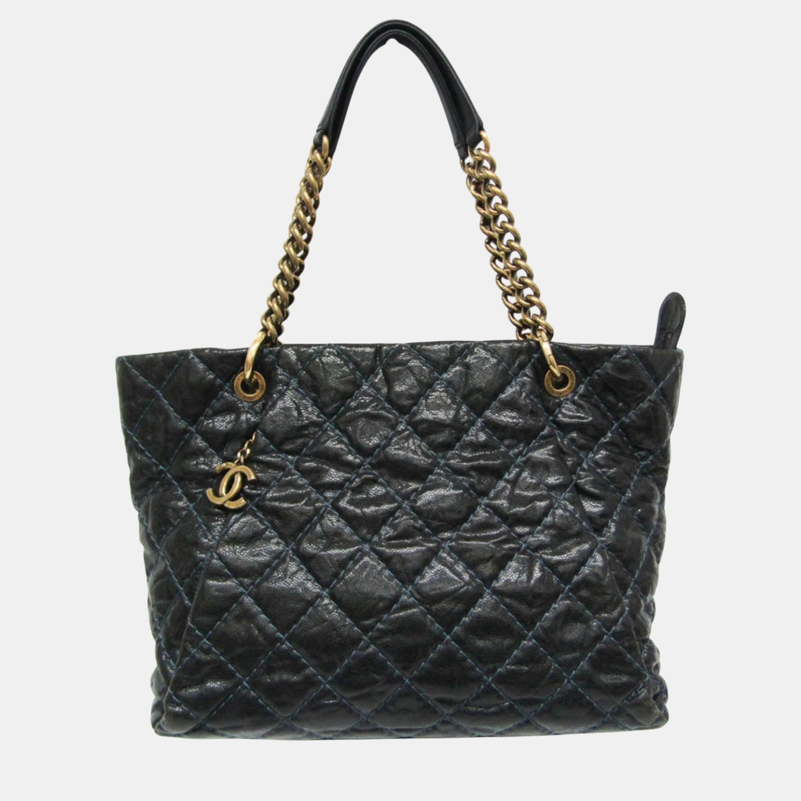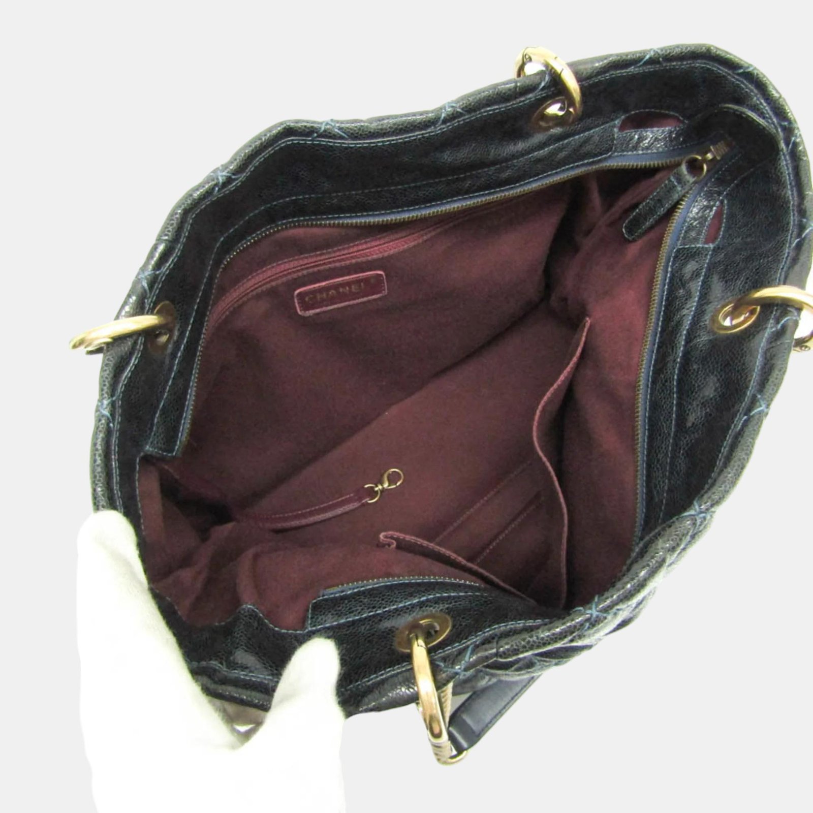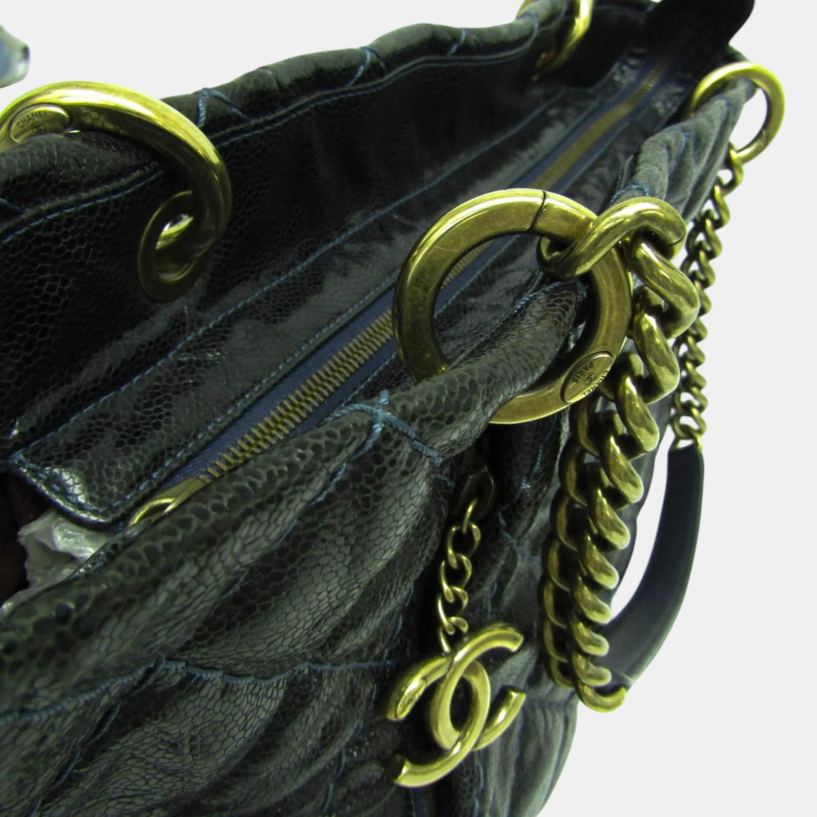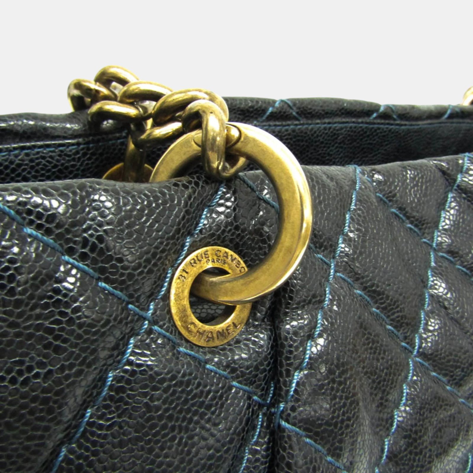 Chanel Black Navy Matelasse Chain Caviar Leather Tote Bag