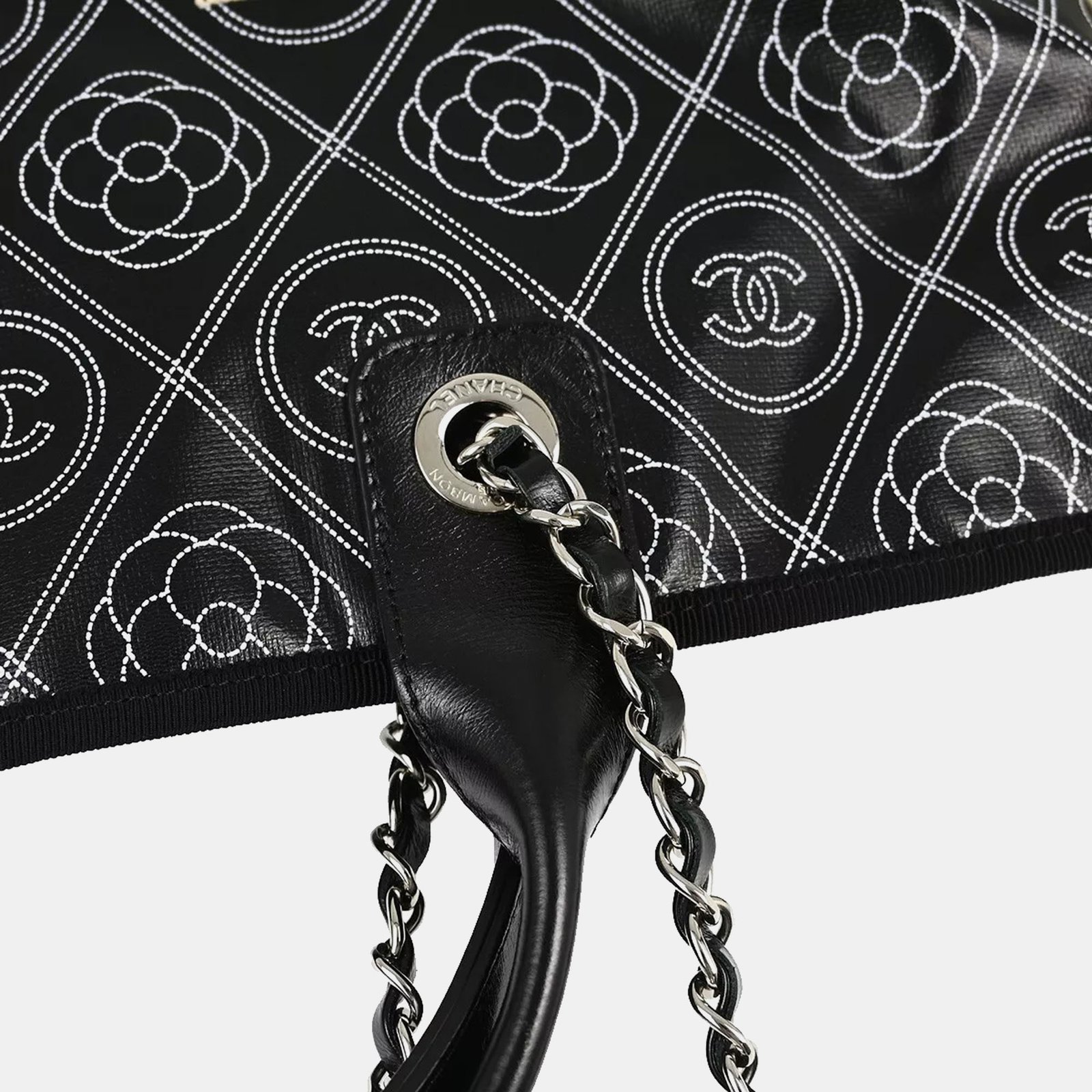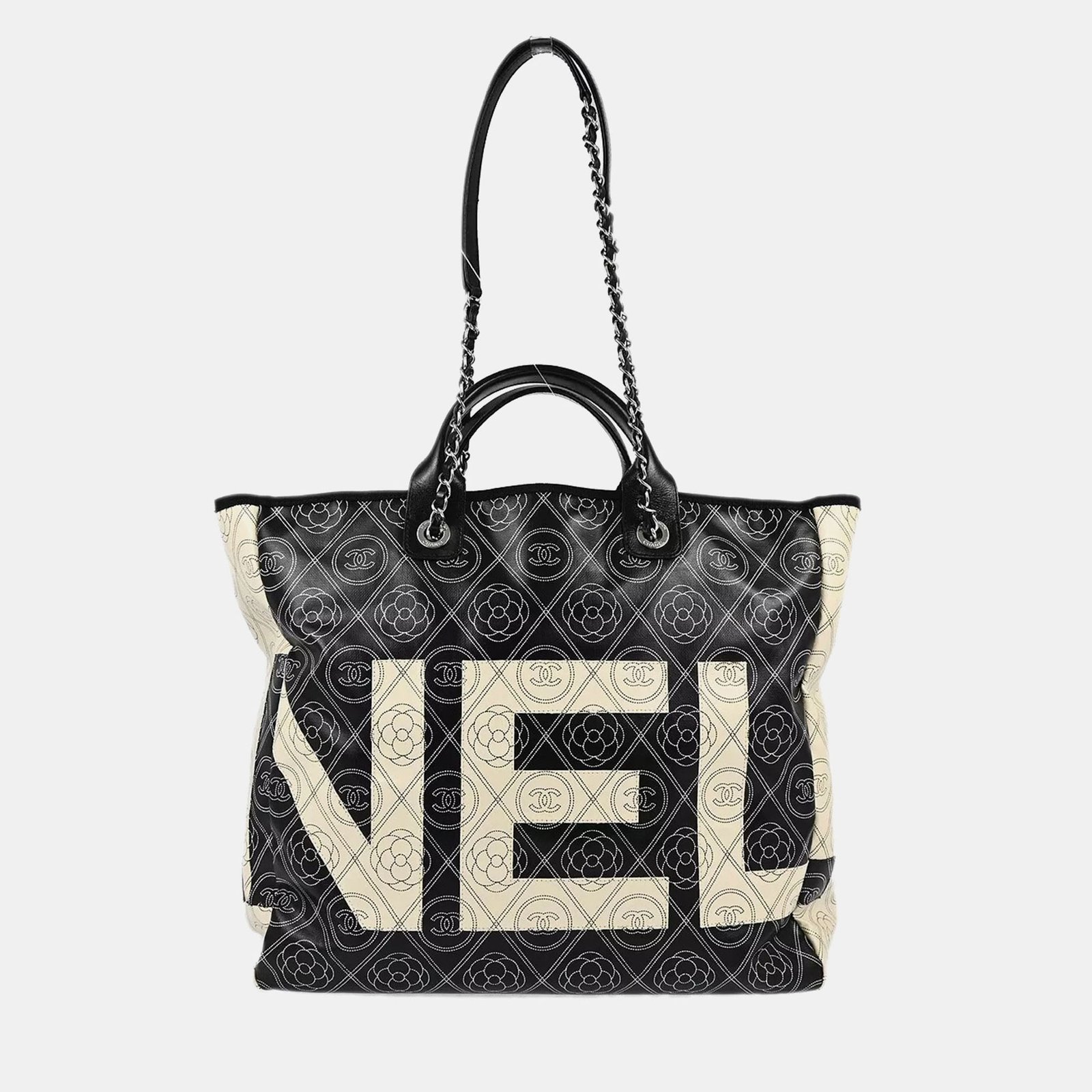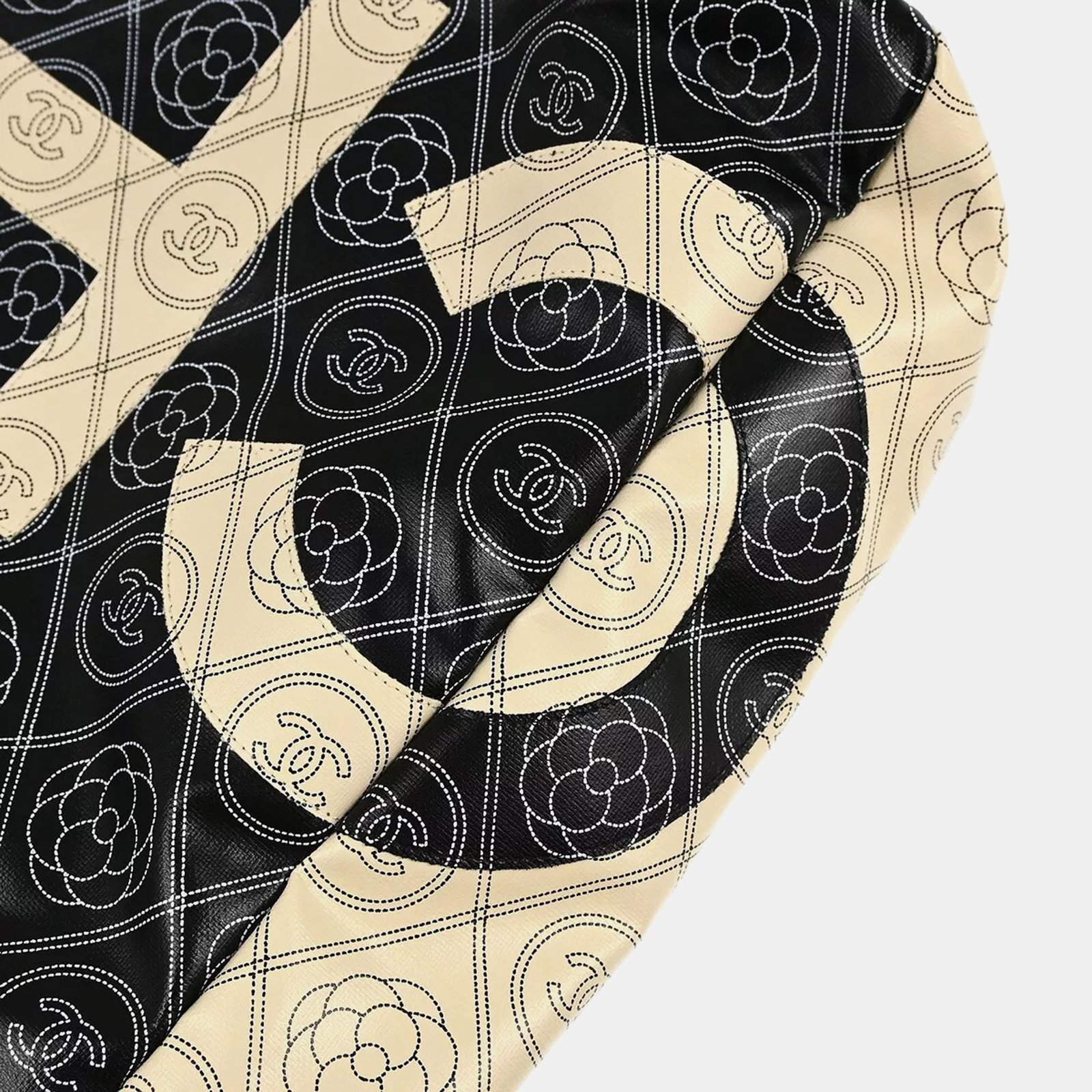 Chanel Black Printed Coated Canvas Logo Camellia Shopping Tote Bag