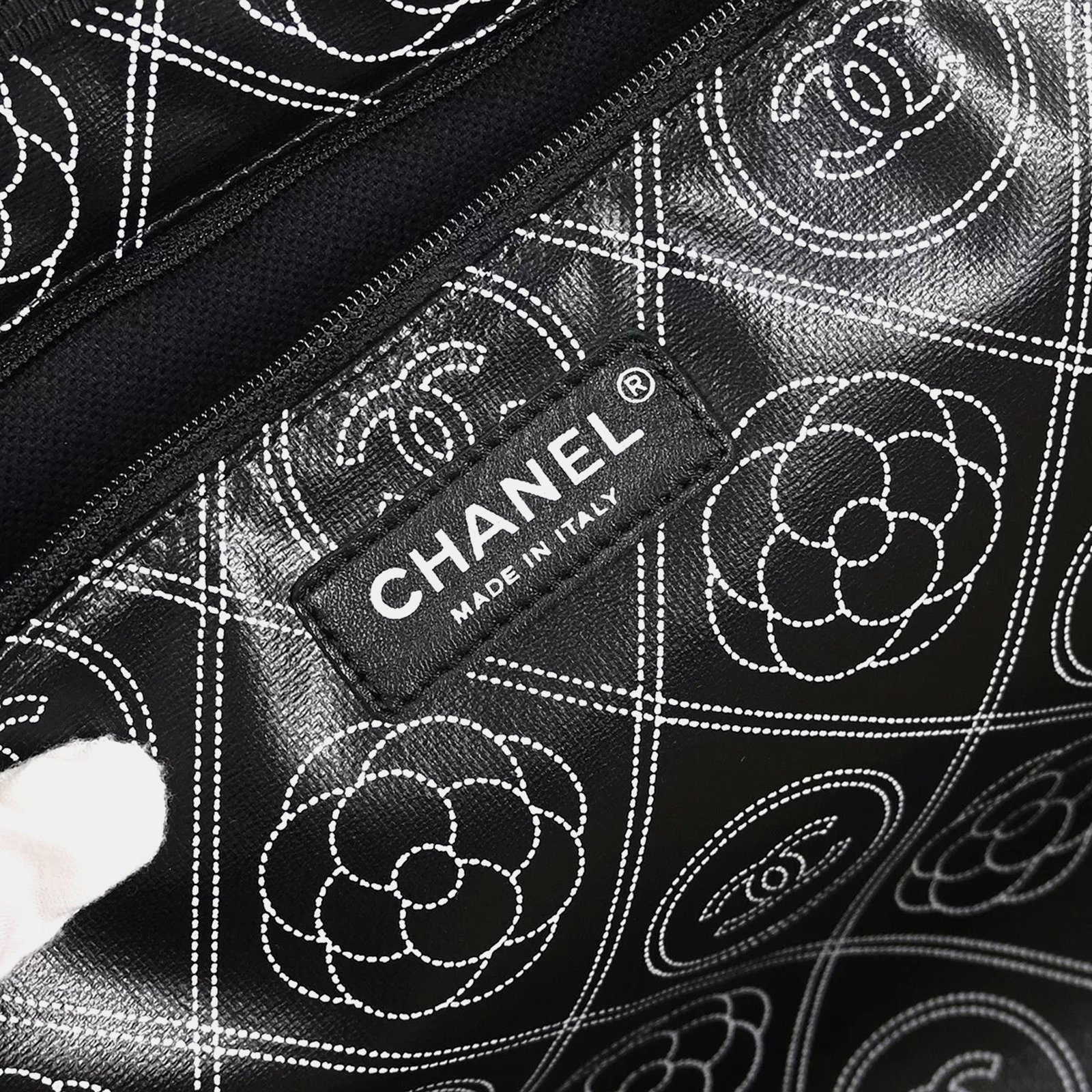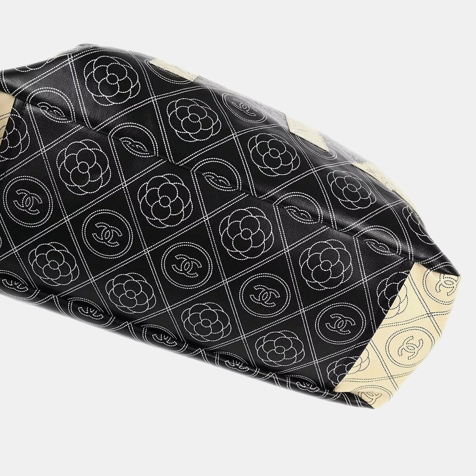 Chanel Black Printed Coated Canvas Logo Camellia Shopping Tote Bag - Image 10