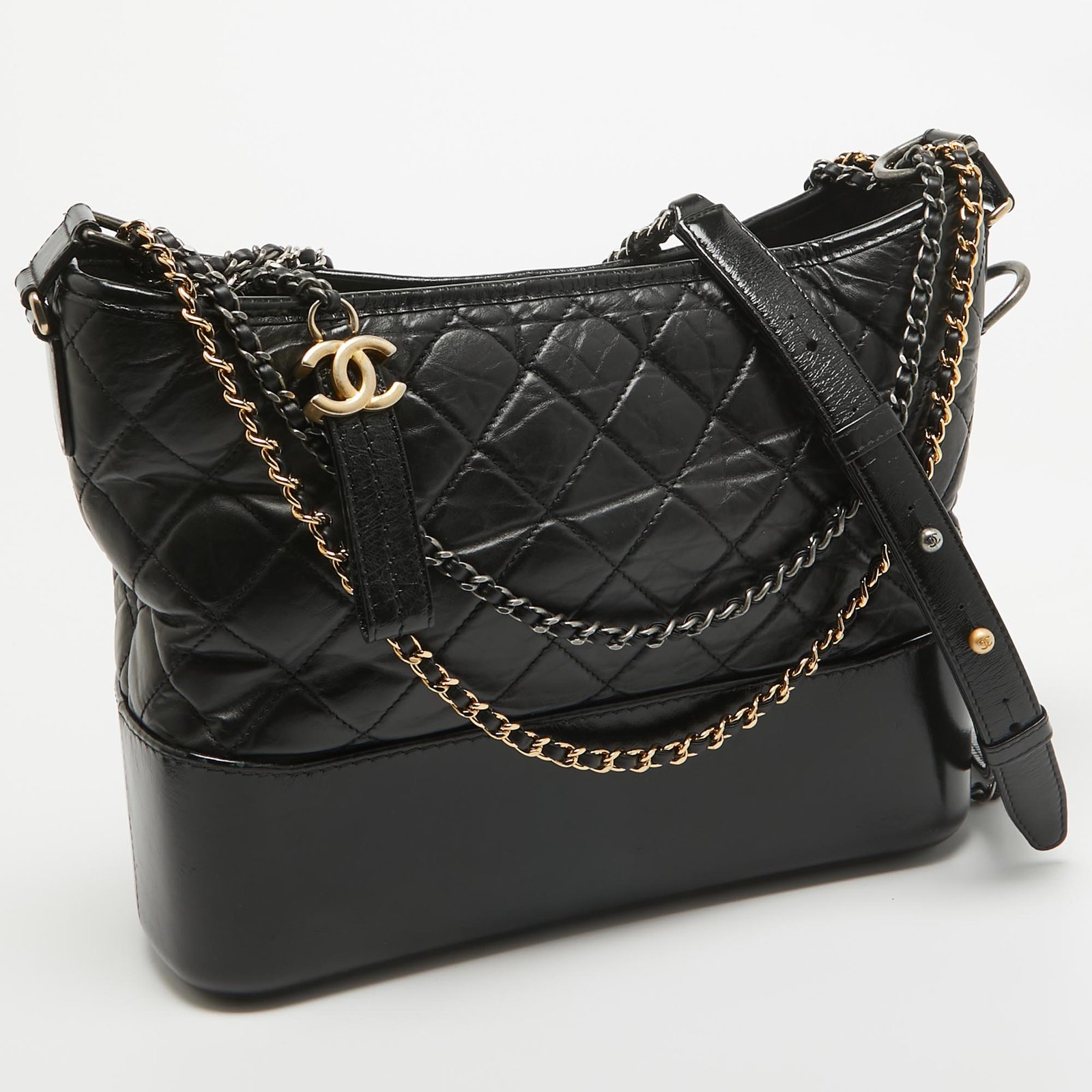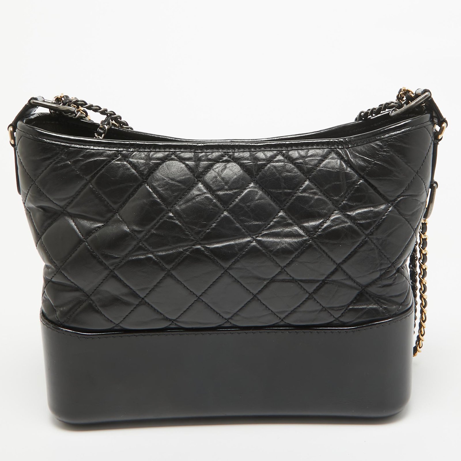 Chanel Black Quilted Aged Leather Medium Gabrielle Hobo