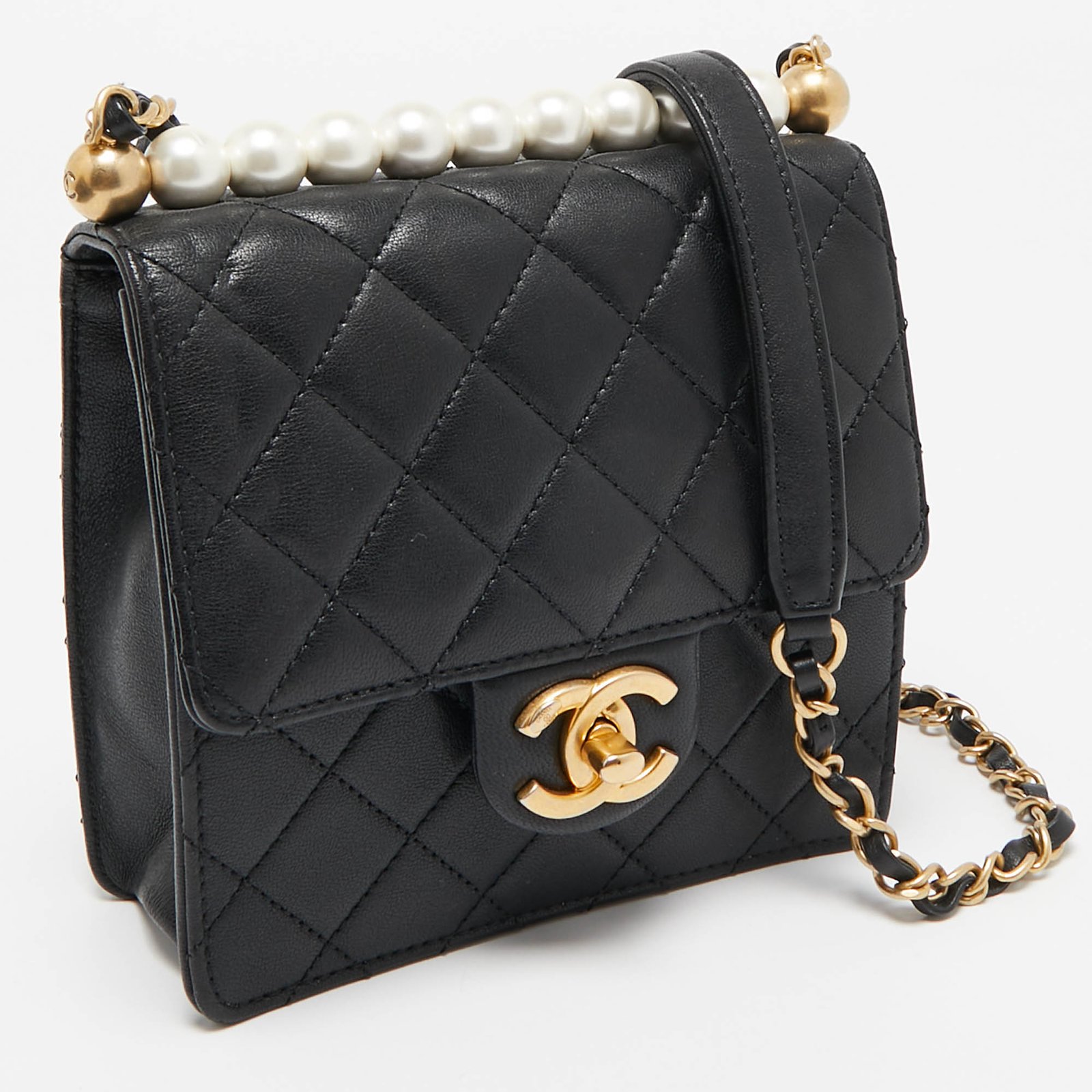 Chanel Black Quilted Leather Chic Pearl Crossbody Bag
