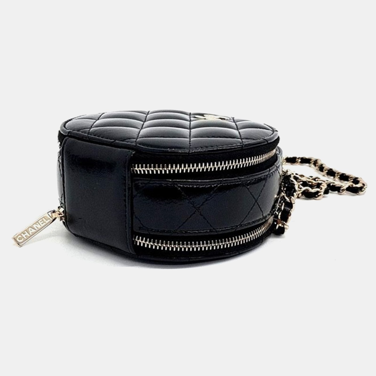 Chanel Black Shiny Leather Round Top Handle Bag
