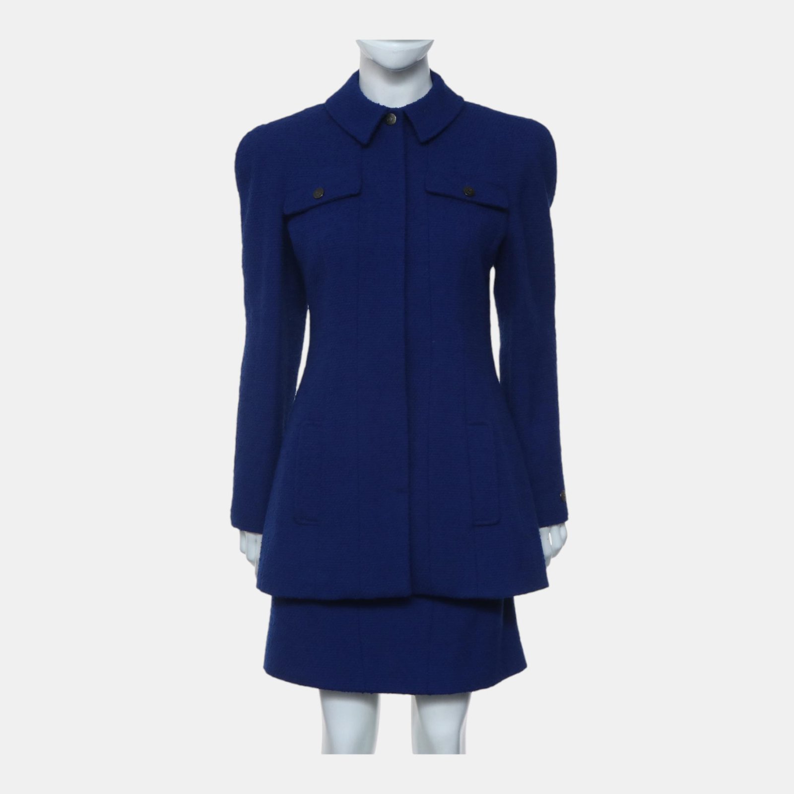 Chanel Blue Tweed Button-Up Jacket And Tweed Skirt Set M