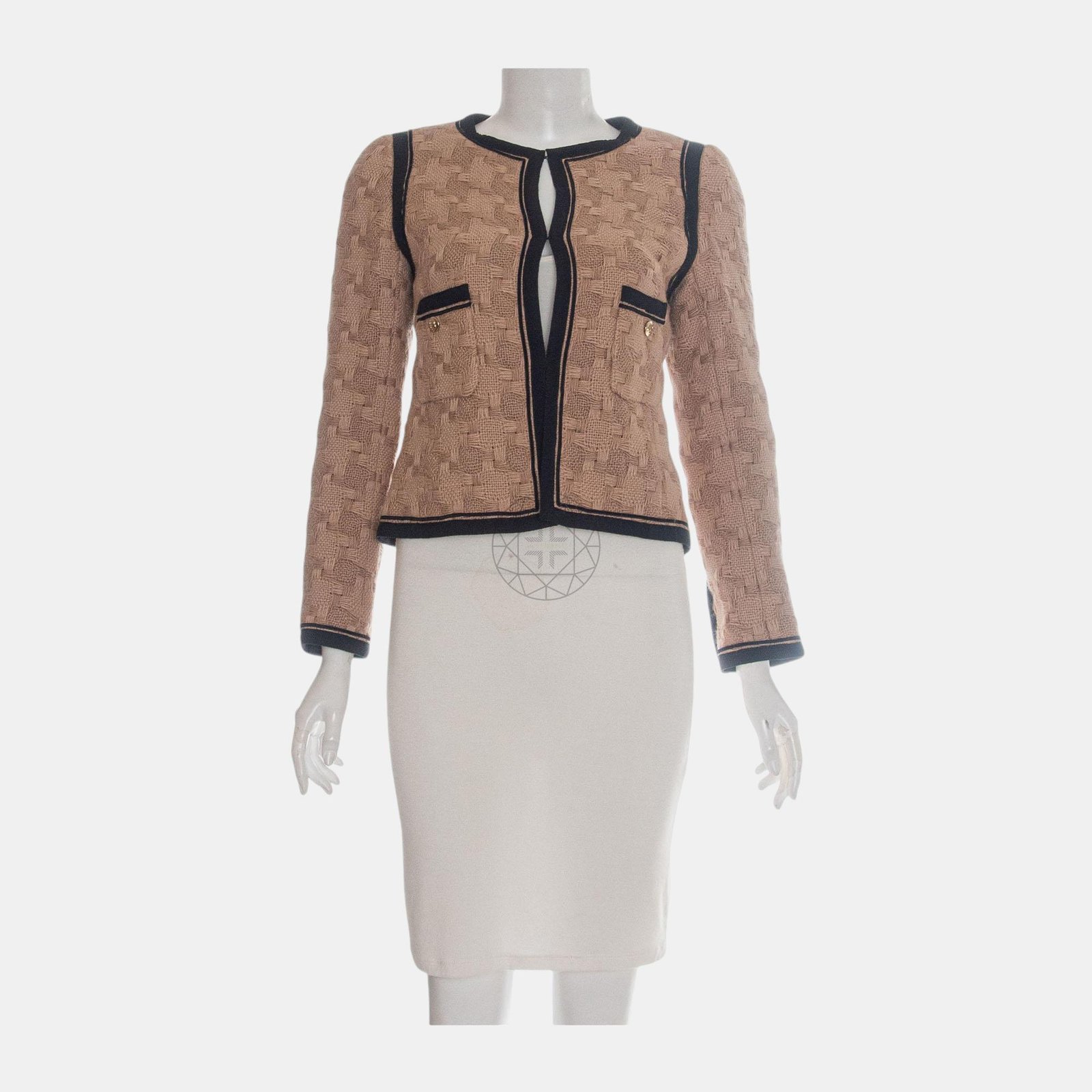 Chanel Brown Woven Wool Round Neck Jacket S - Image 1