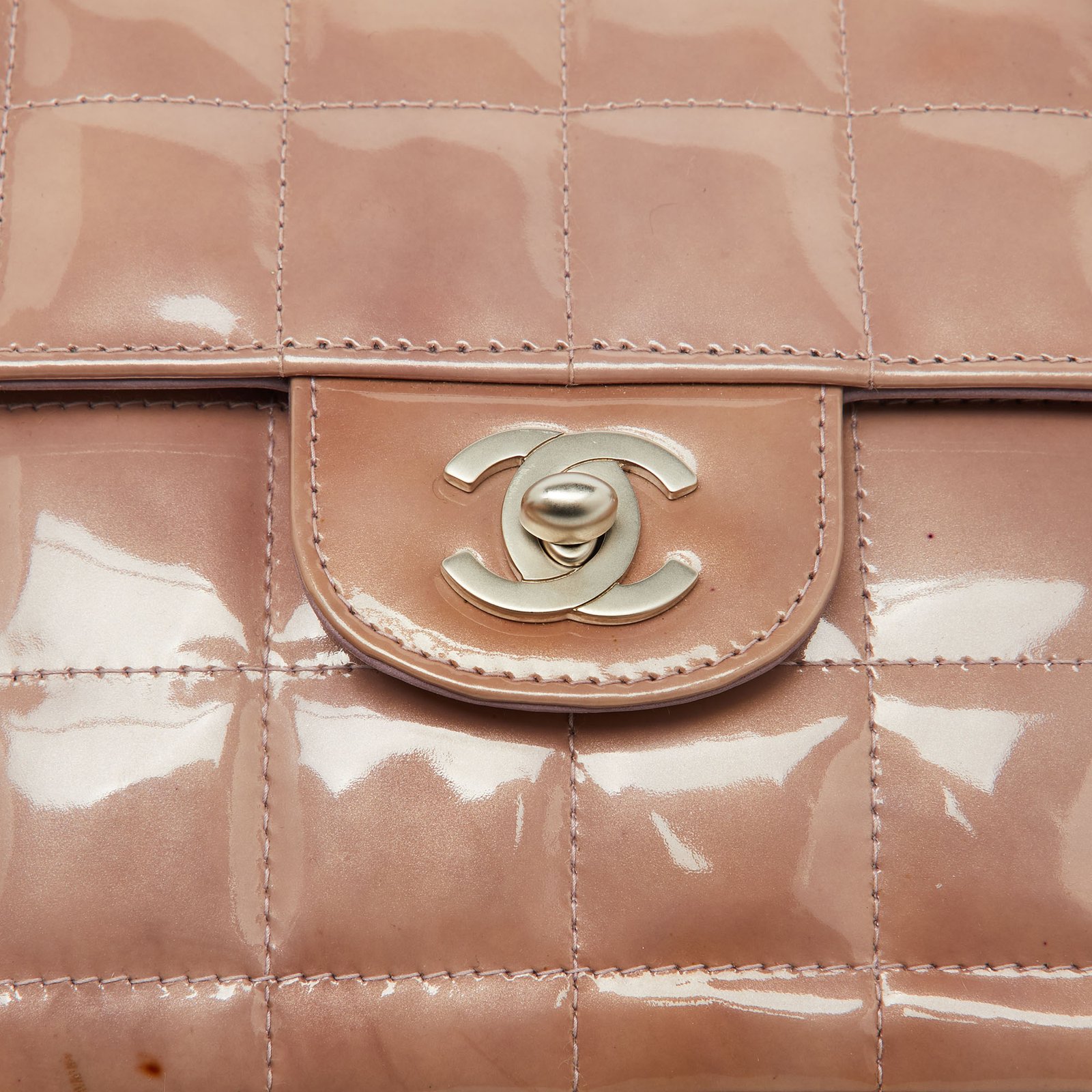 Chanel Dusty Pink Quilted Patent Leather Chocolate Bar CC East West Flap Bag - Image 10