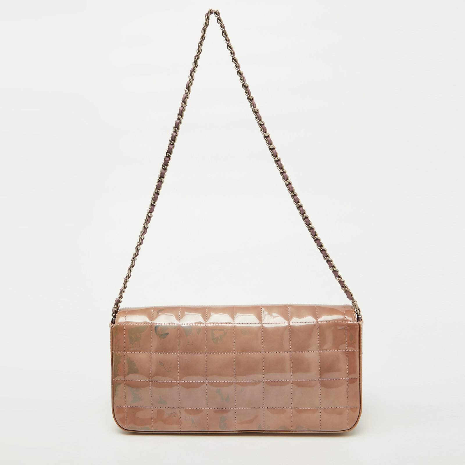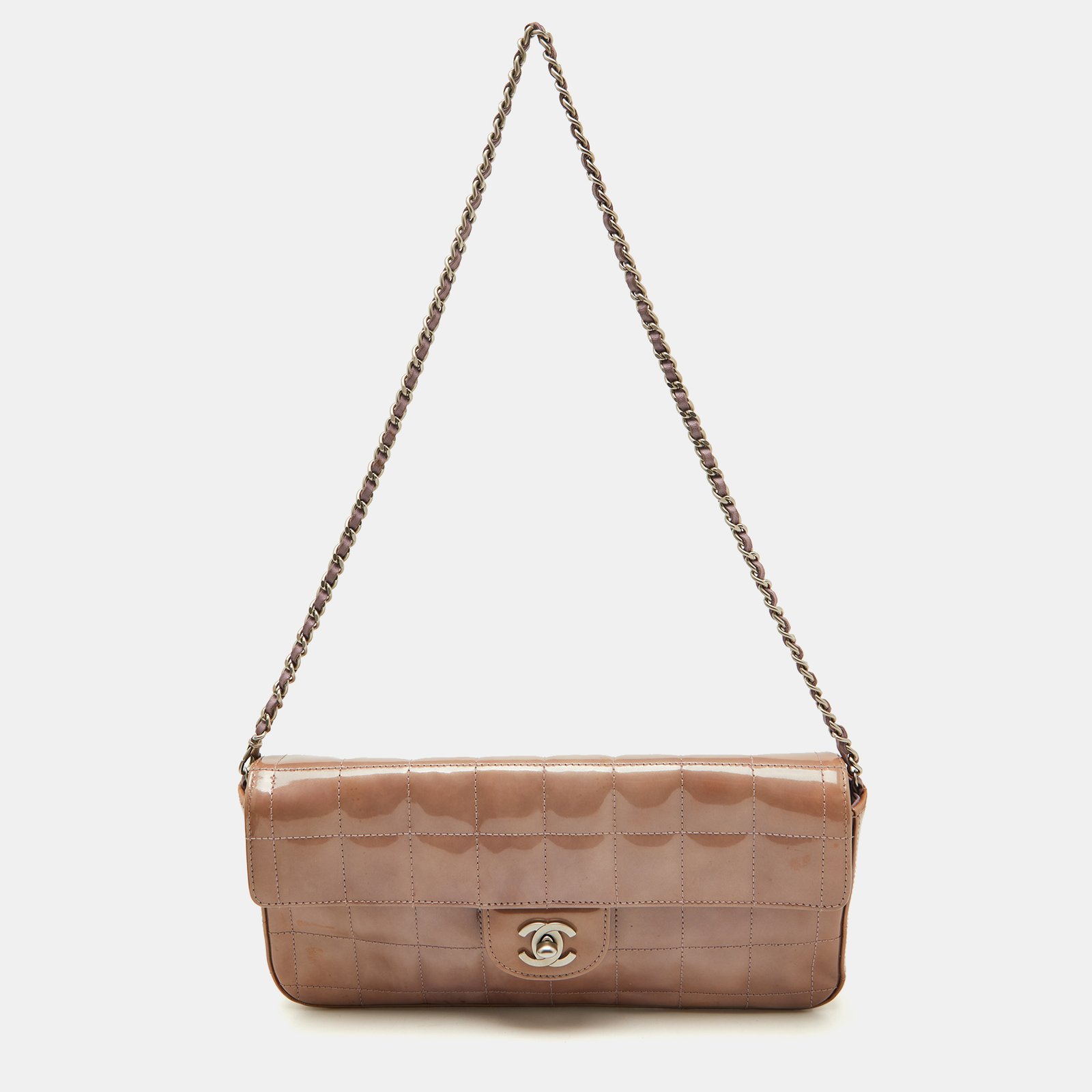 Chanel Dusty Pink Quilted Patent Leather Chocolate Bar CC East West Flap Bag
