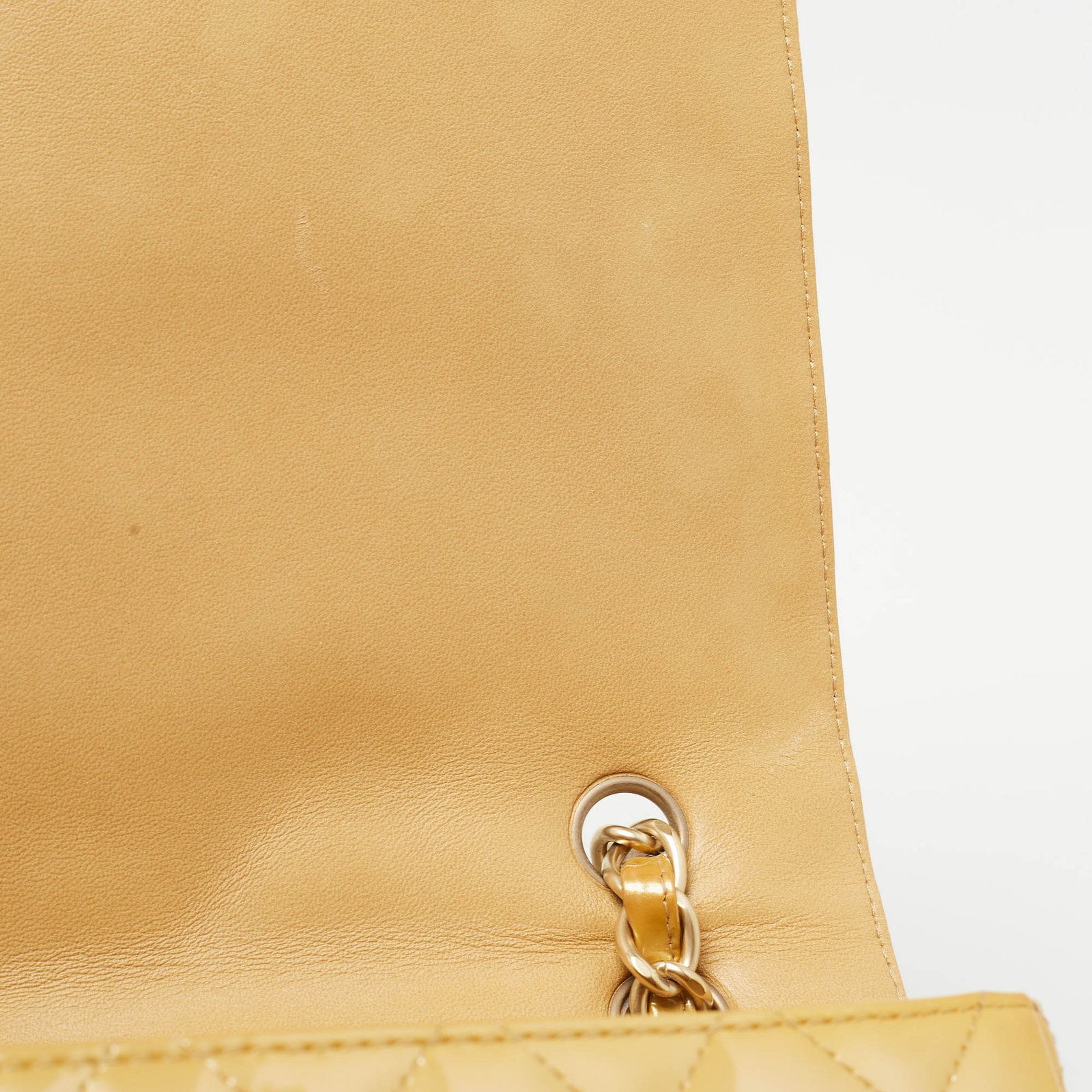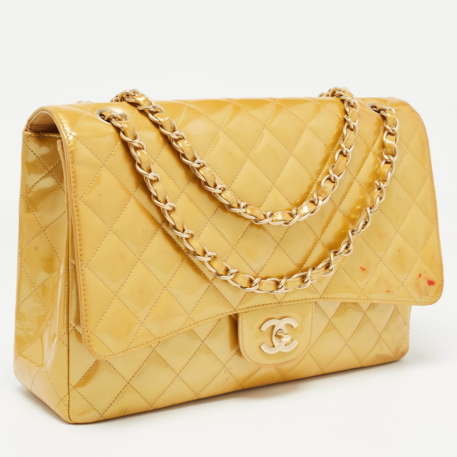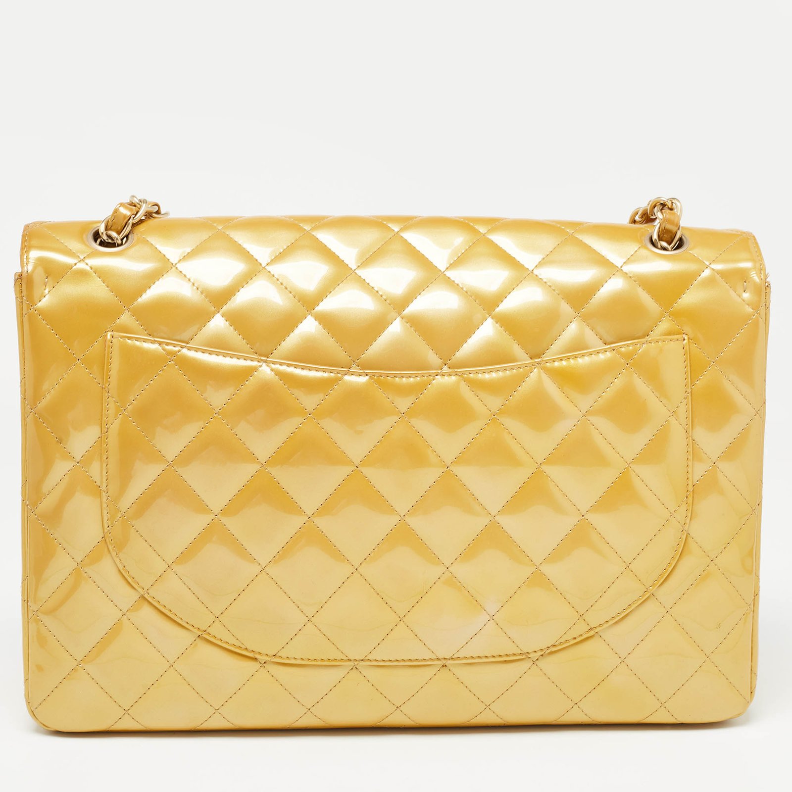 Chanel Gold Quilted Patent Leather Maxi Classic Single Flap Bag