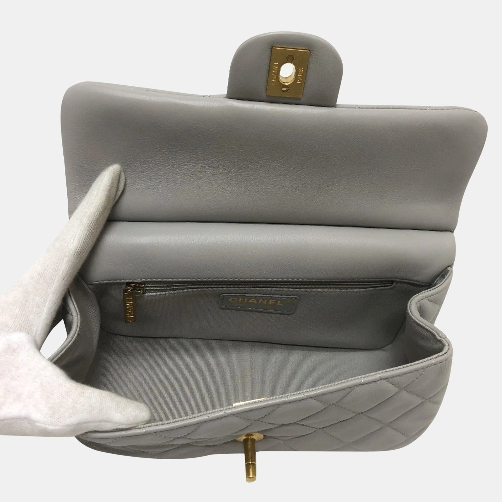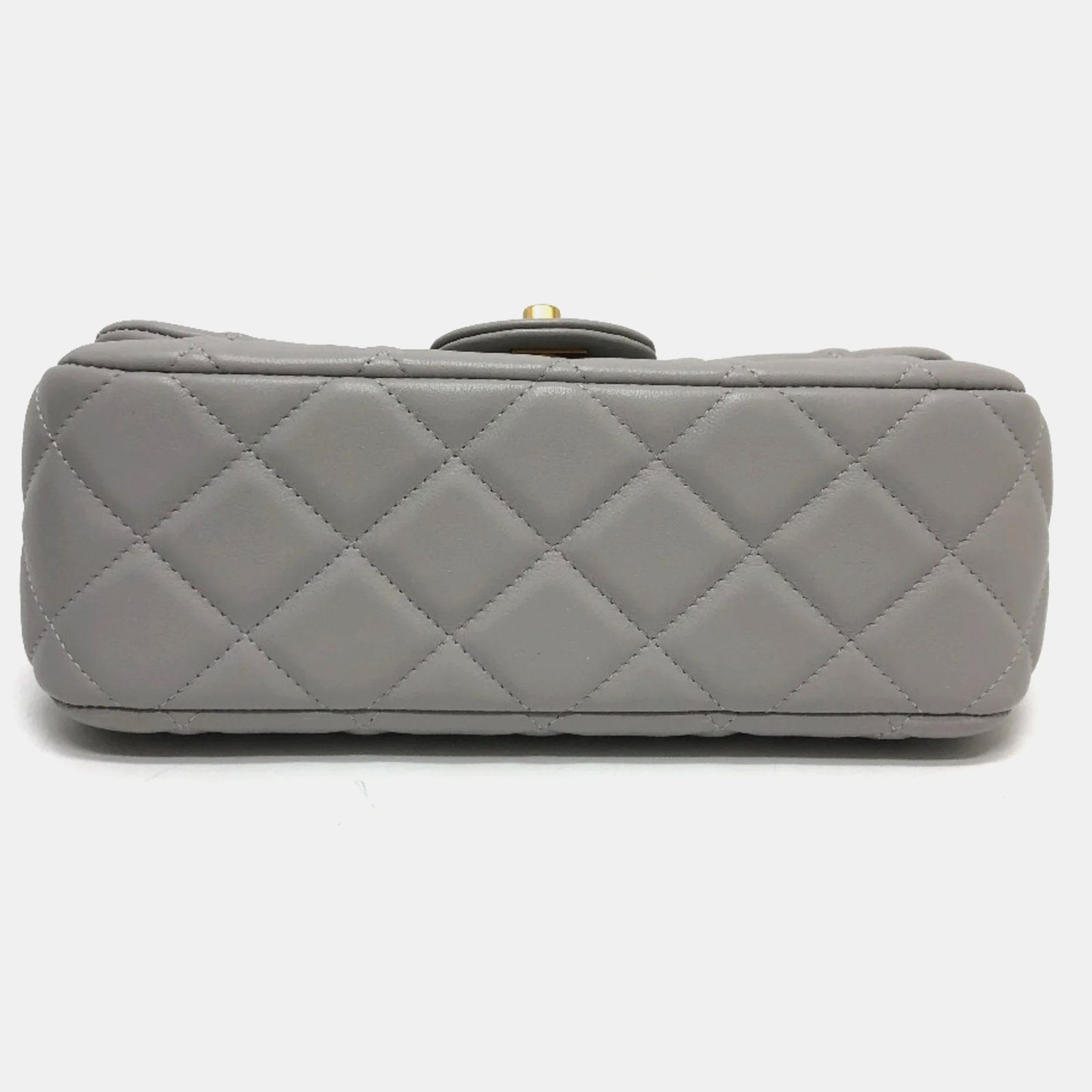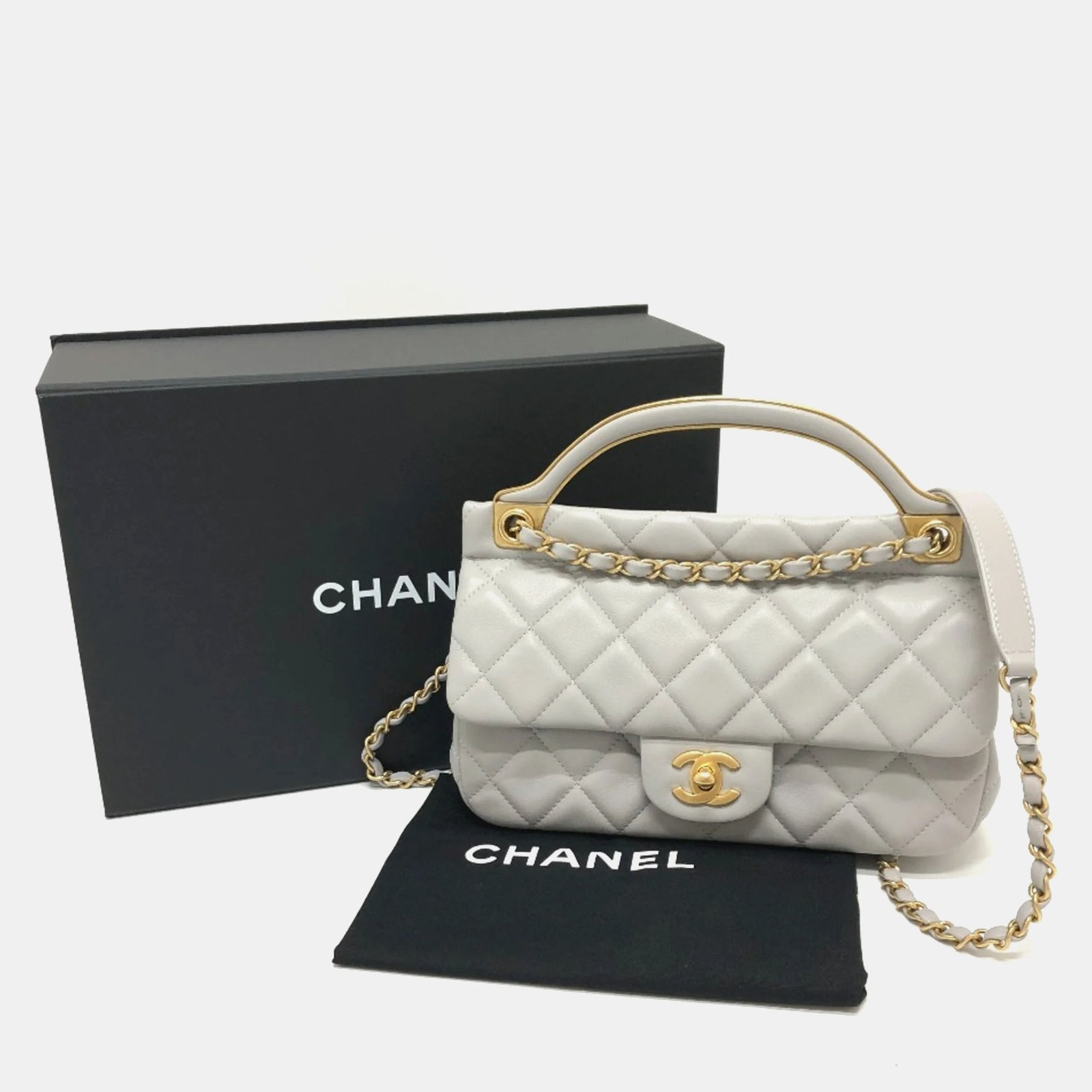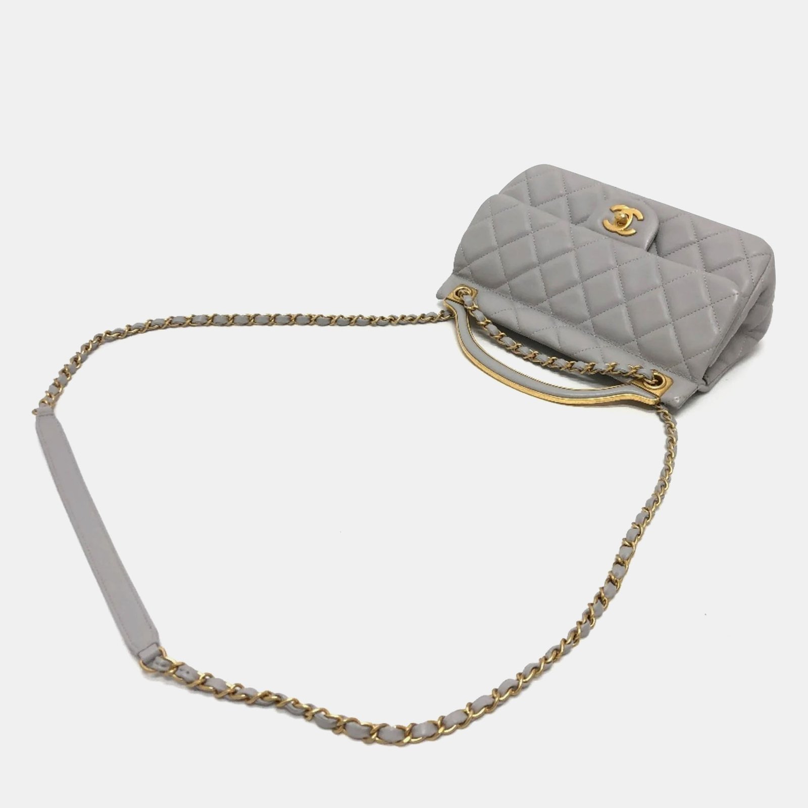 Chanel Grey Calfskin Quilted Small Lady Handle Clutch With Chain