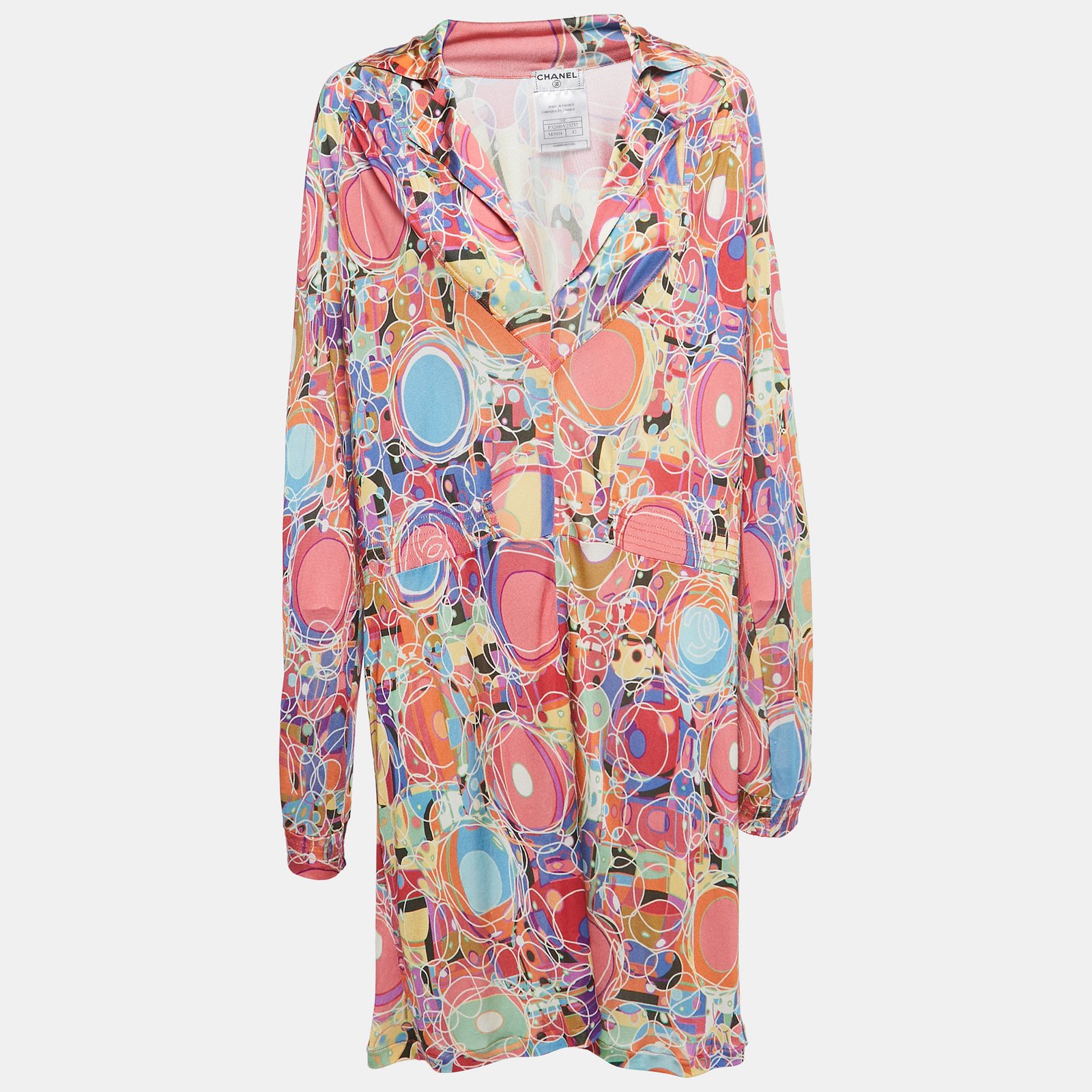 Chanel Multicolor Printed Jersey Full Sleeve Mini Dress L