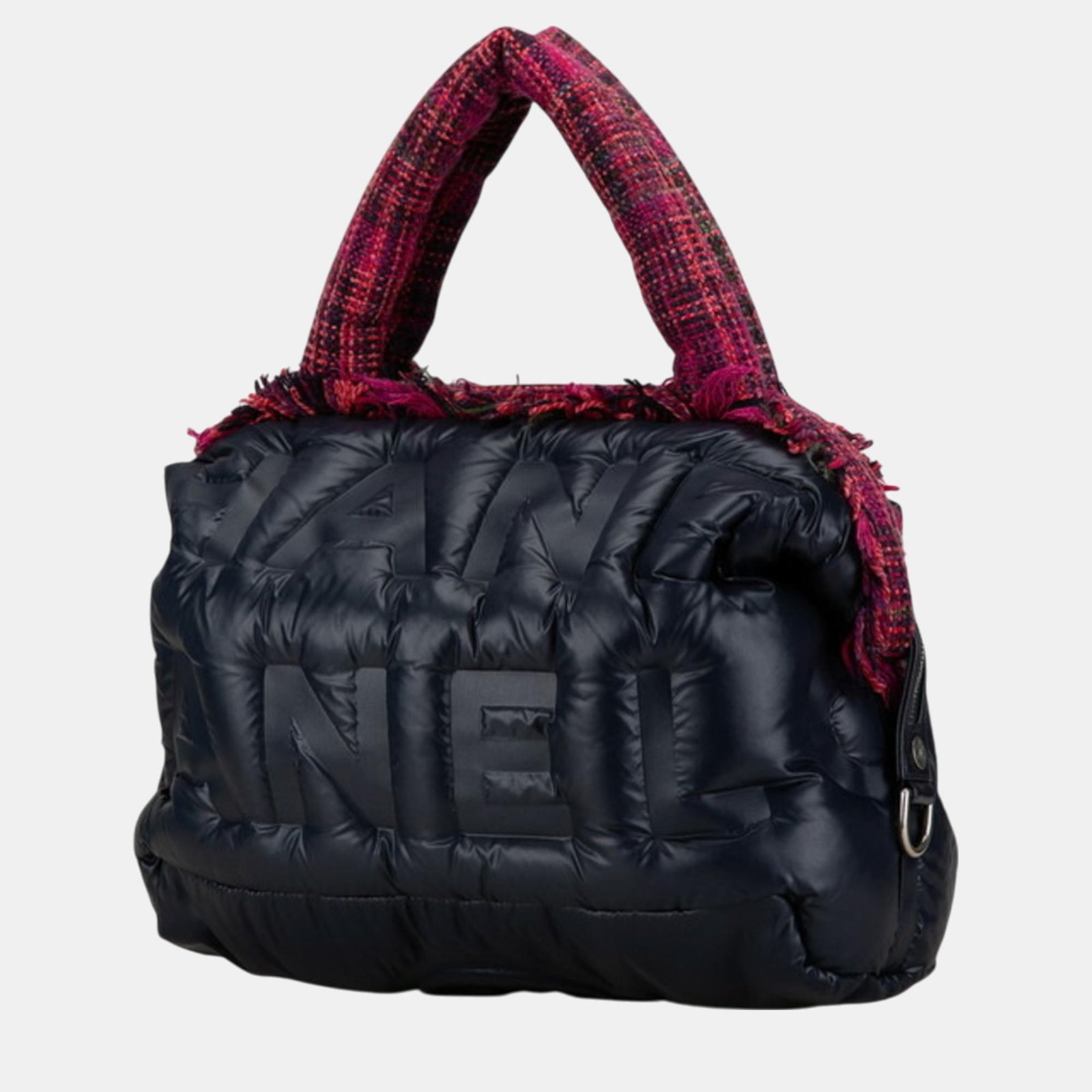 Chanel Navy Pink Nylon Wool Doudone Coconneige Embossed Handbag
