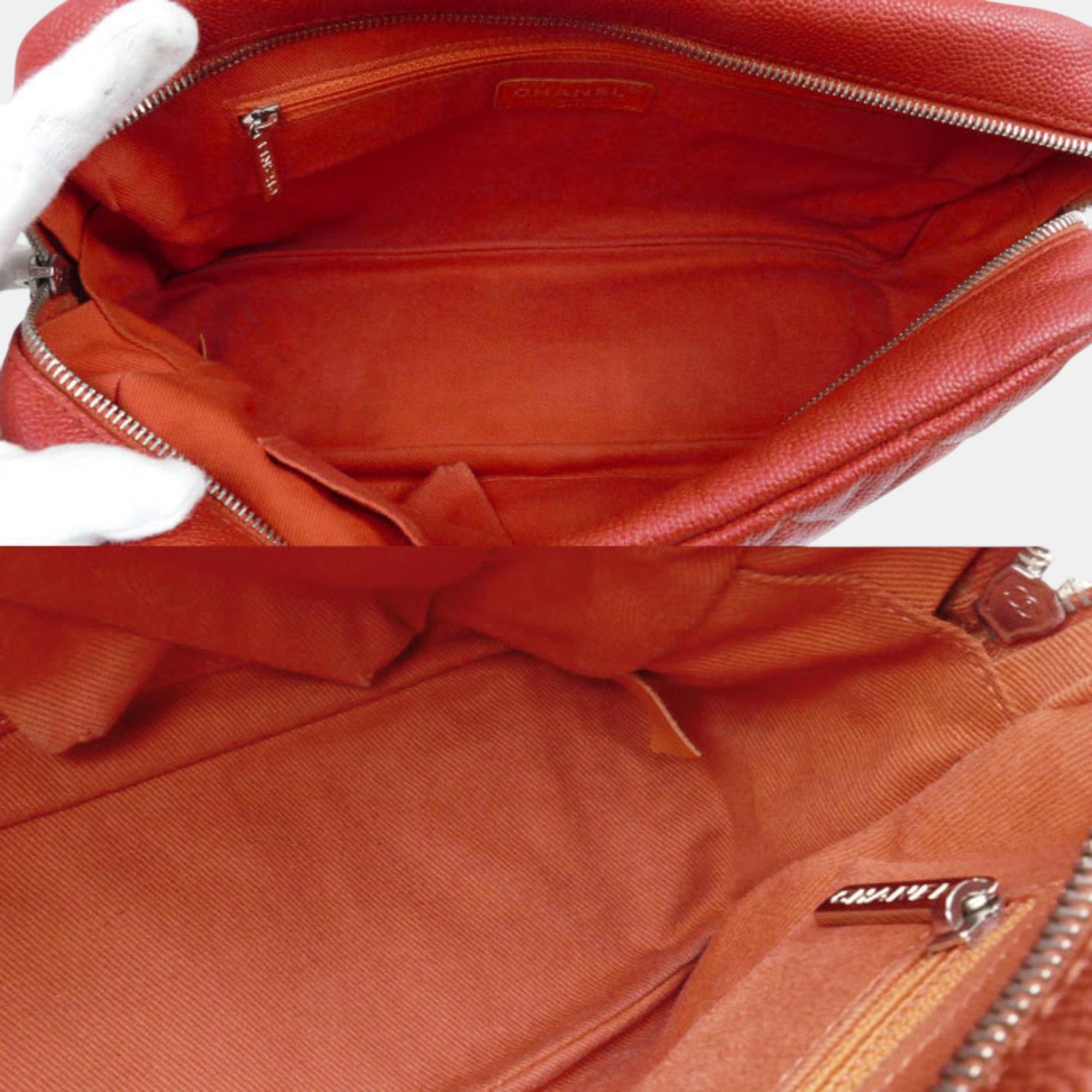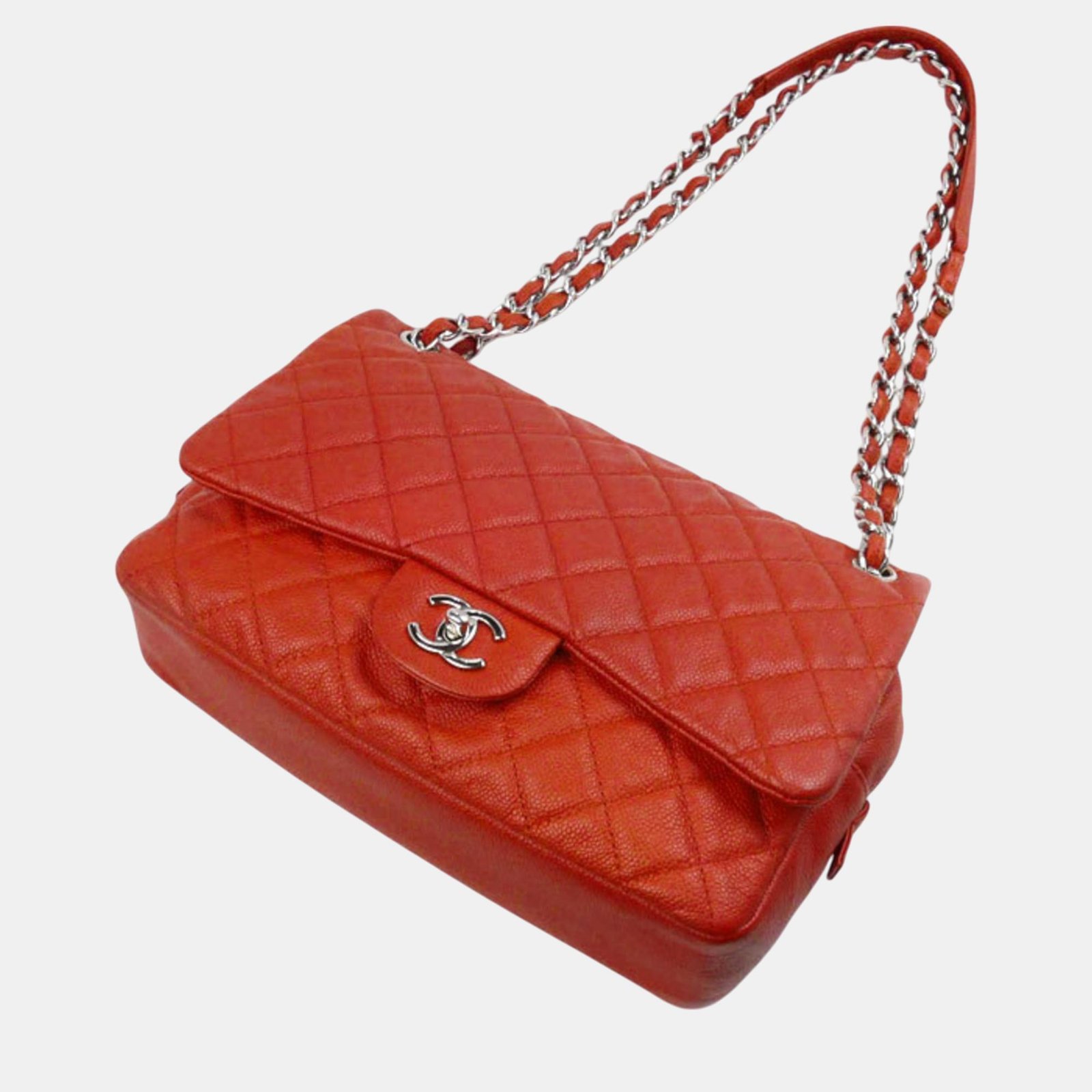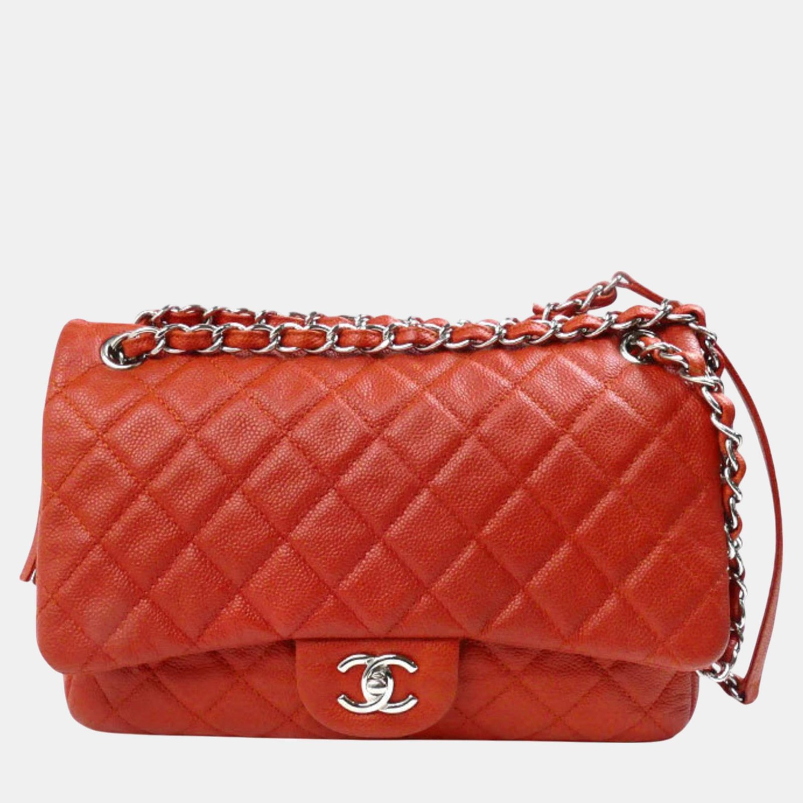 Chanel Orange Caviar Leather Large Flap Shoulder Bag