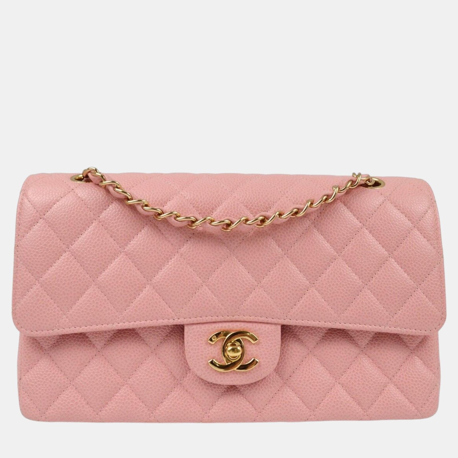 Chanel Pink Calfskin Medium Classic Double Flap Shoulder Bag