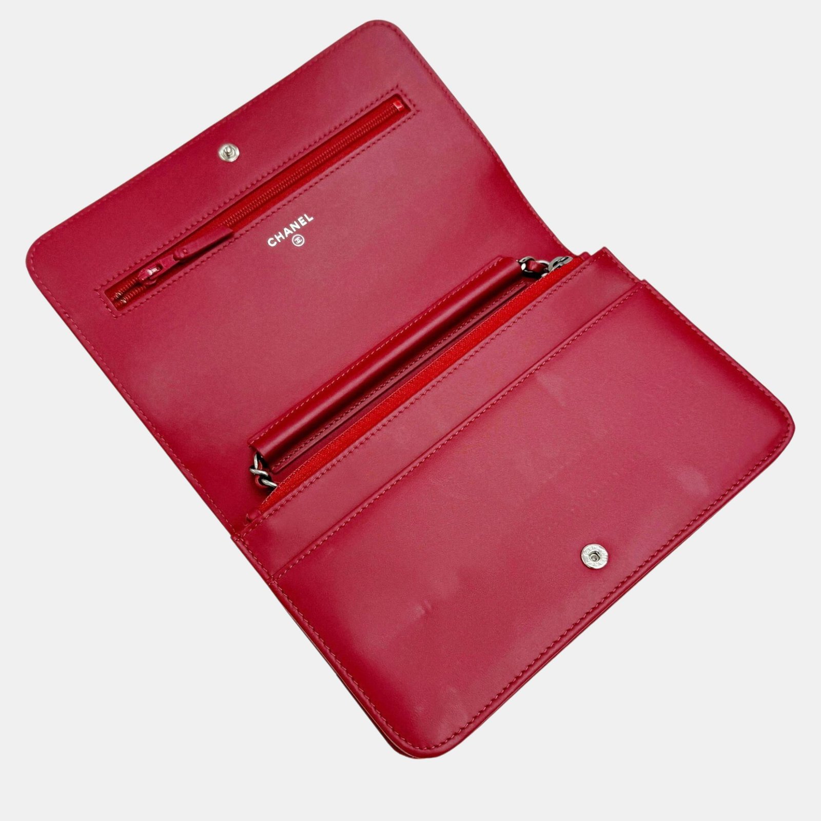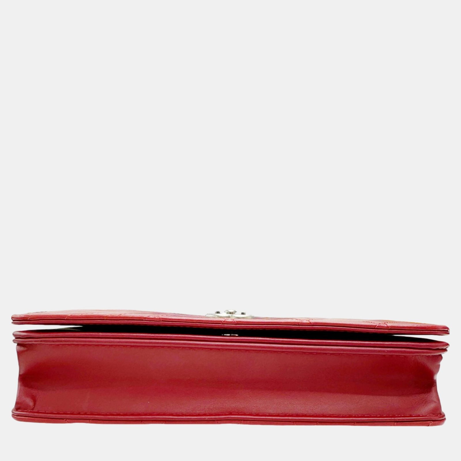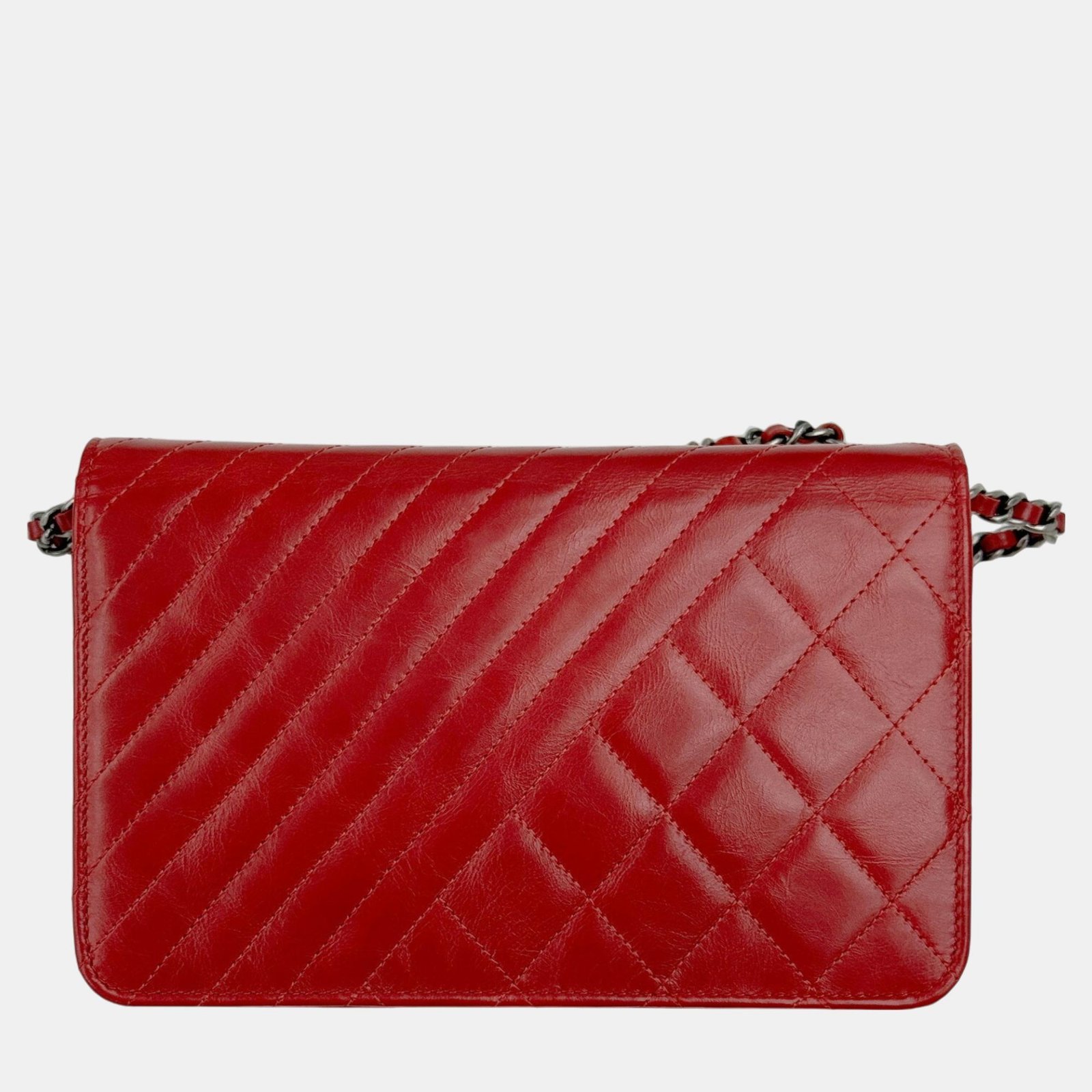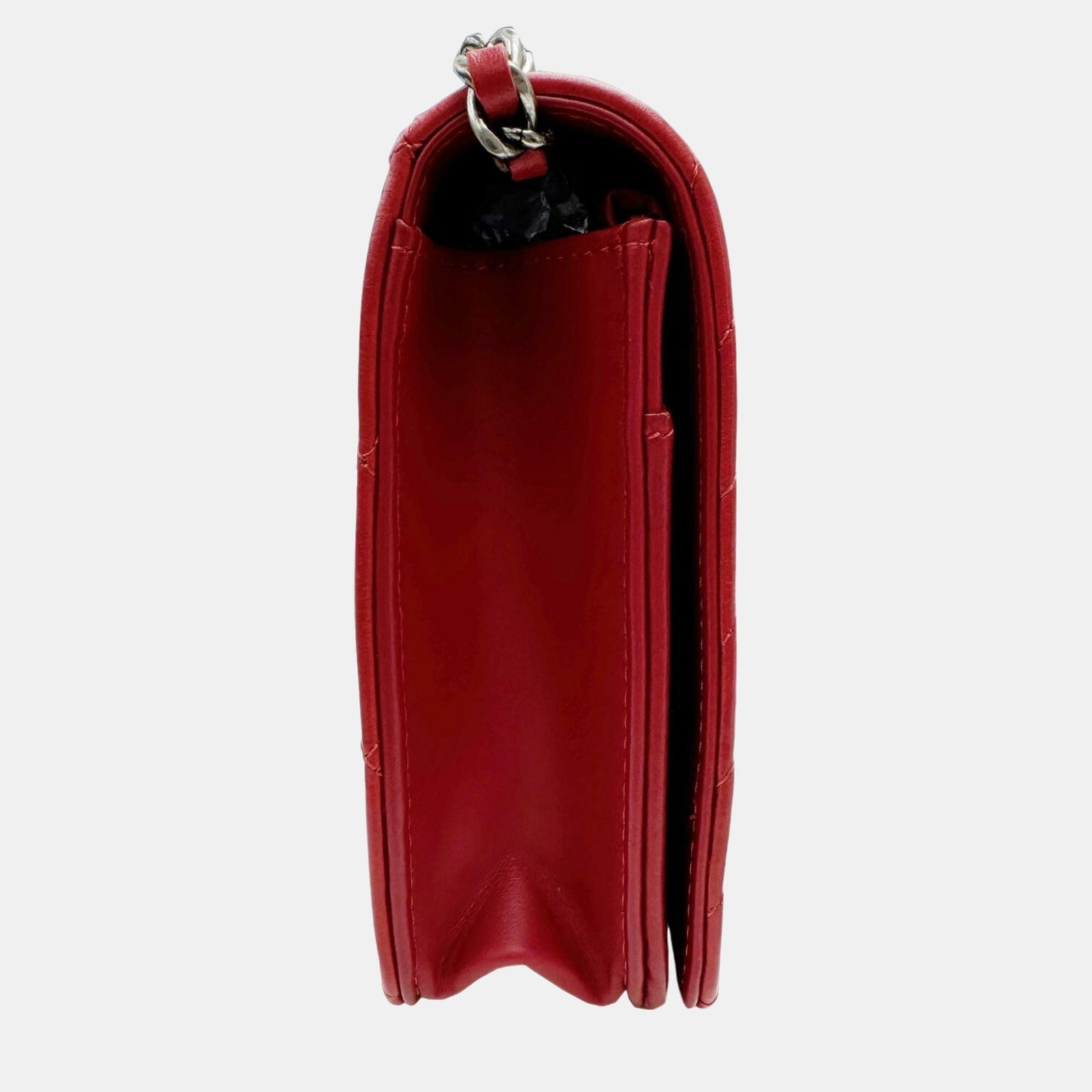 Chanel Red Calf Leather Matelasse Boy Chain Wallet