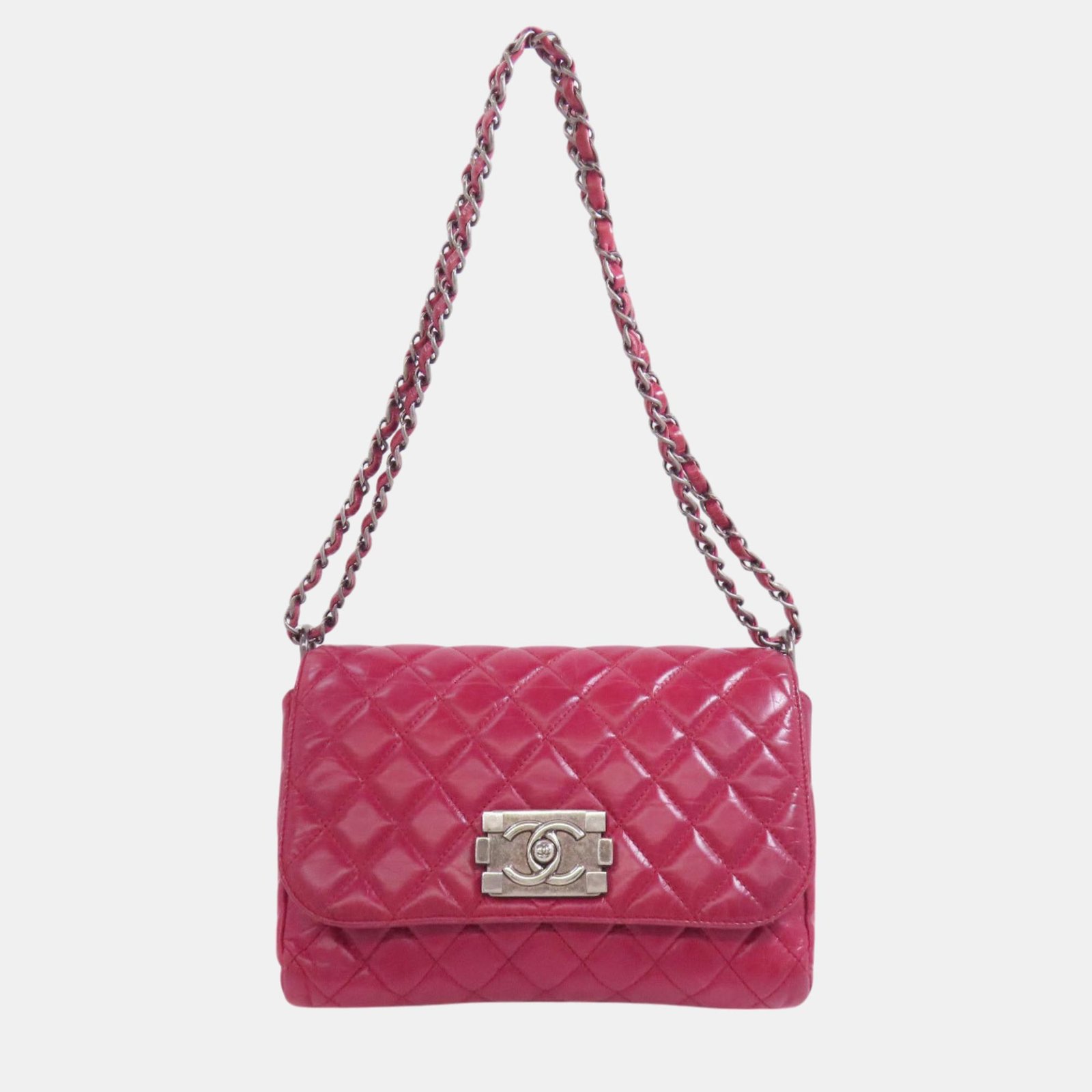 Chanel Red Calfskin Leather Boy Chain Shoulder Bag