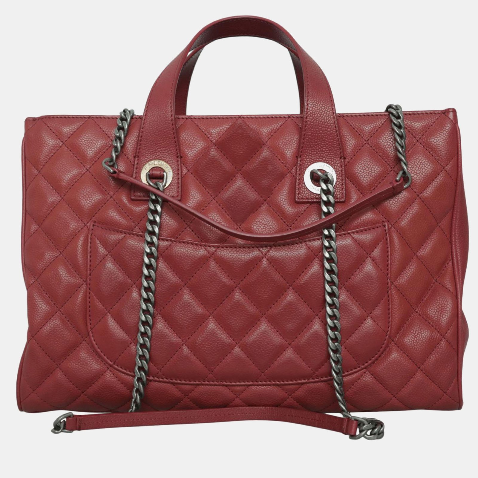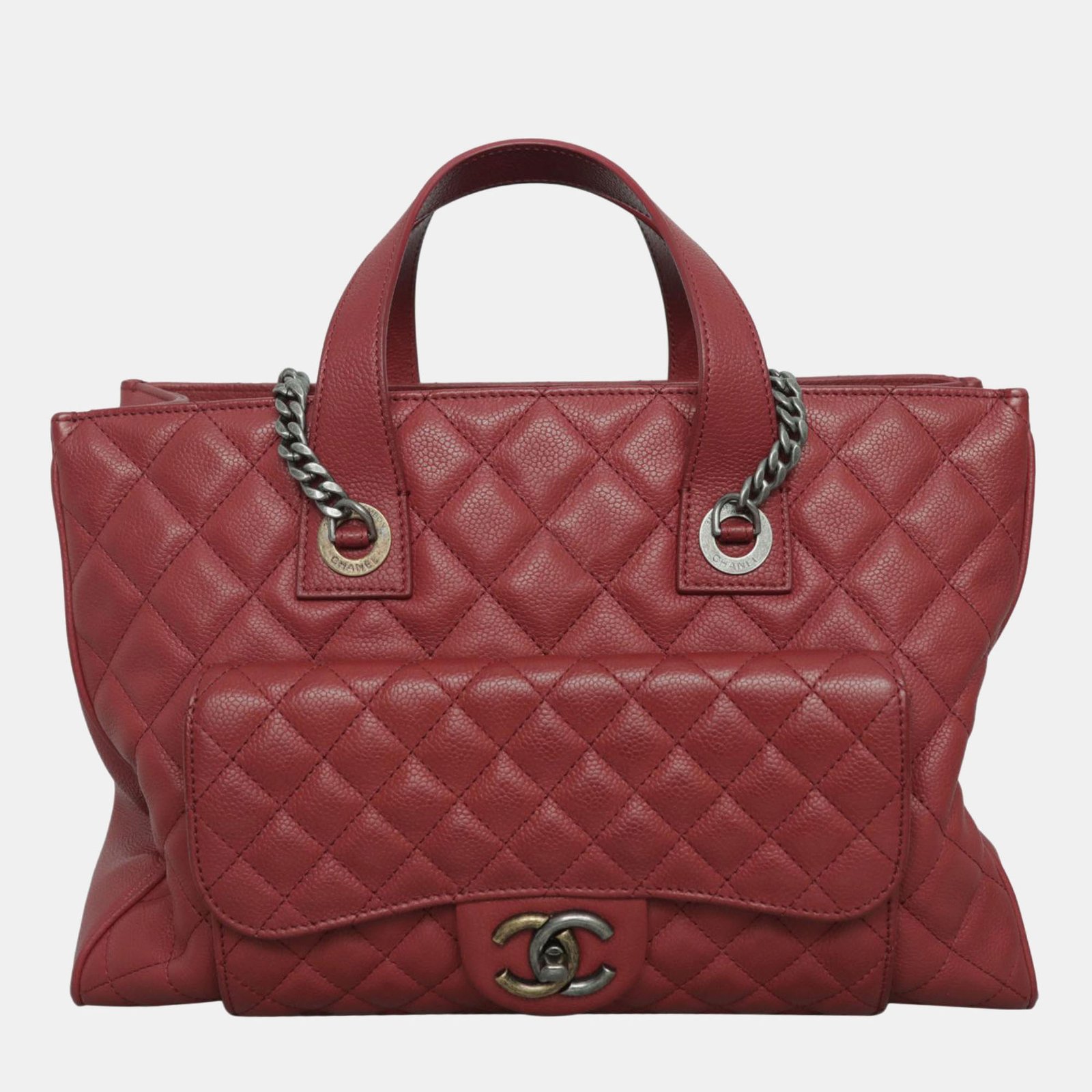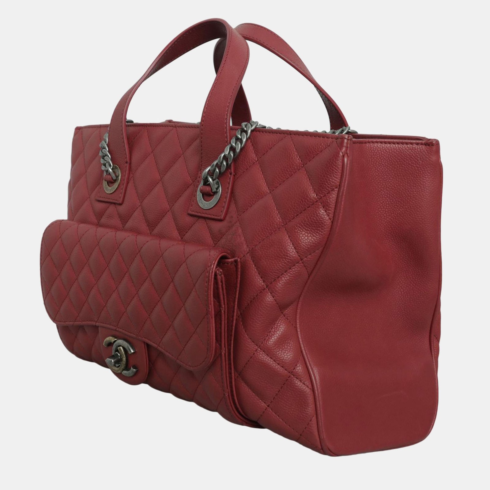 Chanel Red Caviar Leather Casual Pocket Tote Bag