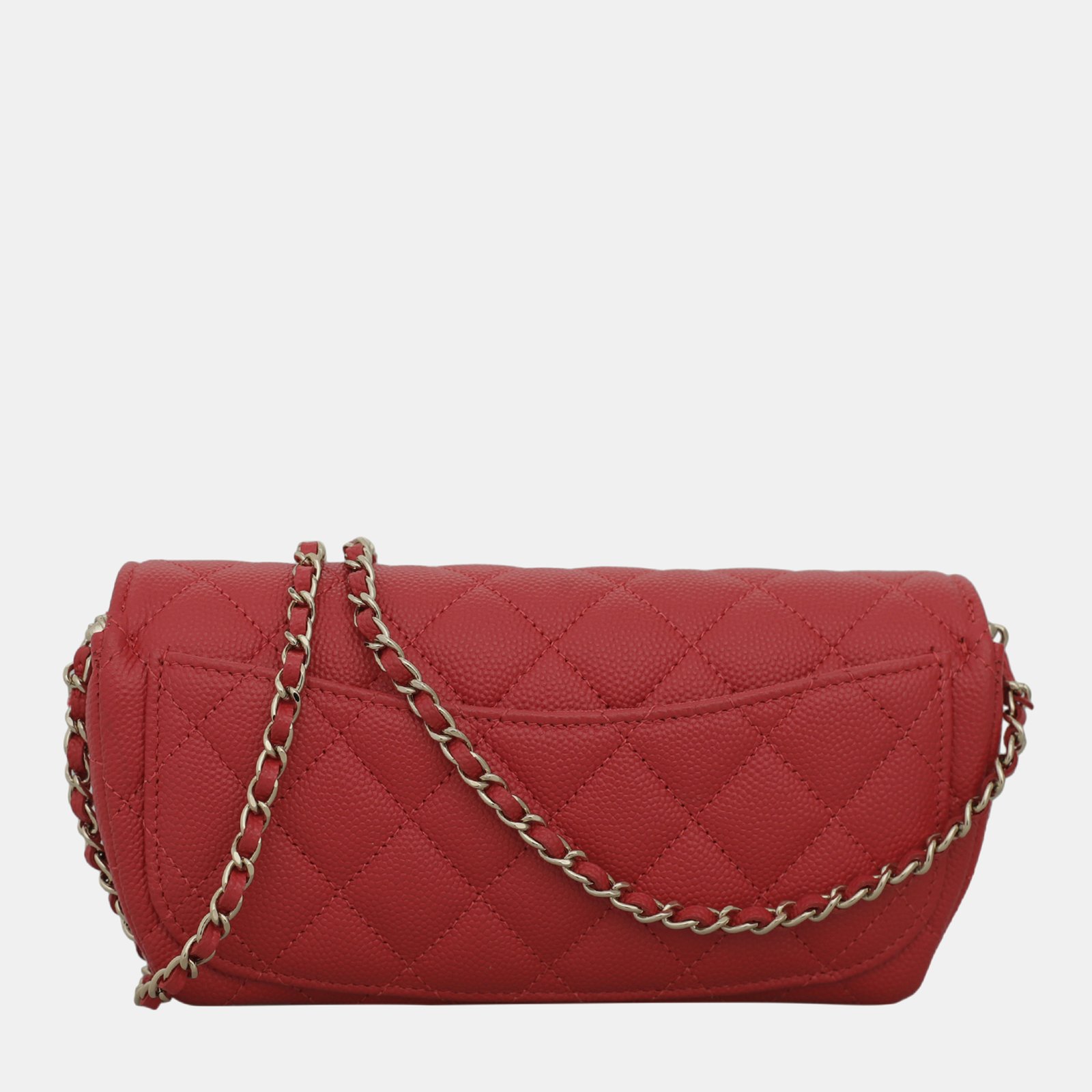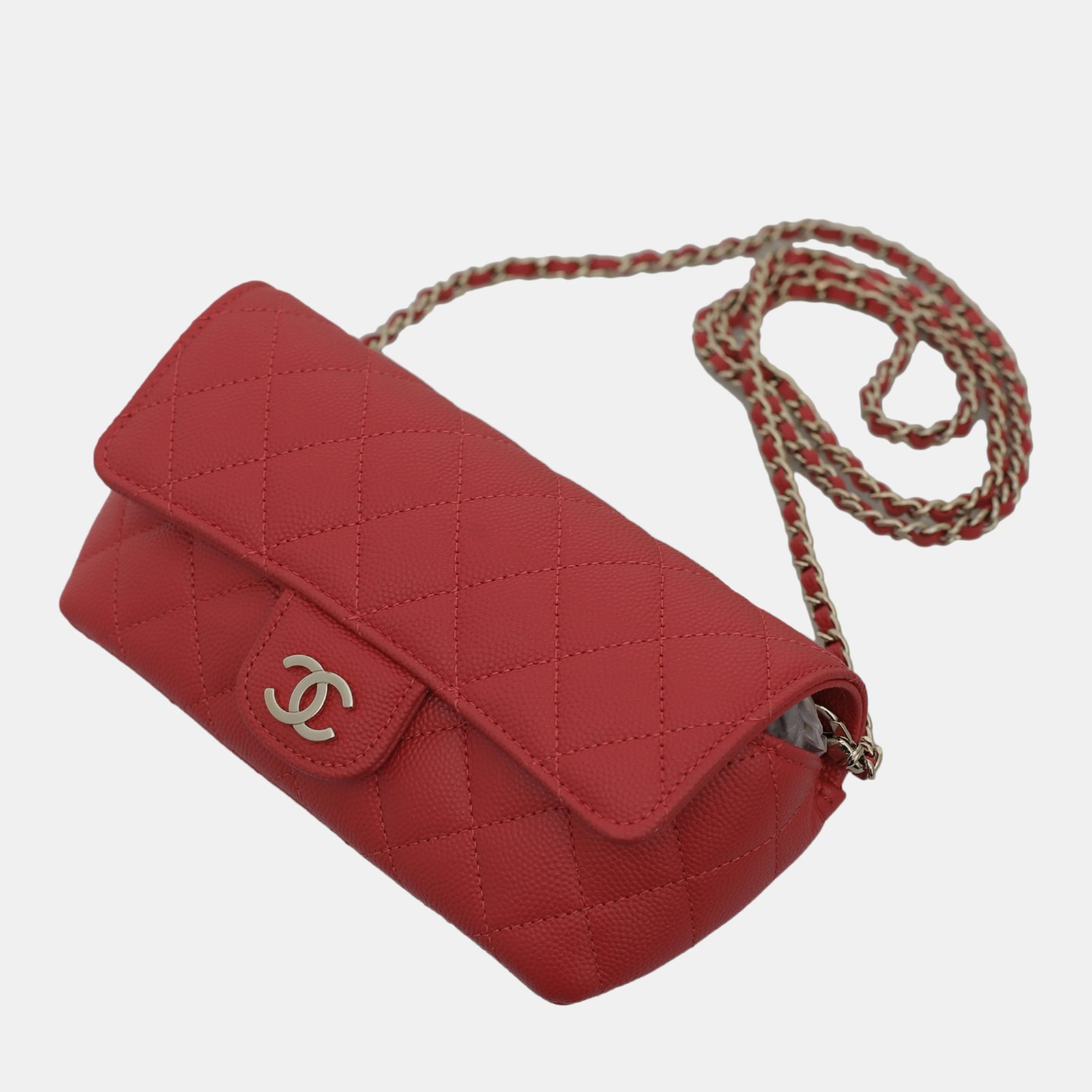 Chanel Red Caviar Leather CC Glasses Case with Chain Shoulder Bag