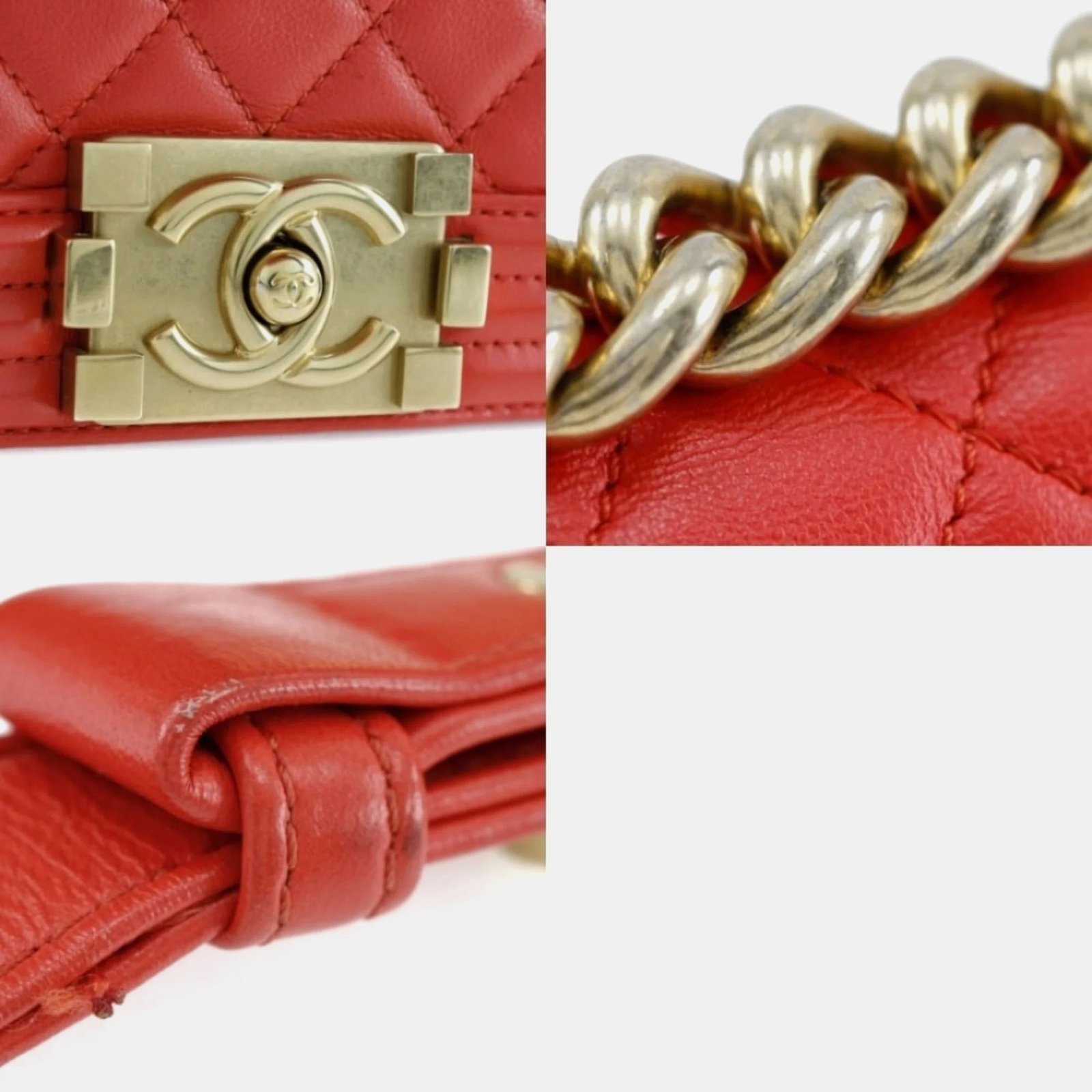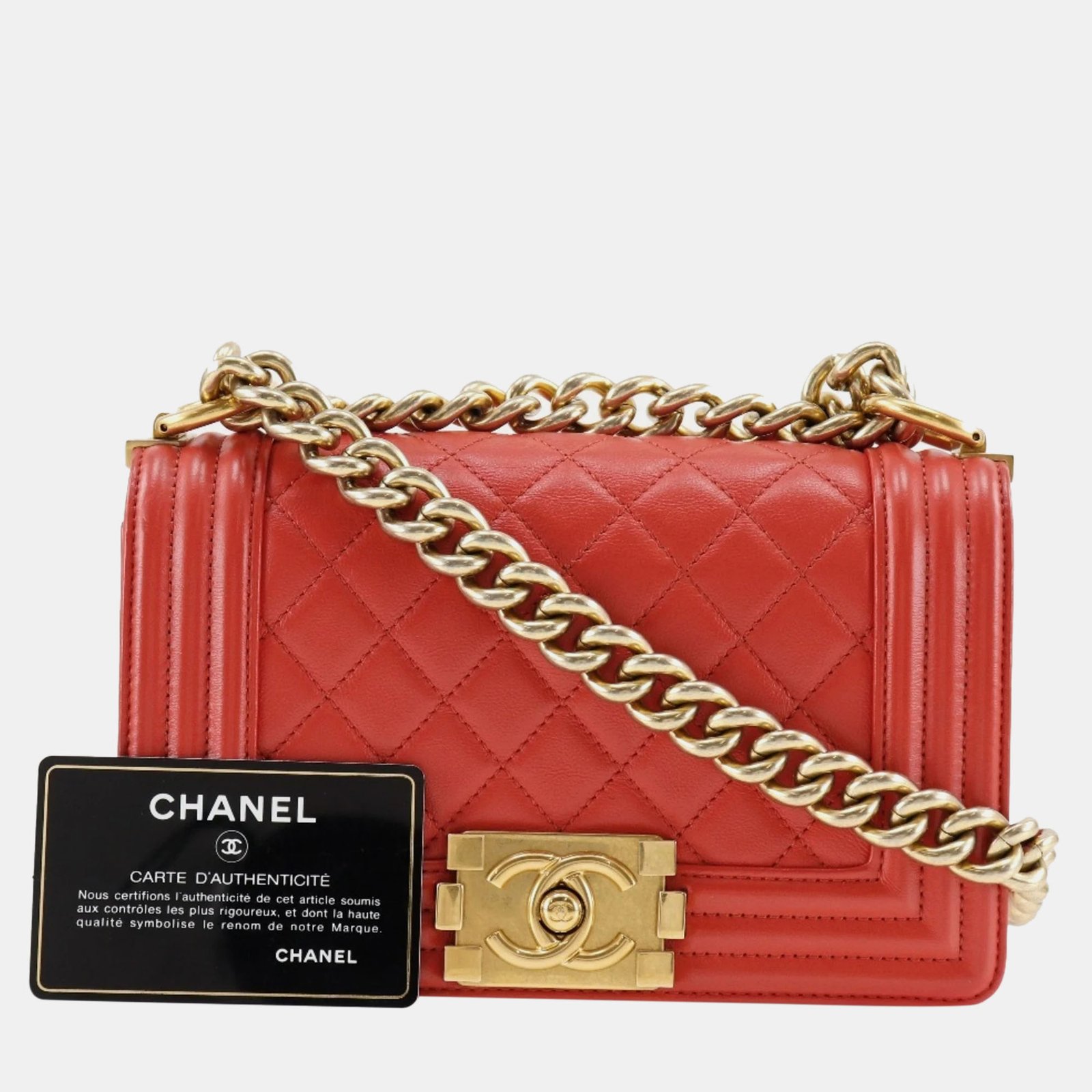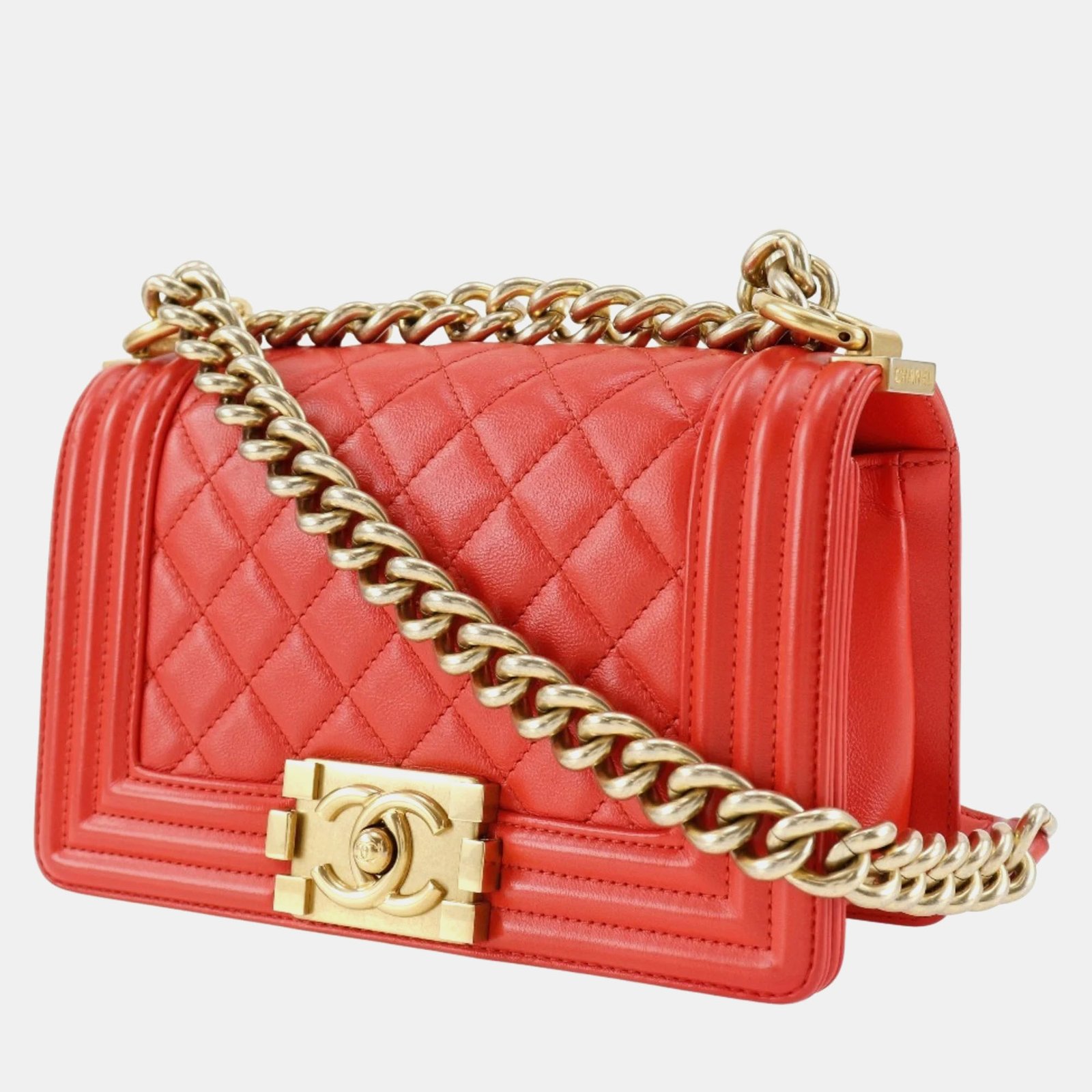 Chanel Red Leather Small Boy Shoulder Bag