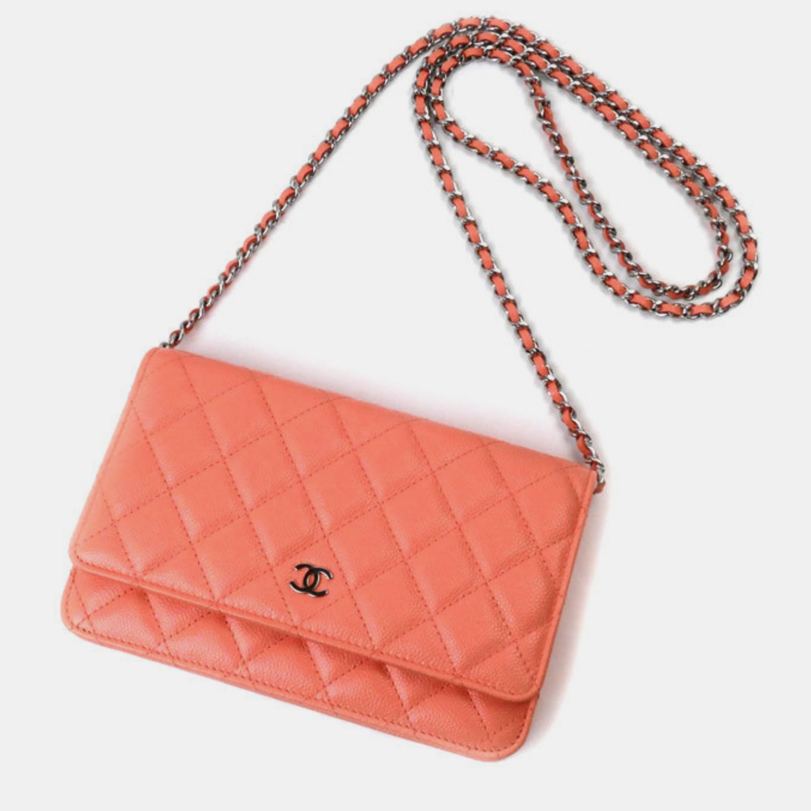 Chanel Salmon Pink Timeless Classic Chain Wallet Shoulder Bag