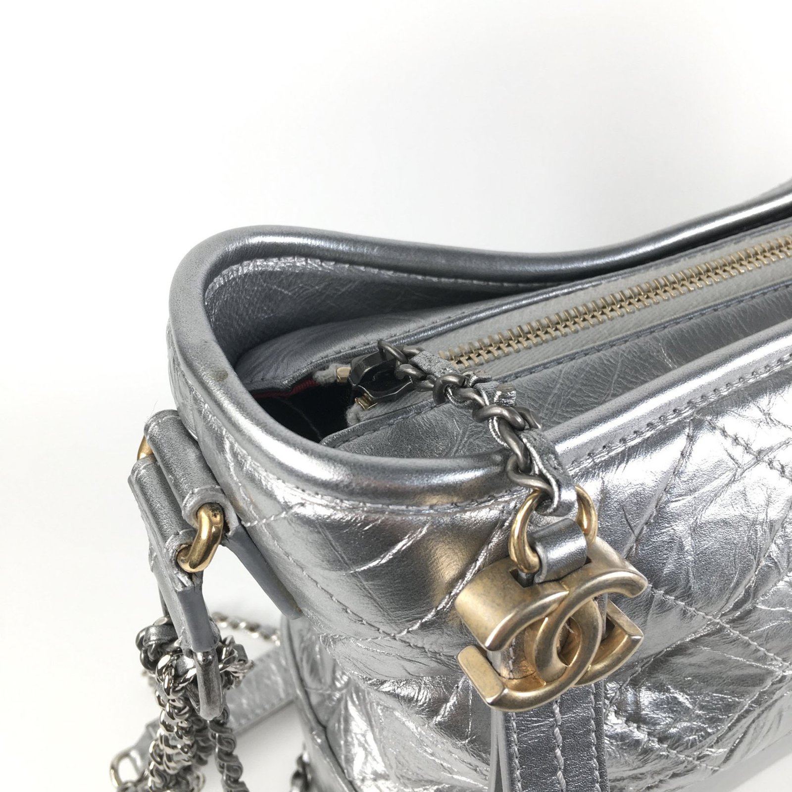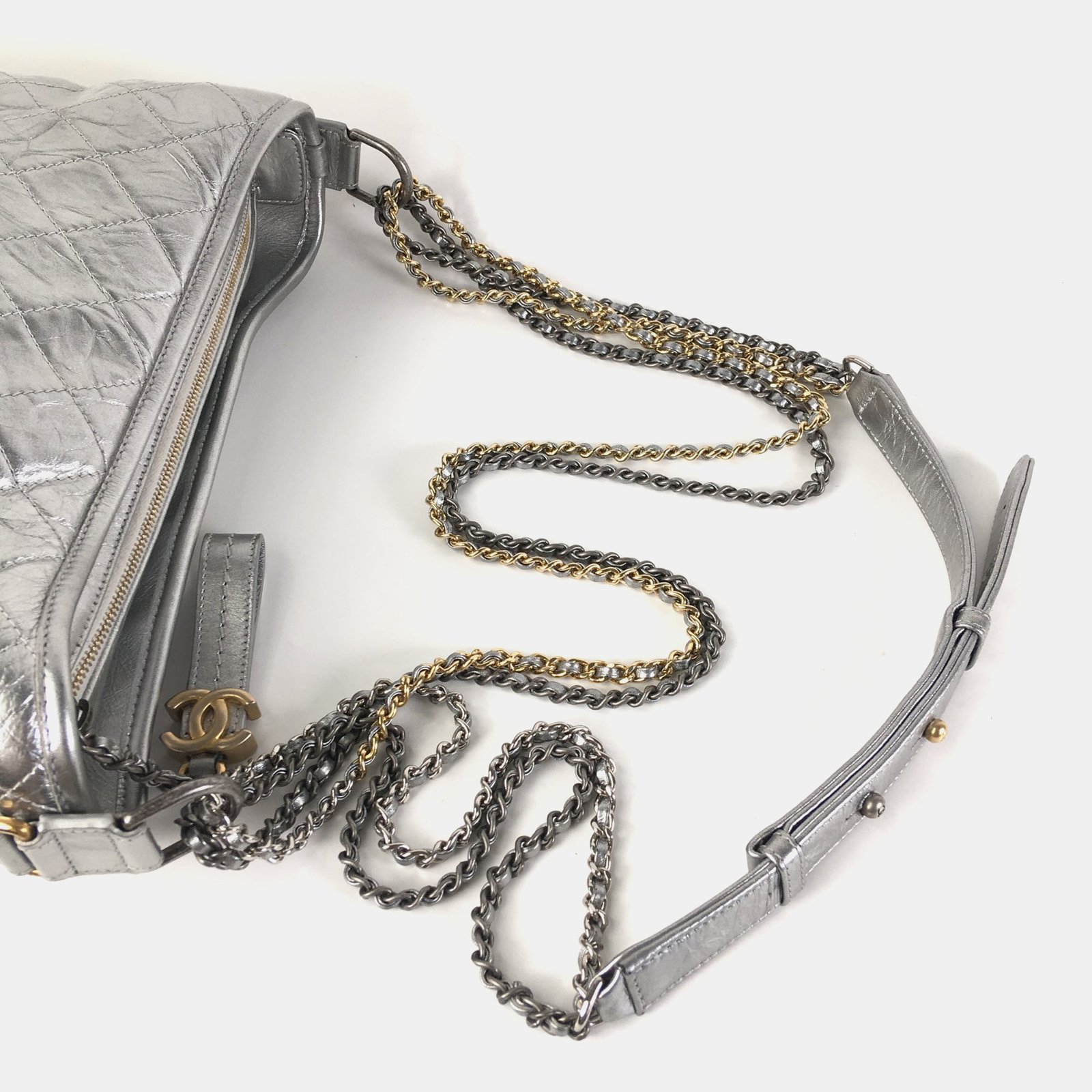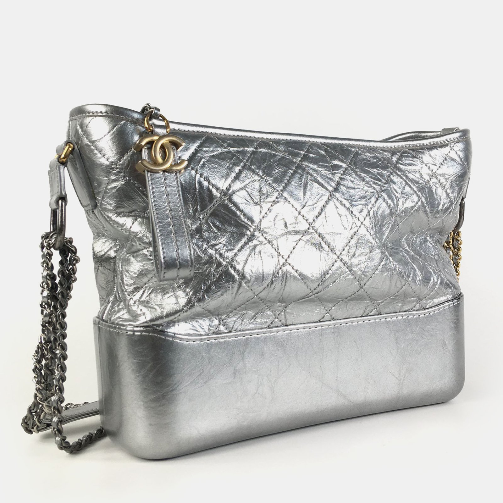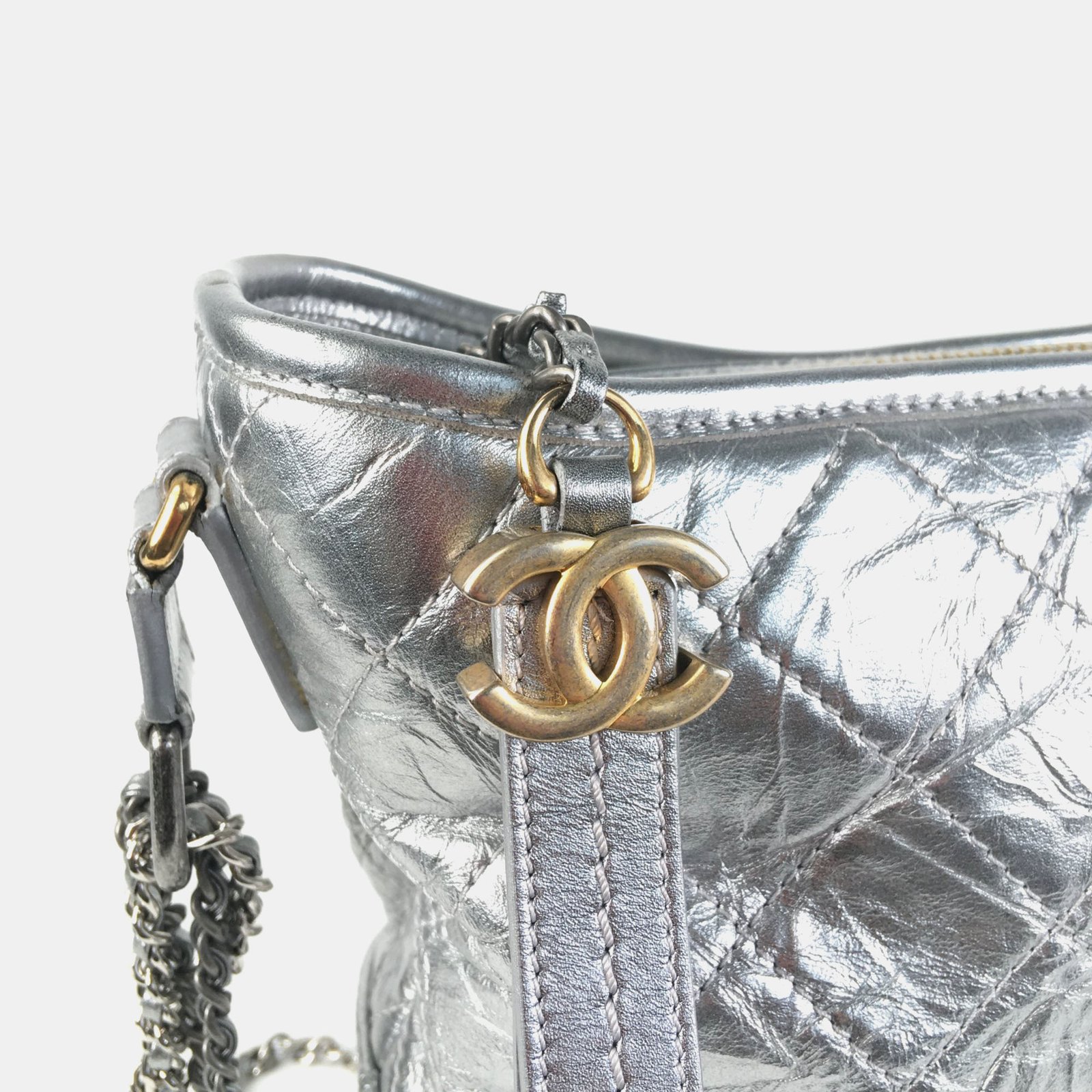 Chanel Silver Leather Medium Gabrielle Shoulder Bags