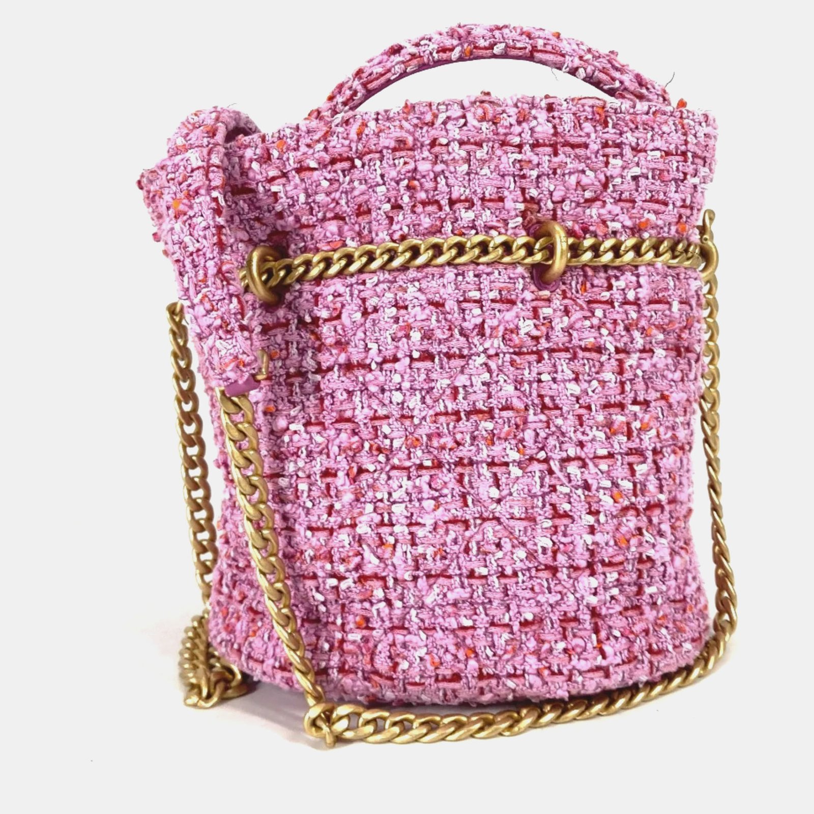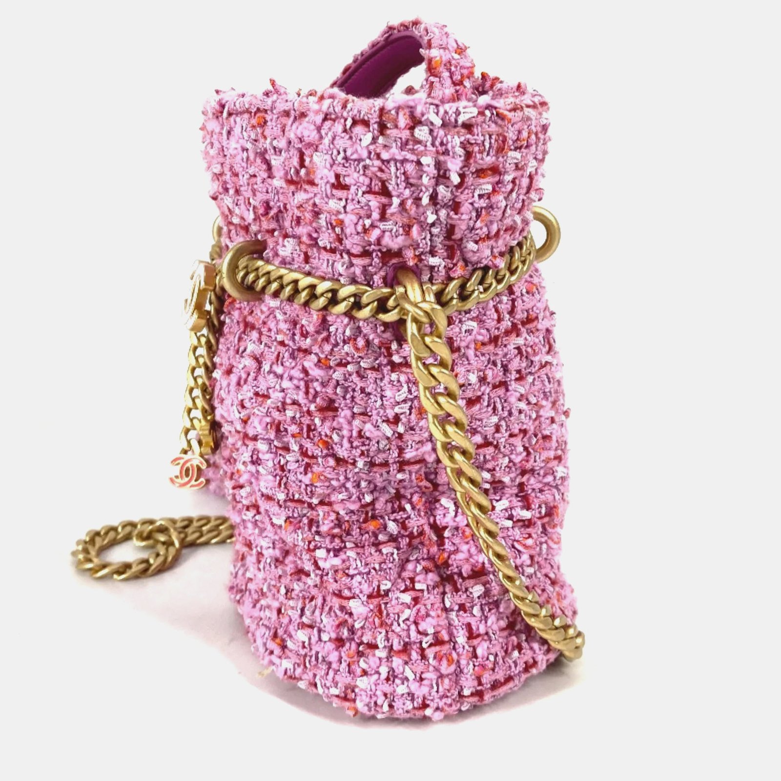 Chanel Tweed Enamel Quilted Pending CC Bucket Drawstring Shoulder Bags
