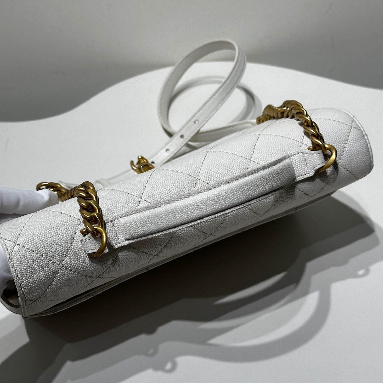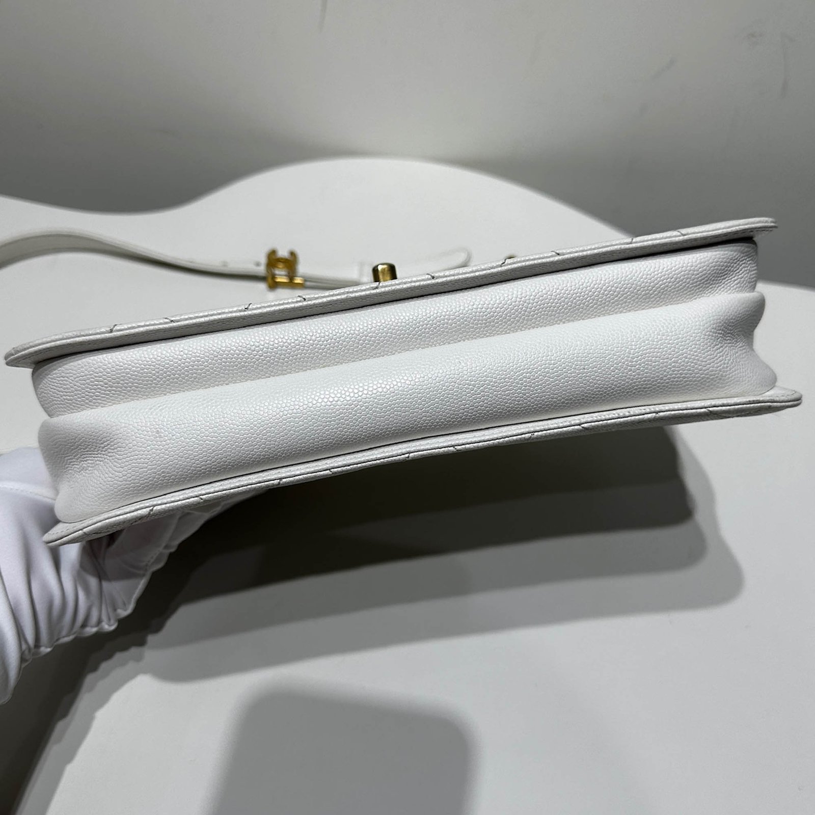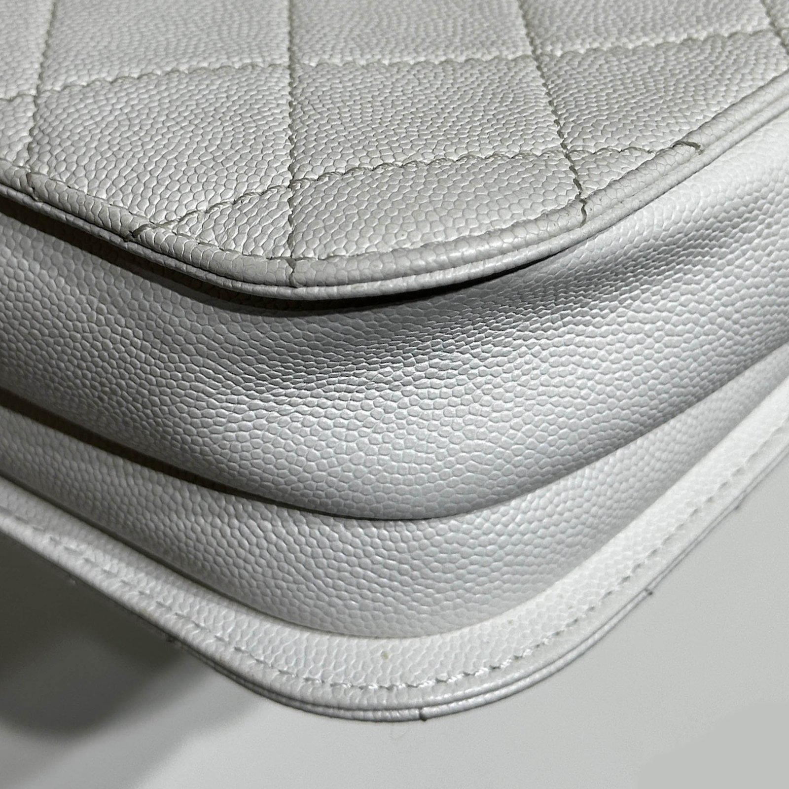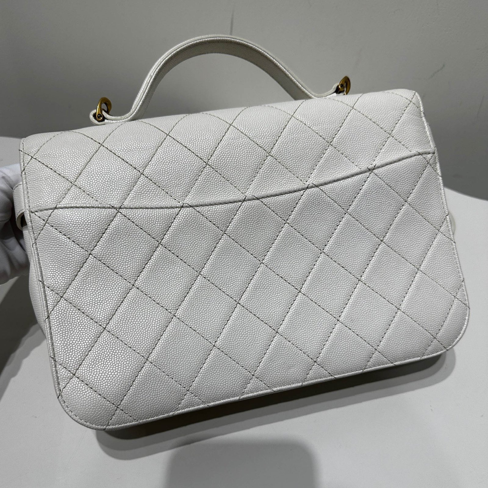 Chanel White Caviar Quilted Small Top Handle Flap Bag
