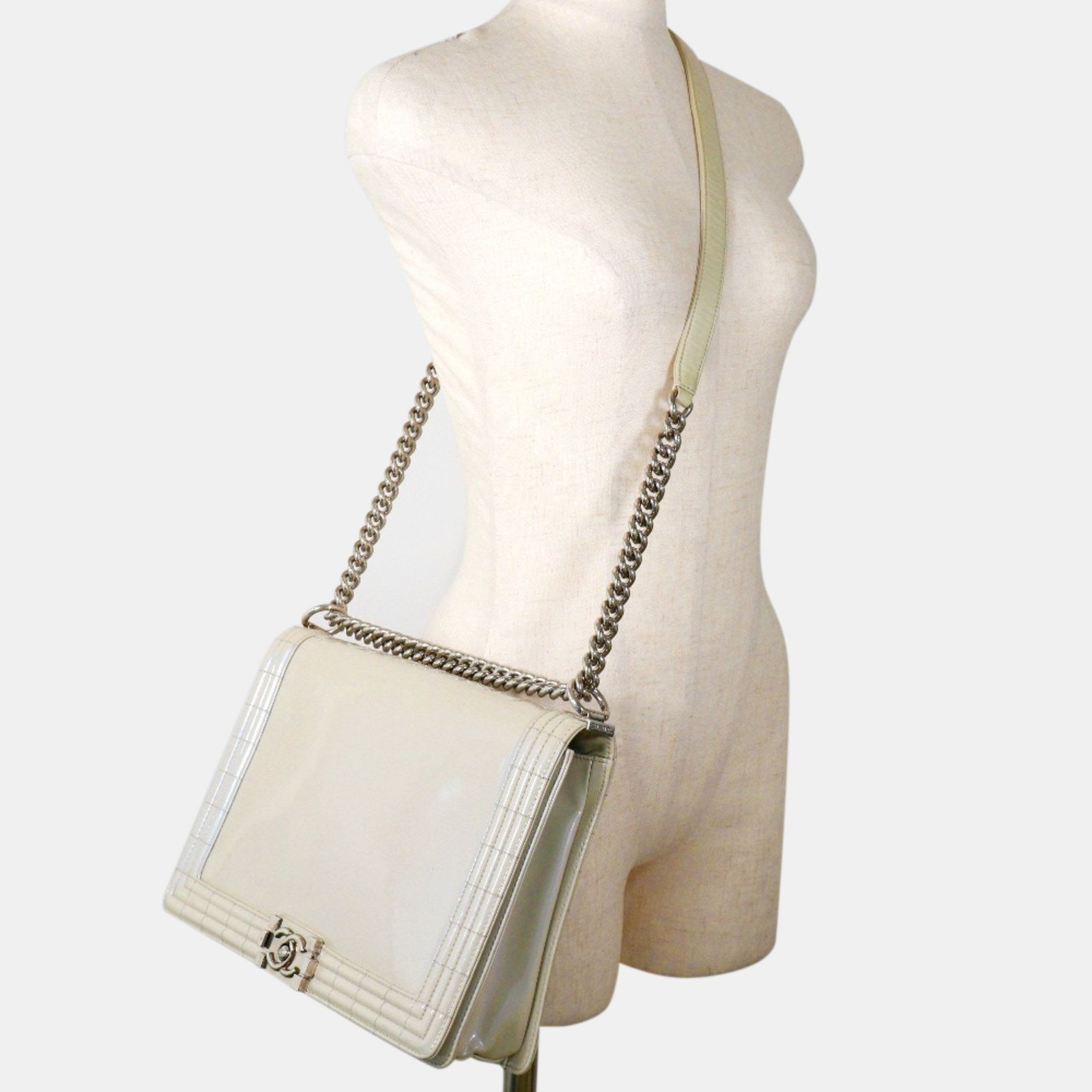 Chanel White Leather Large Reverso Boy Bag