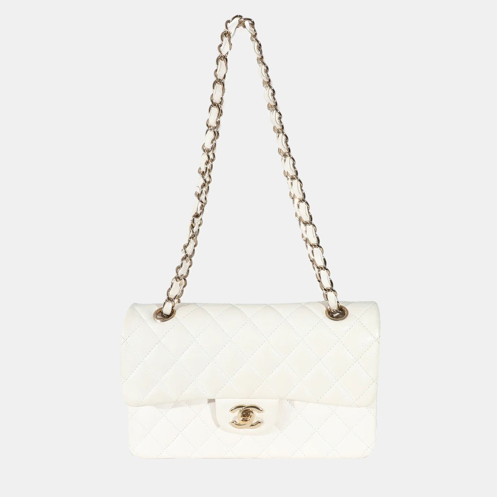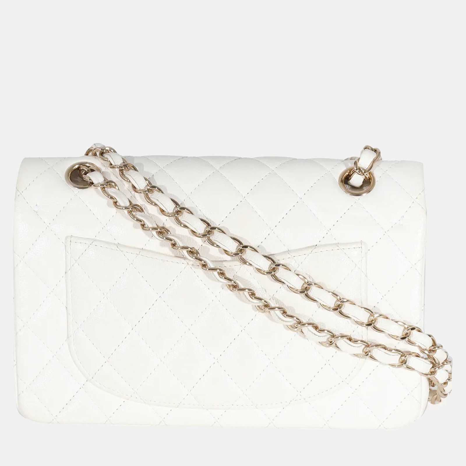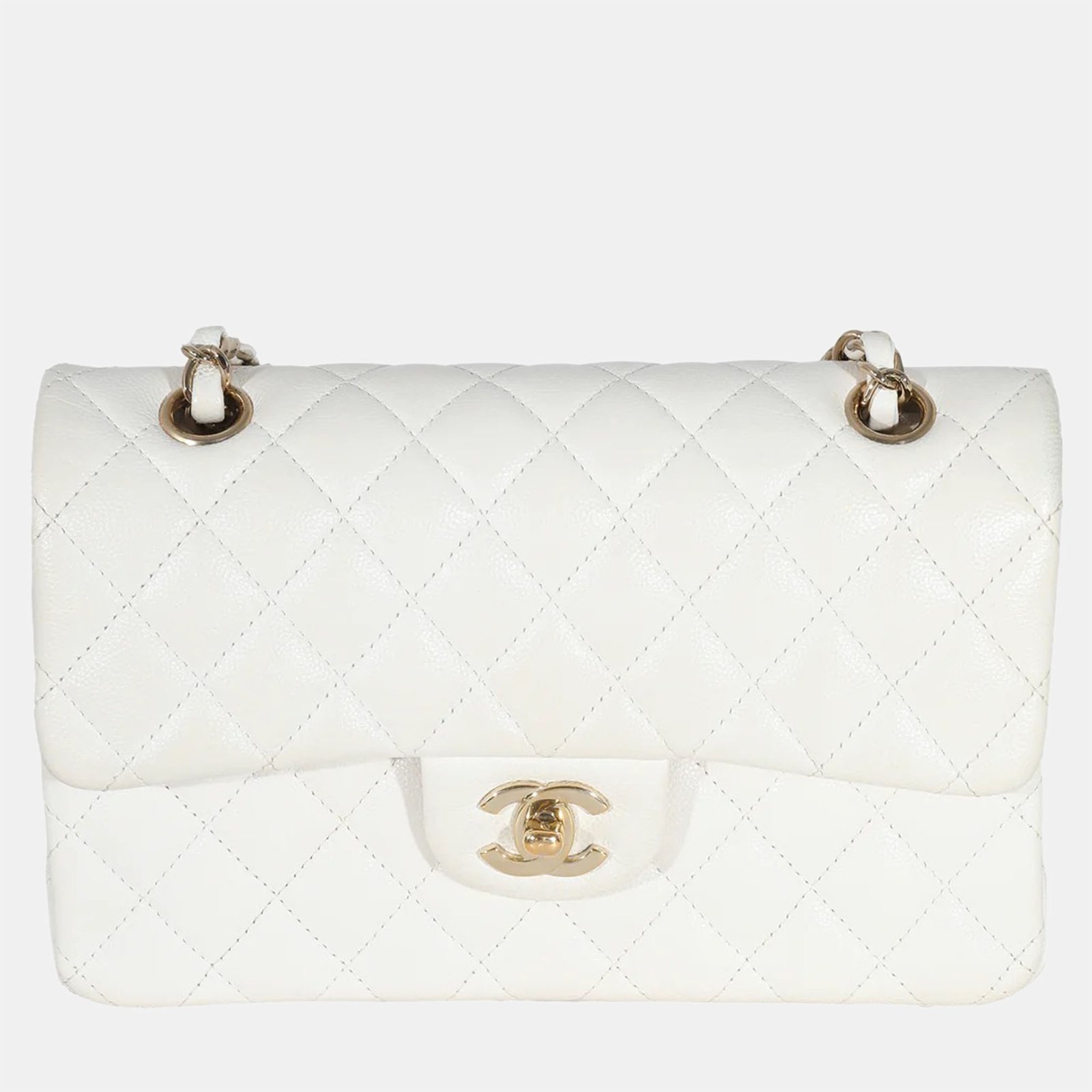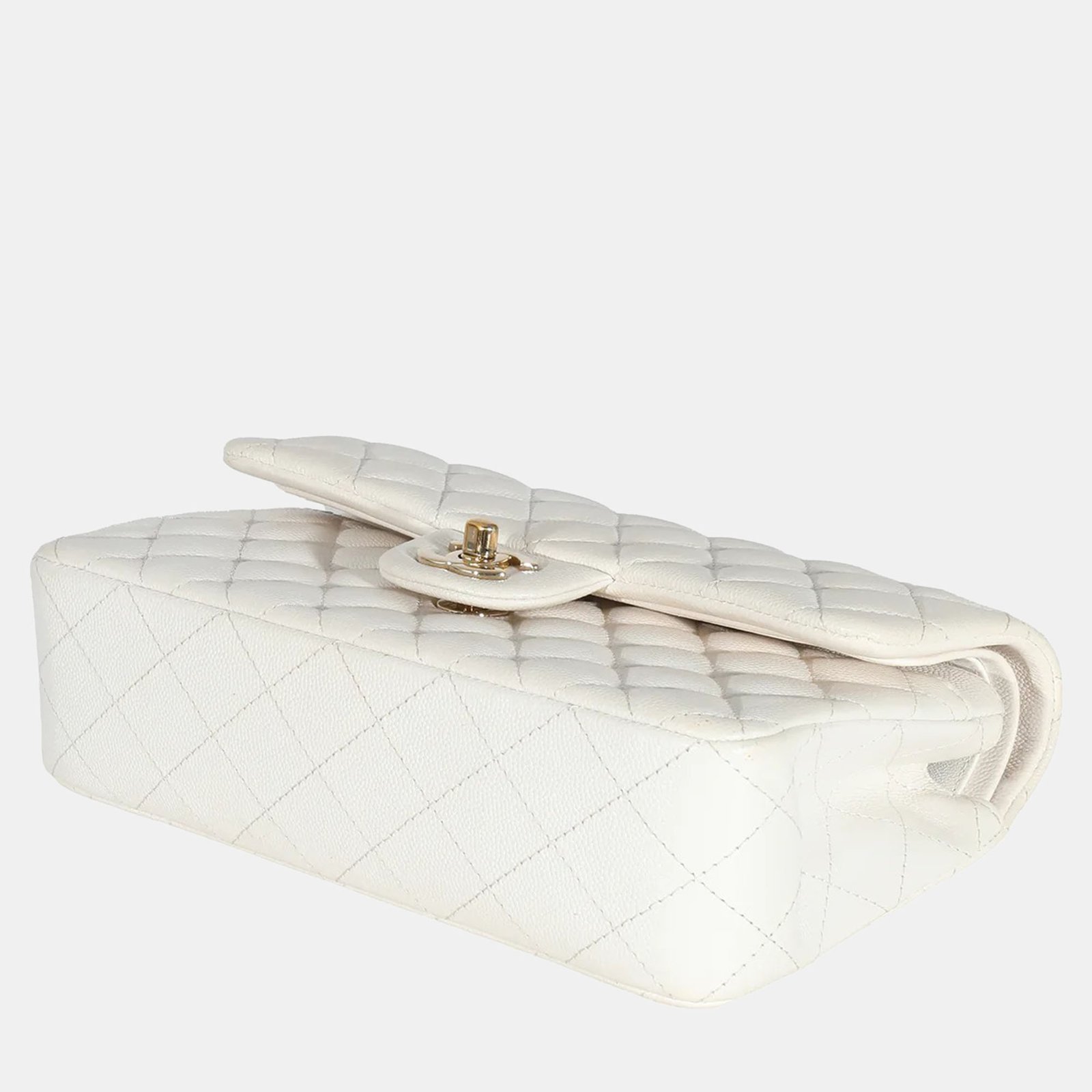 Chanel White Quilted Caviar Small Classic Double Flap Bag