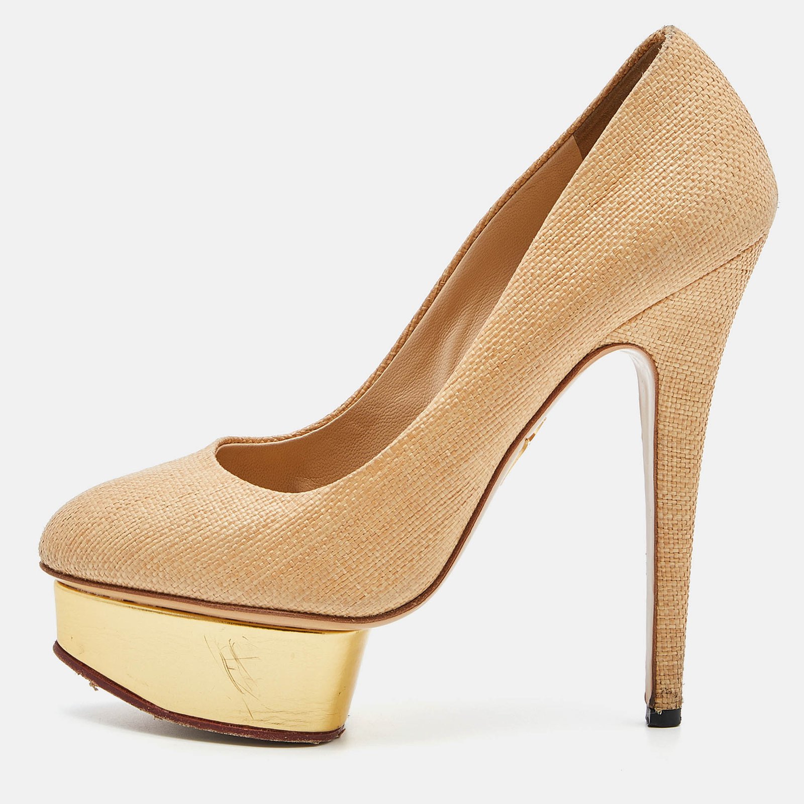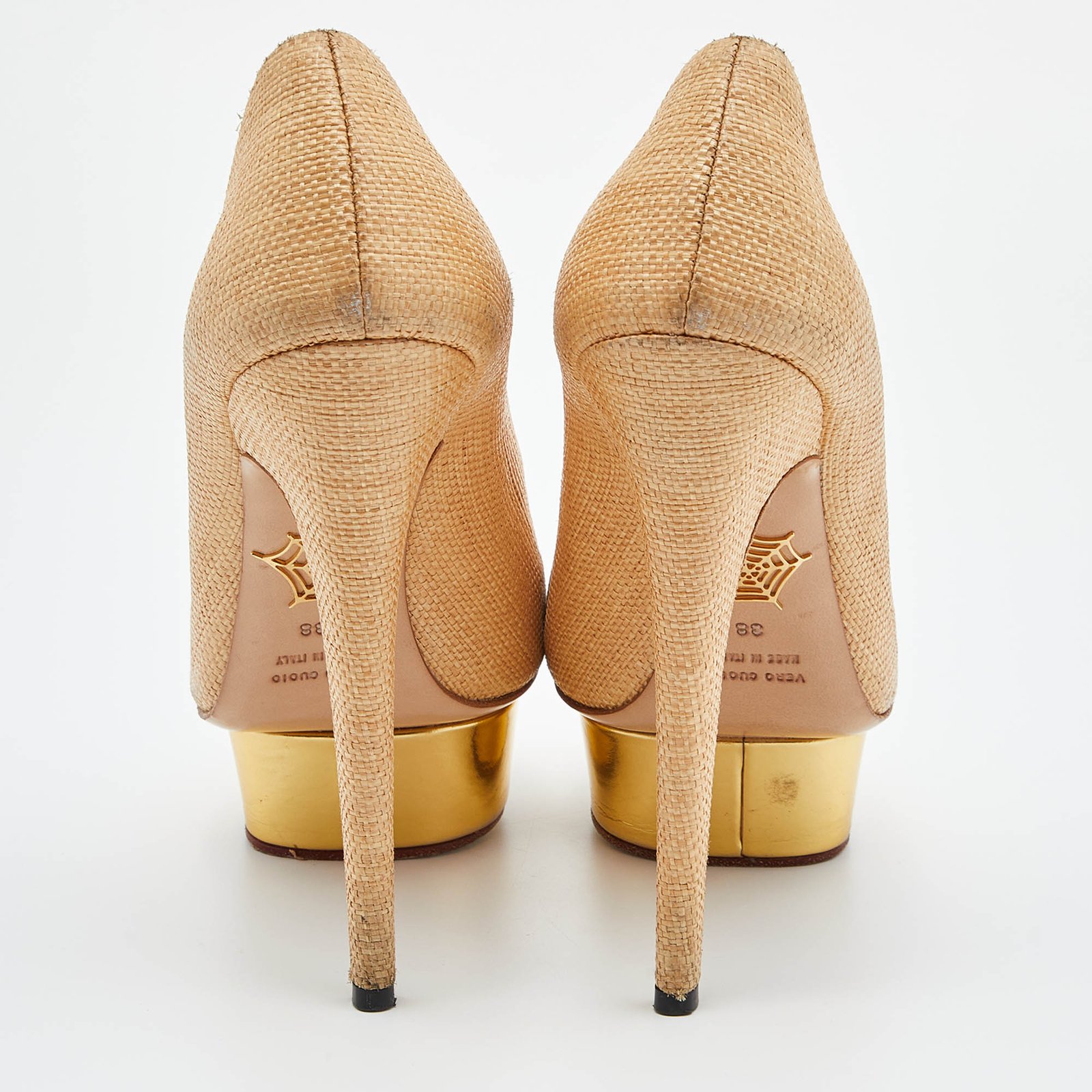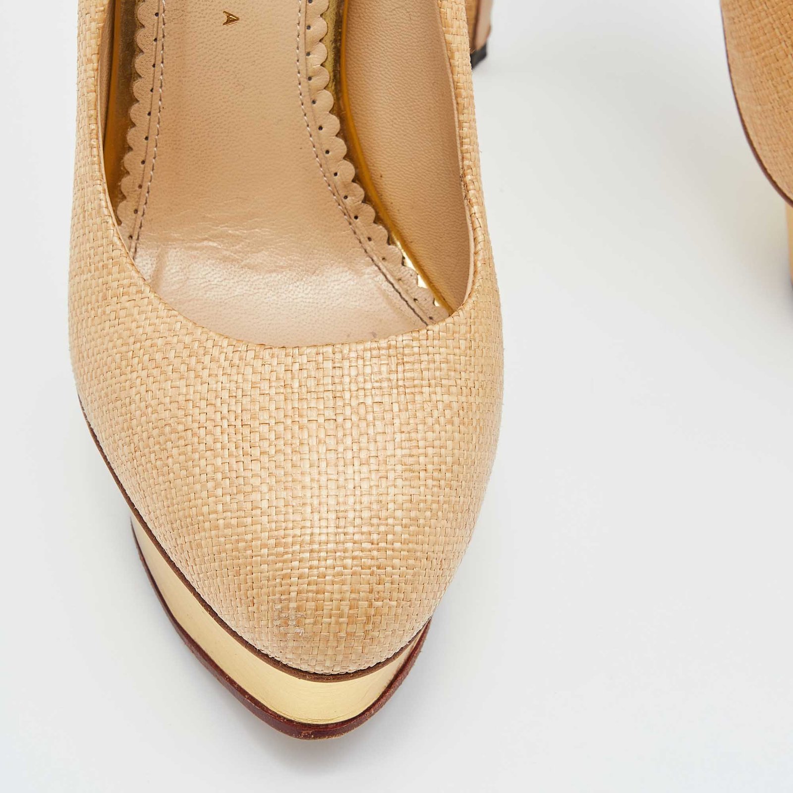 Charlotte Olympia Beige Raffia Platform Pumps Size 38
