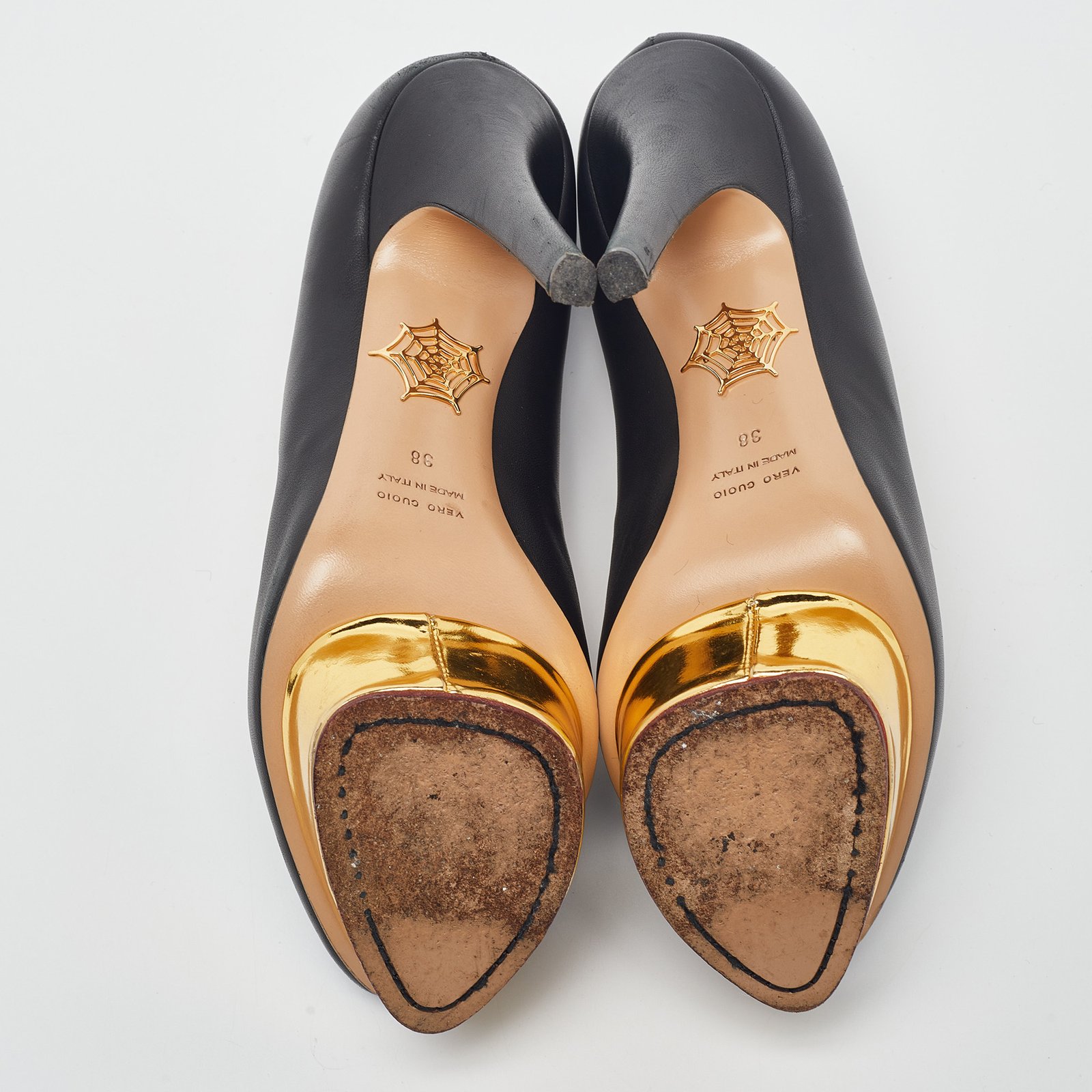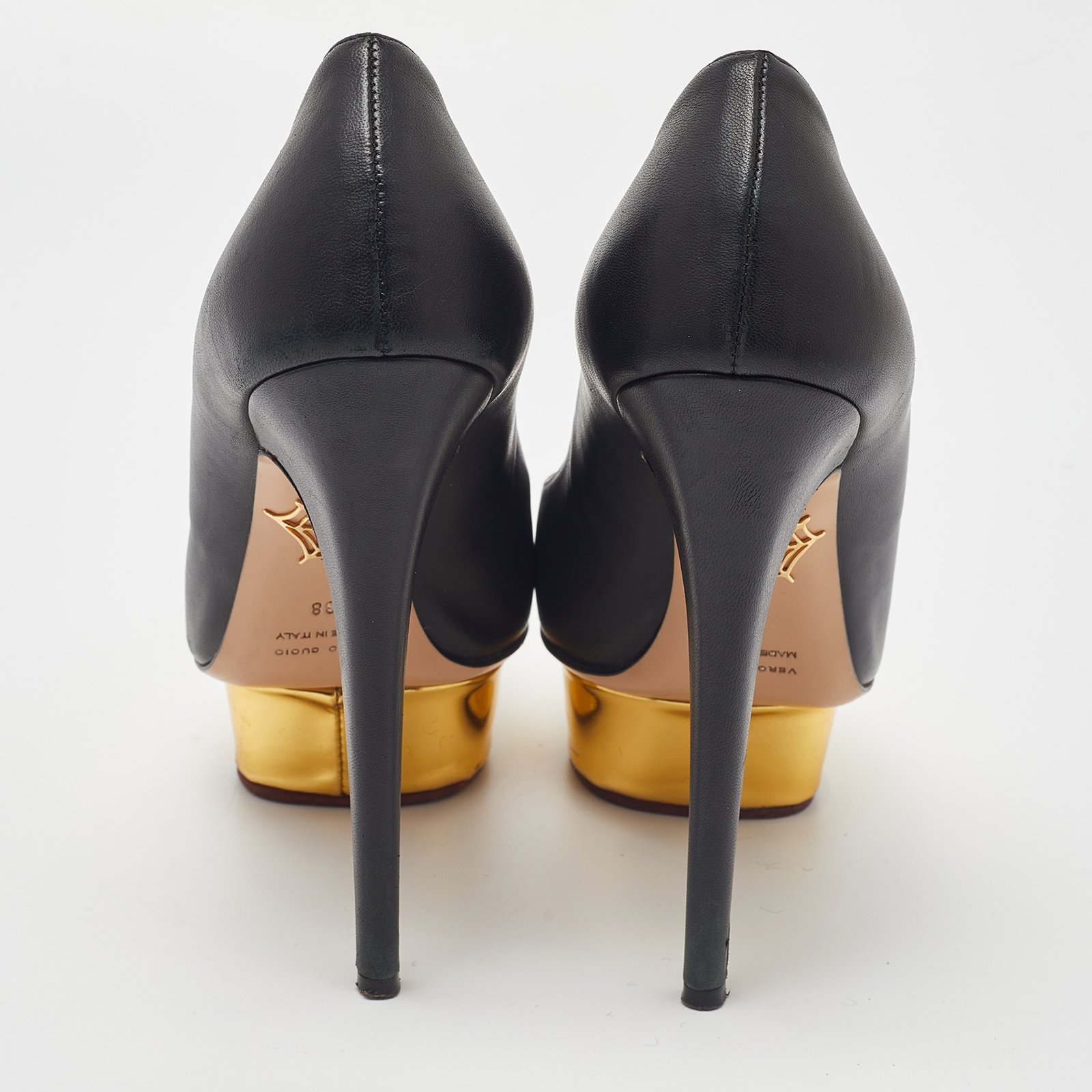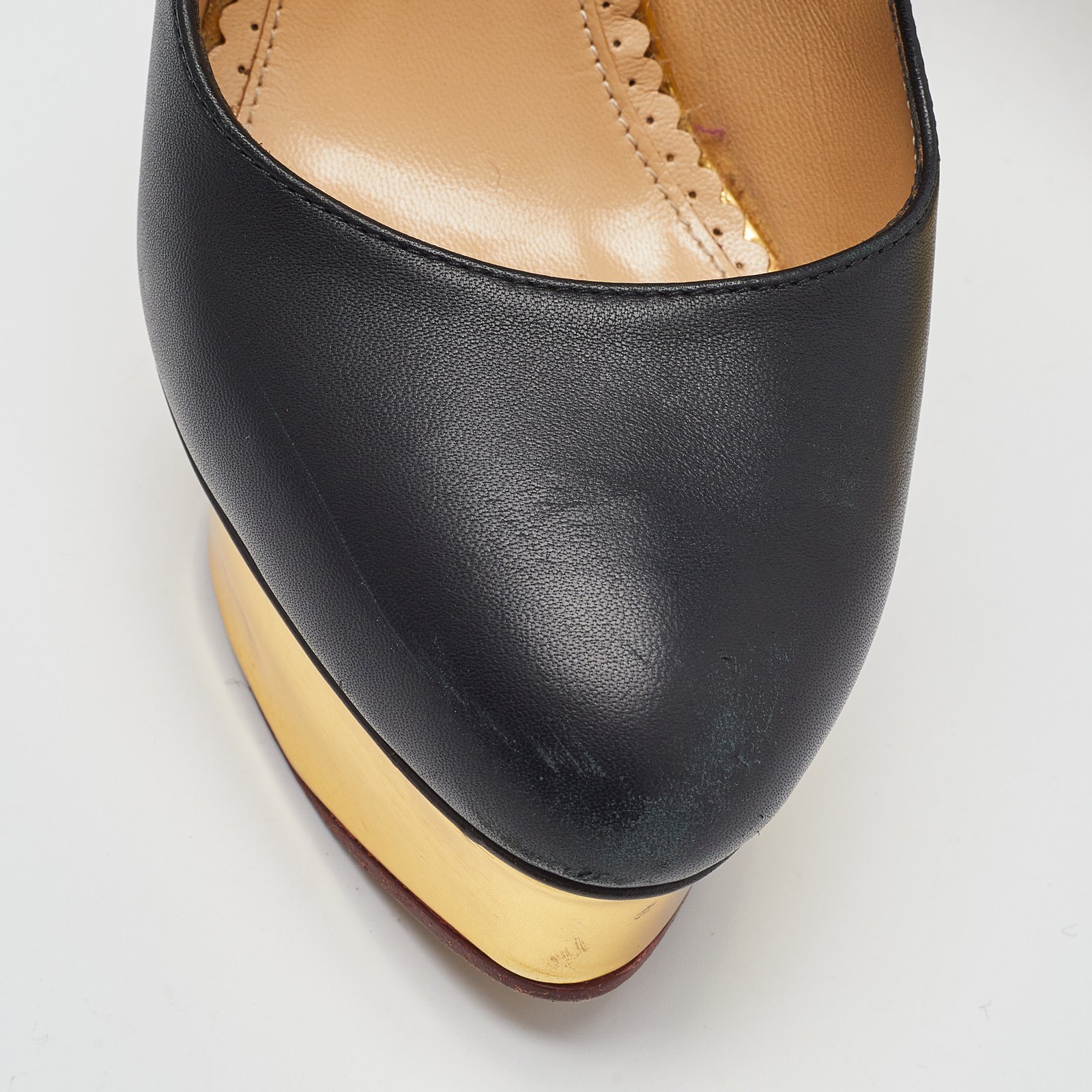 Charlotte Olympia Black Leather Dolly Platform Pumps Size 38