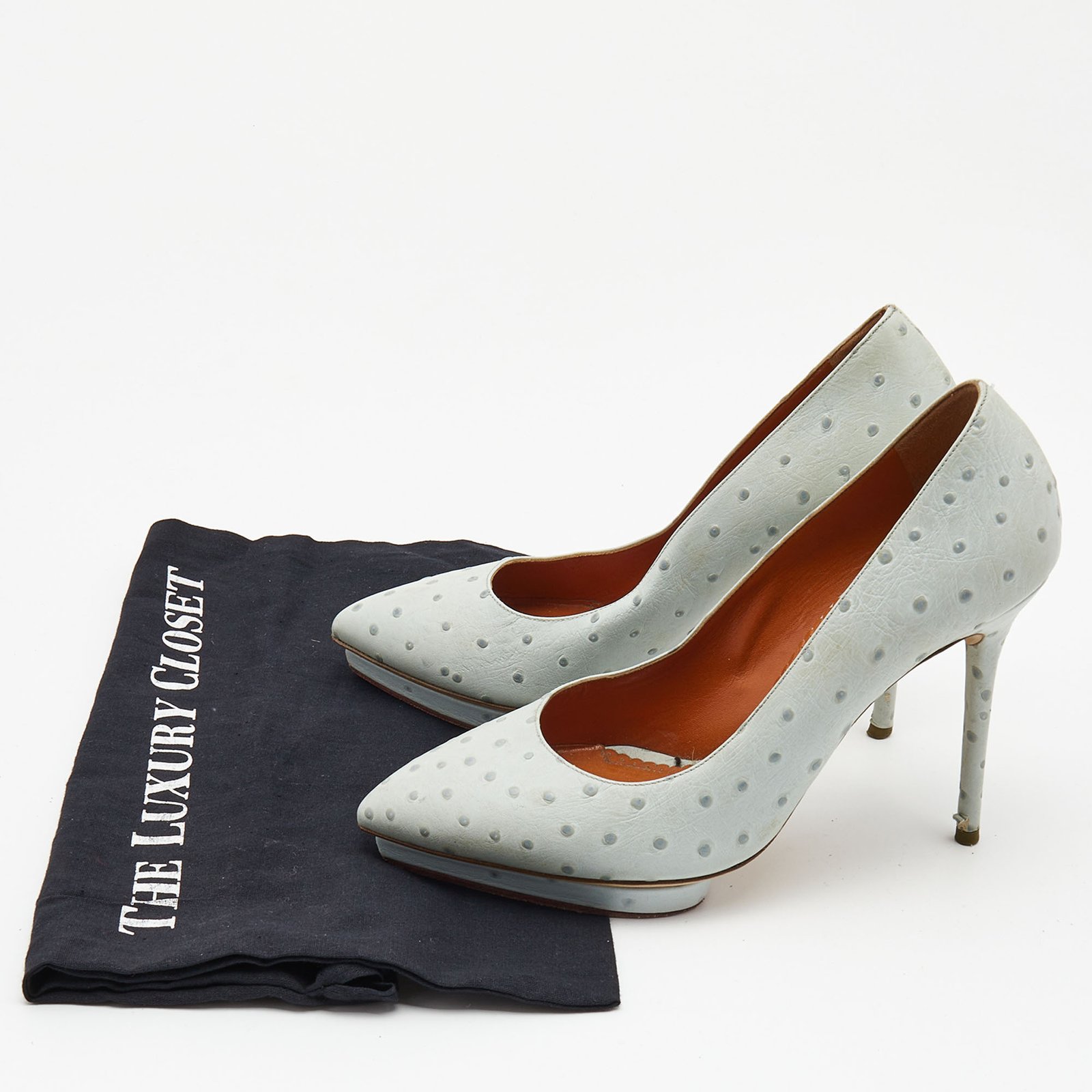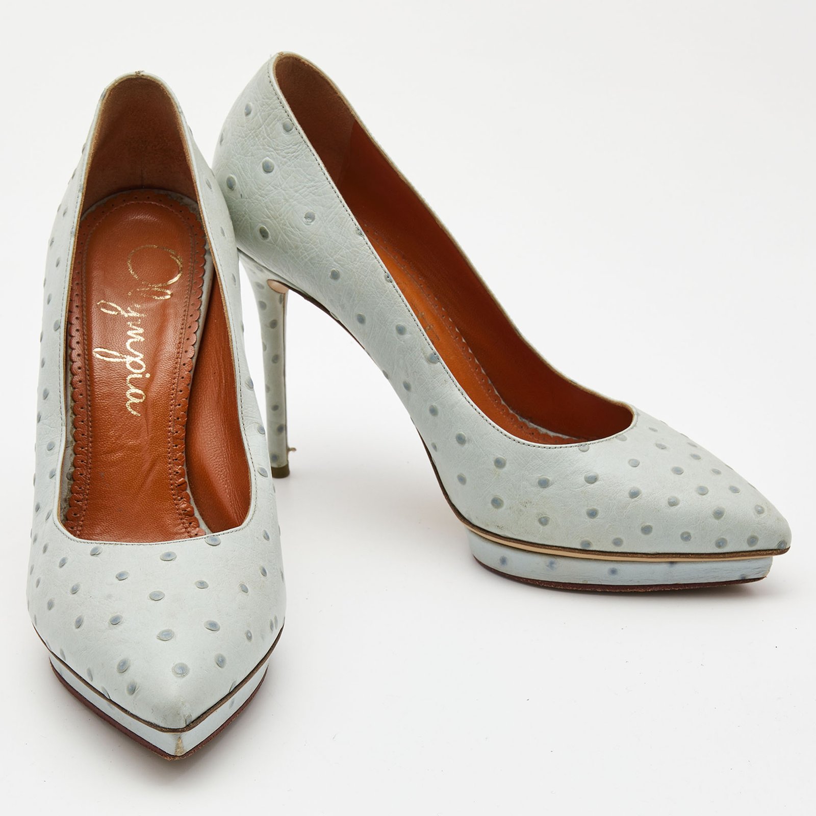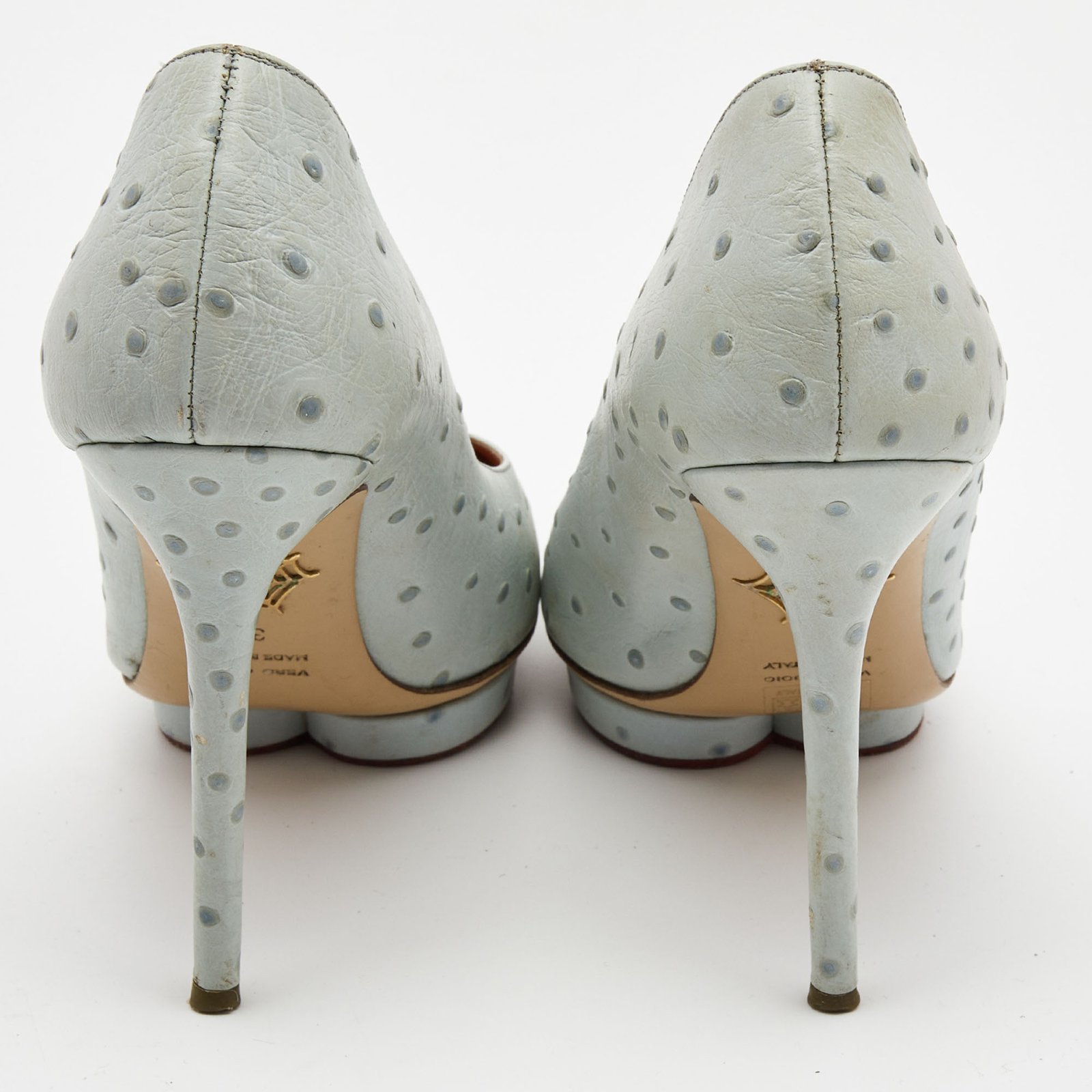 Charlotte Olympia Light Blue Embossed Ostrich Leather Debbie Pumps Size 39