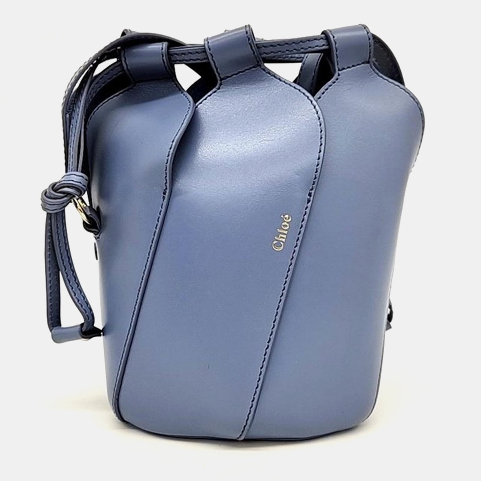 Chloe Blue Leather Mini Tulip Bucket Bag