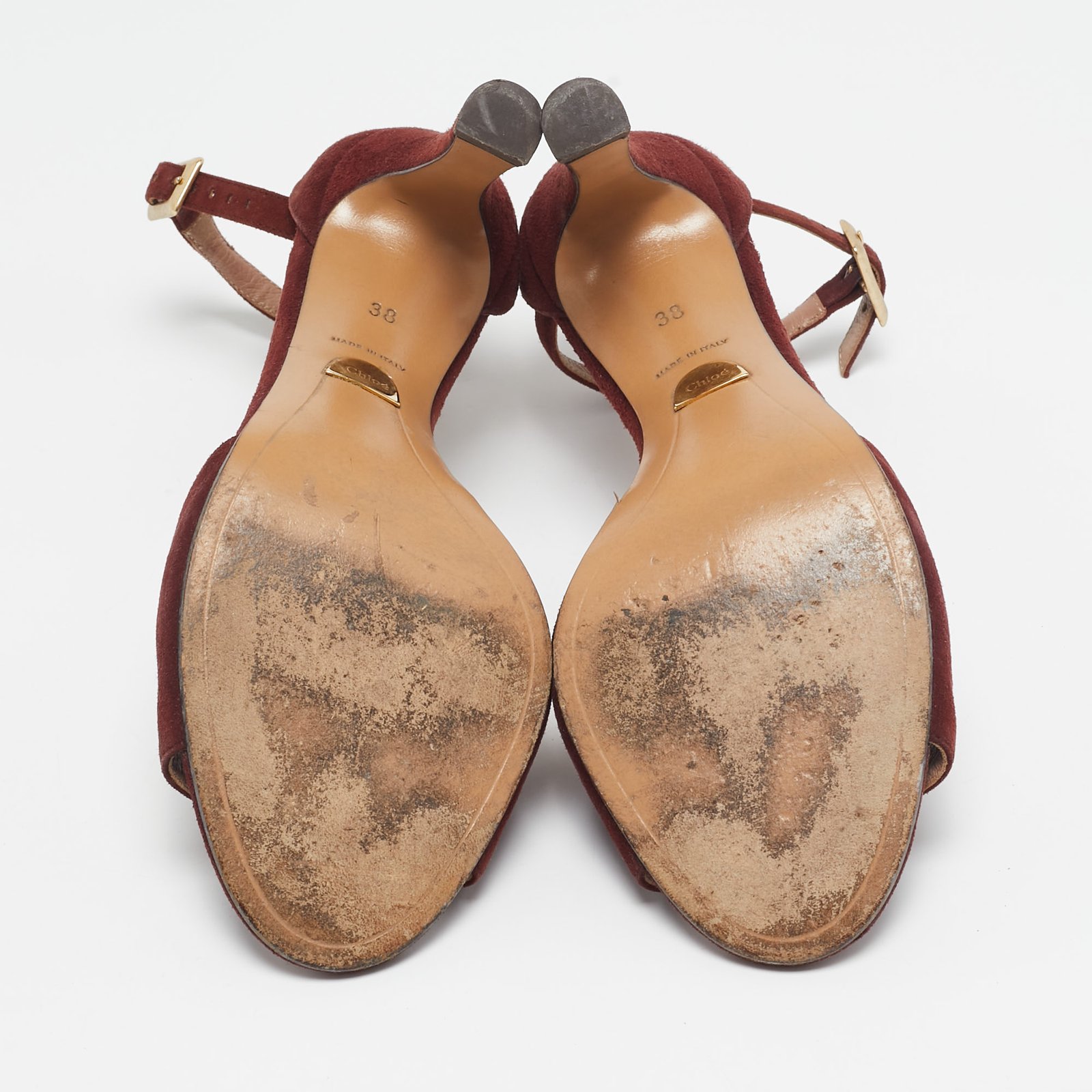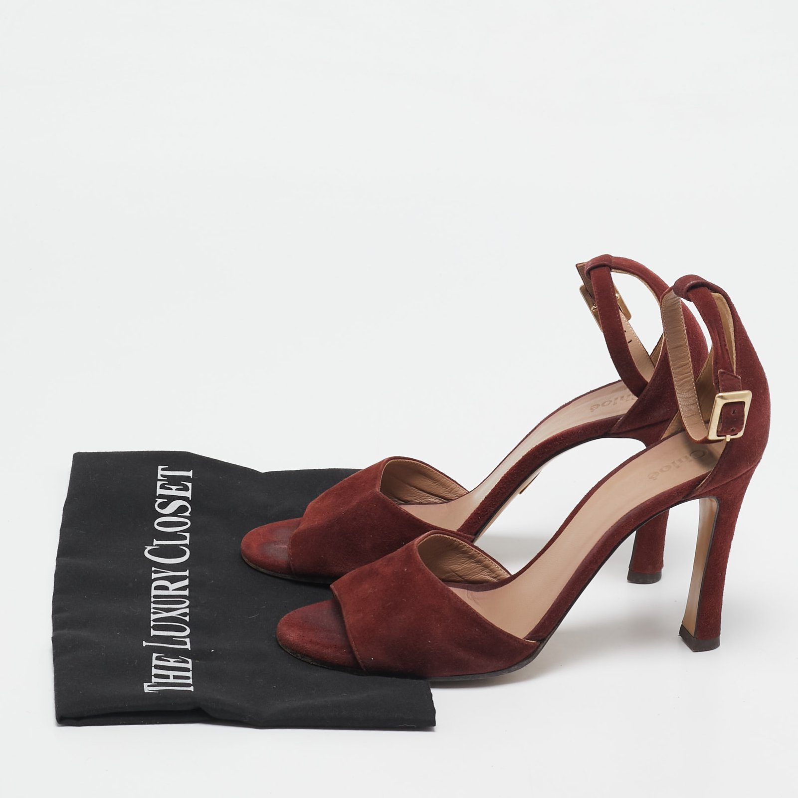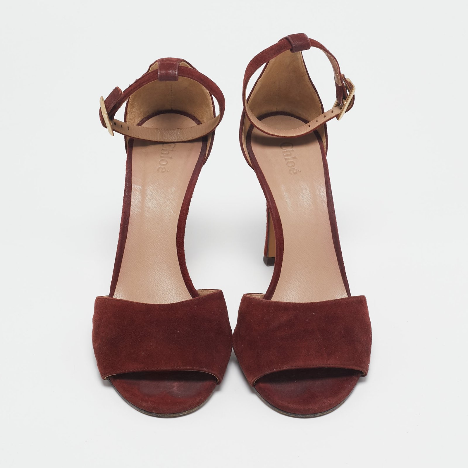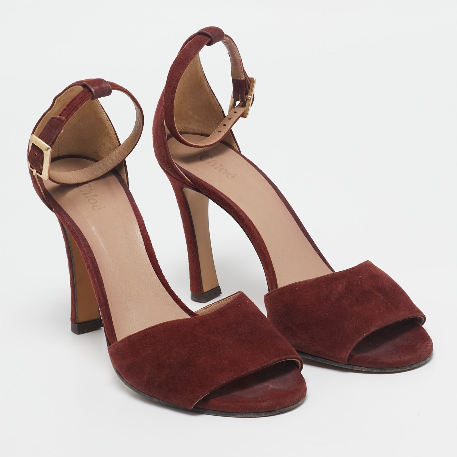 Chloe Burgundy Suede Ankle Strap Sandals Size 38
