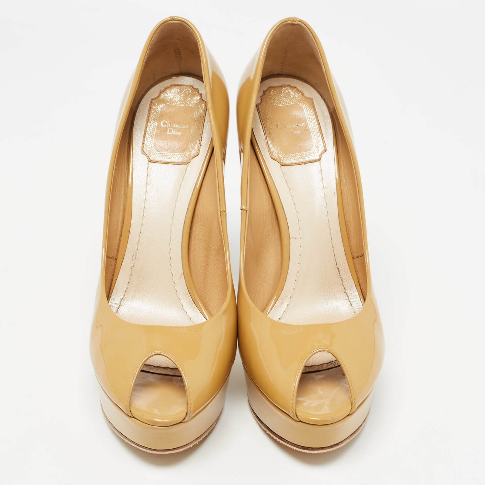Christian Dior Beige Patent Leather Peep Toe Platform Pumps Size 39 - Image 2