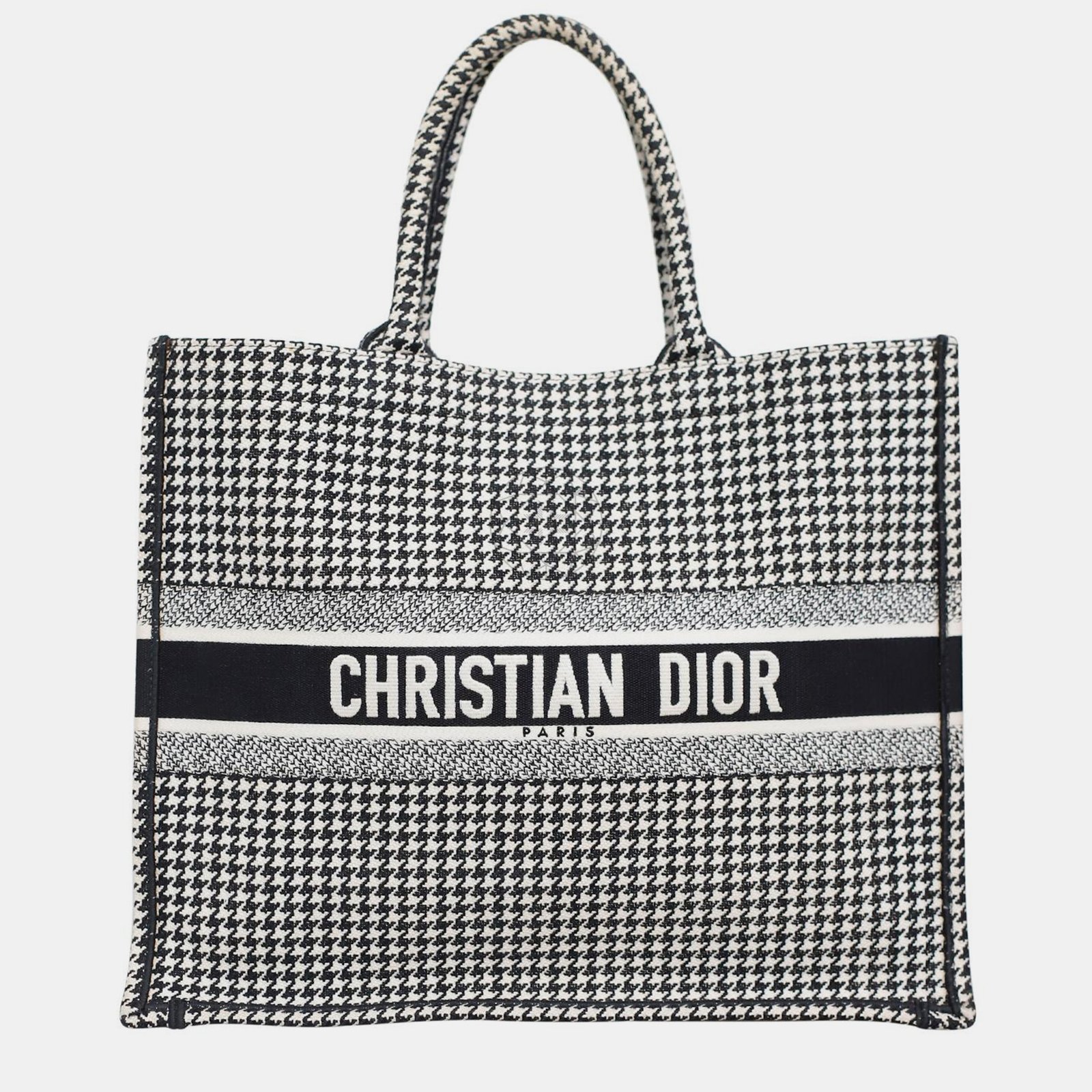 Christian Dior Black/ White Houndstooth Large Book Tote Bag