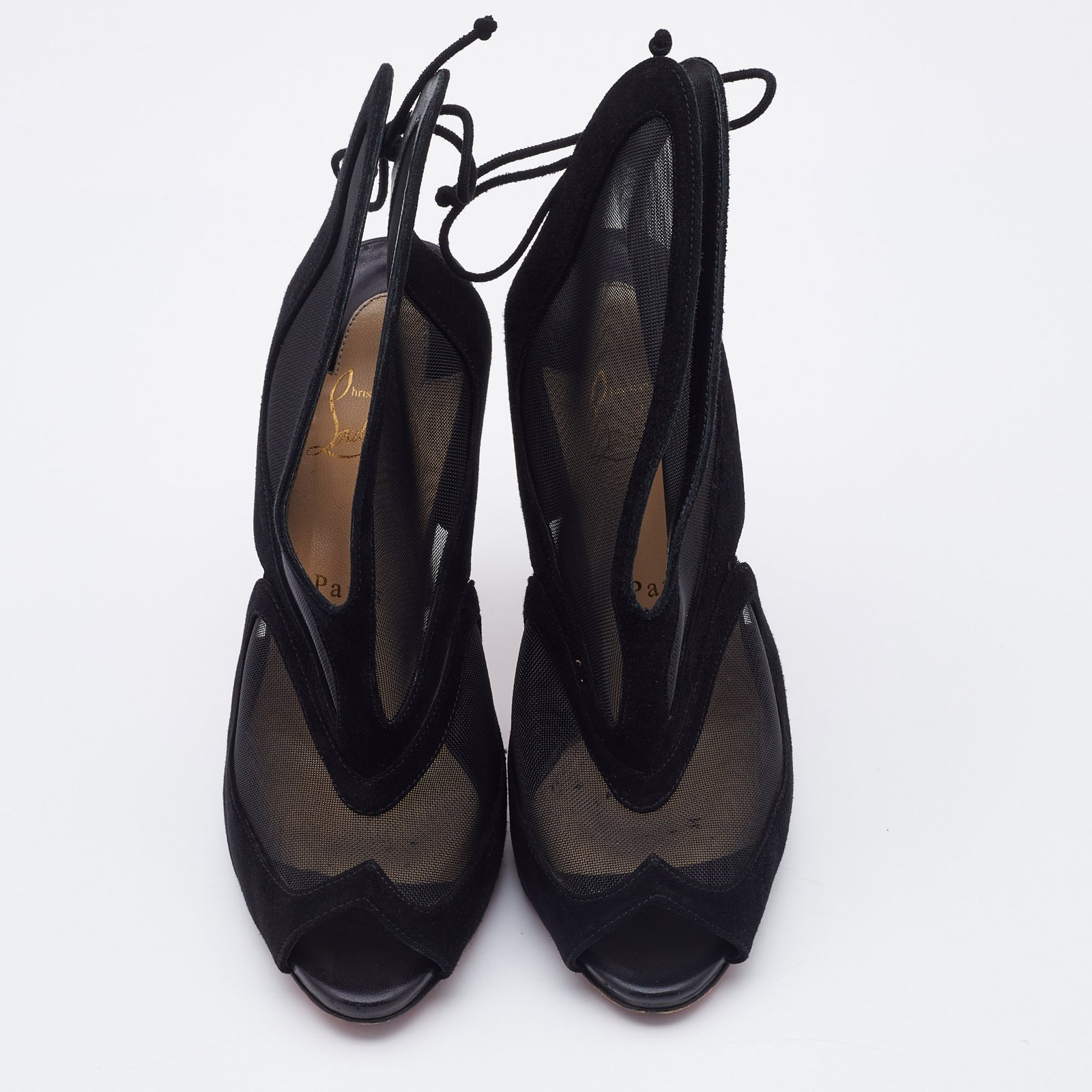 Christian Louboutin Black Suede and Mesh Farfamesh Booties Size 38.5