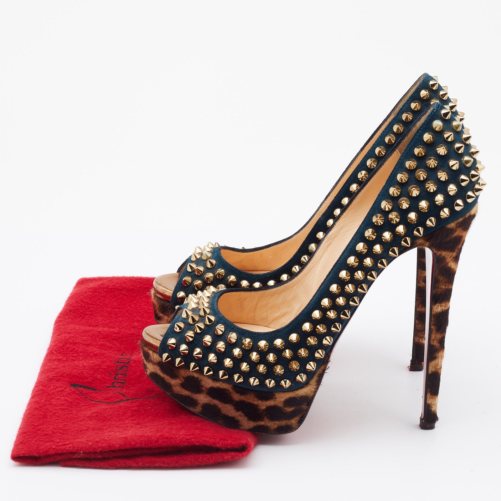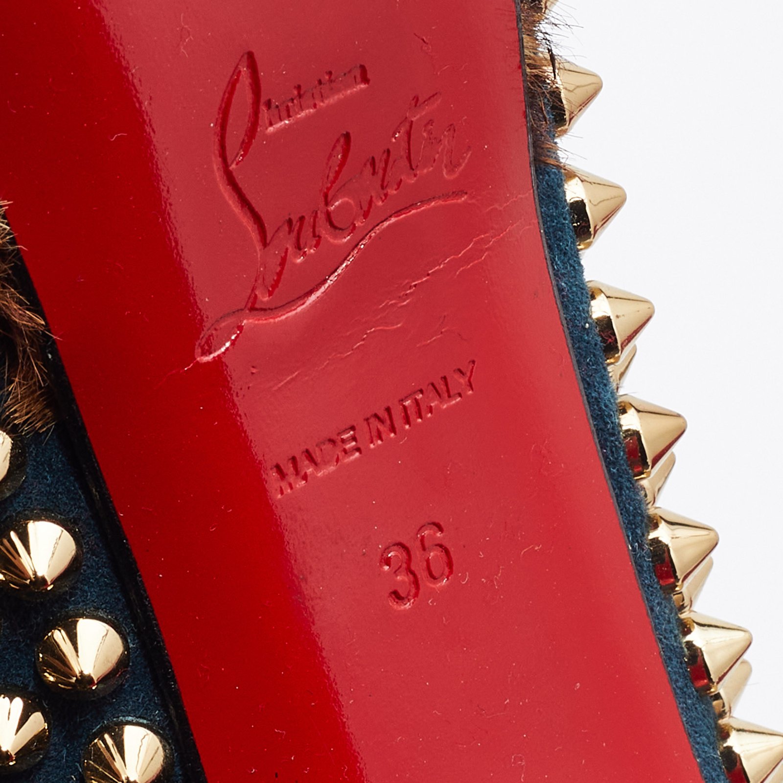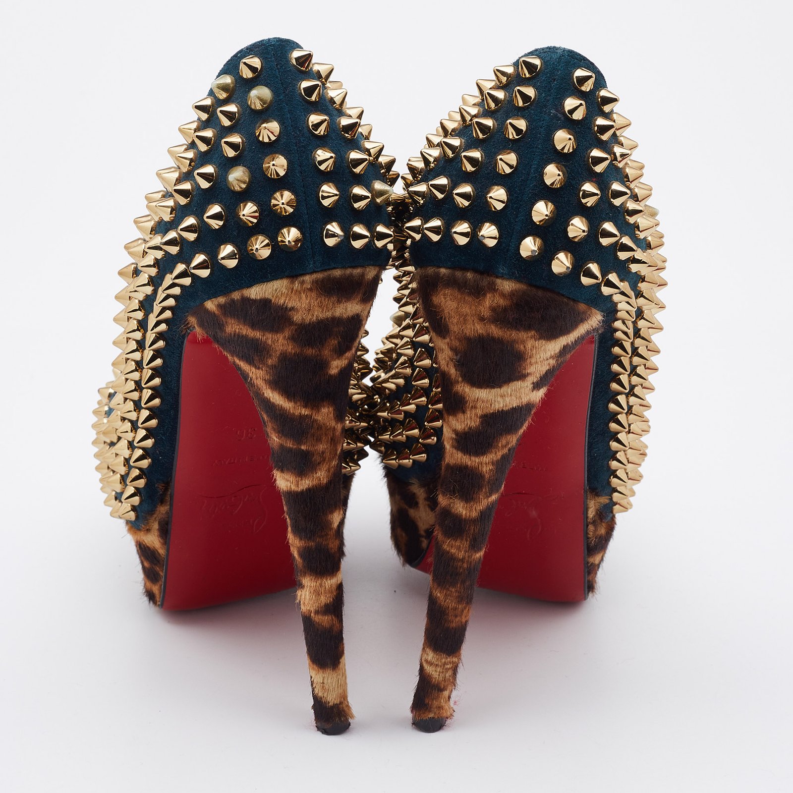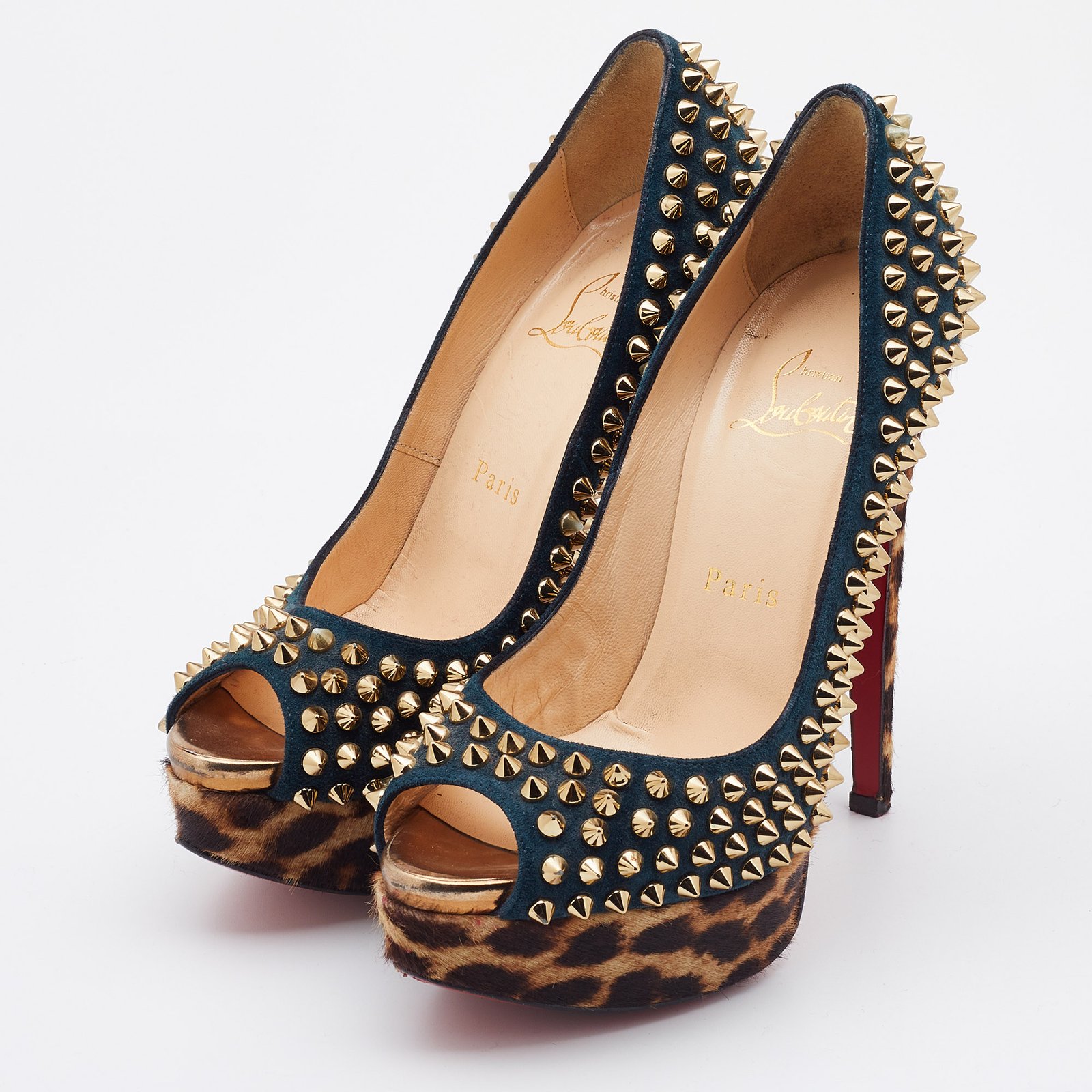 Christian Louboutin Multicolor Suede and Calfhair Lady Peep-Toe Spikes Platform Pumps Size 36