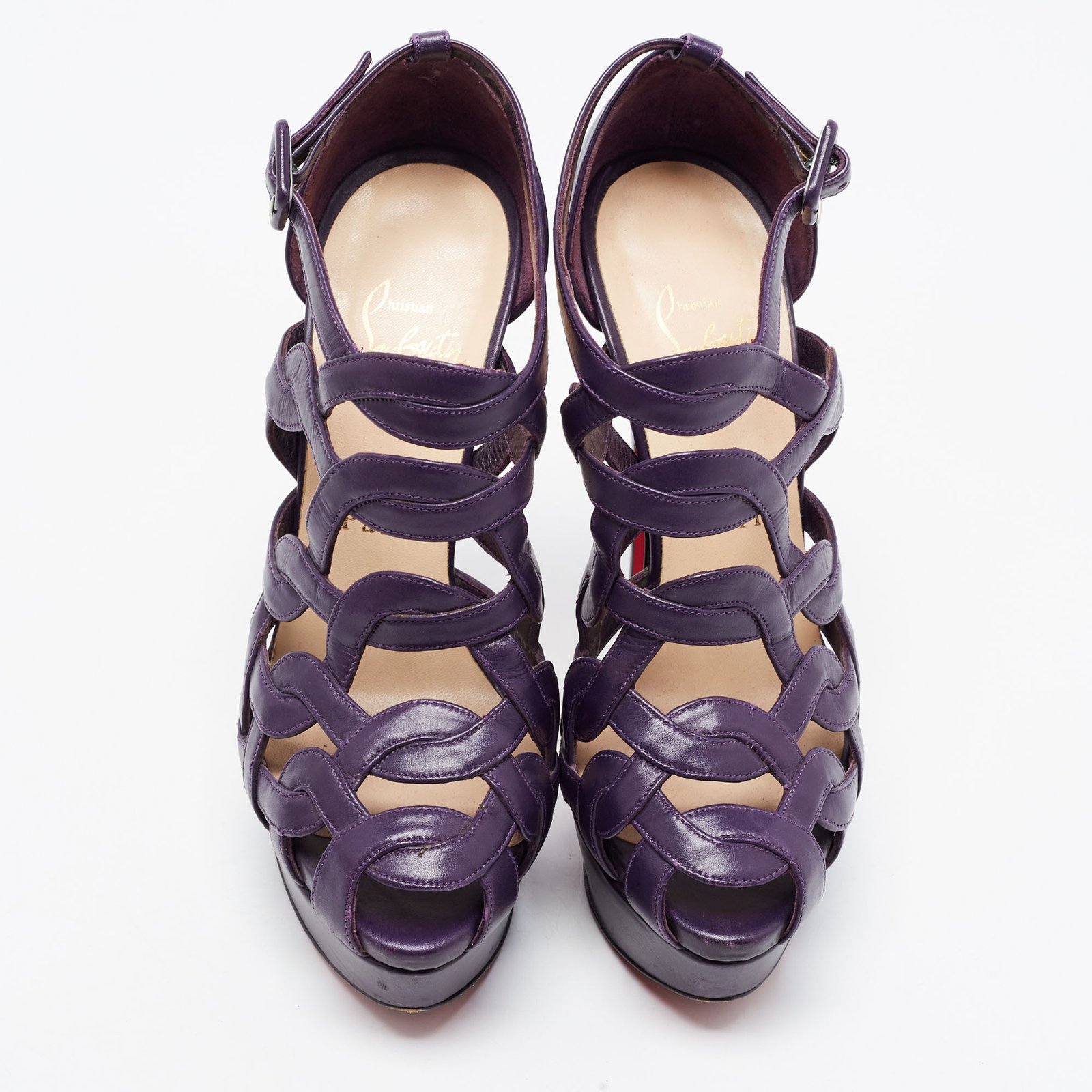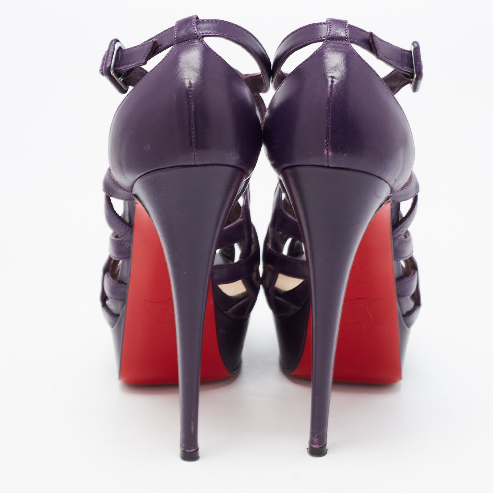 Christian Louboutin Purple Leather Nicole Caged Ankle Strap Sandals Size 36.5 - Image 8