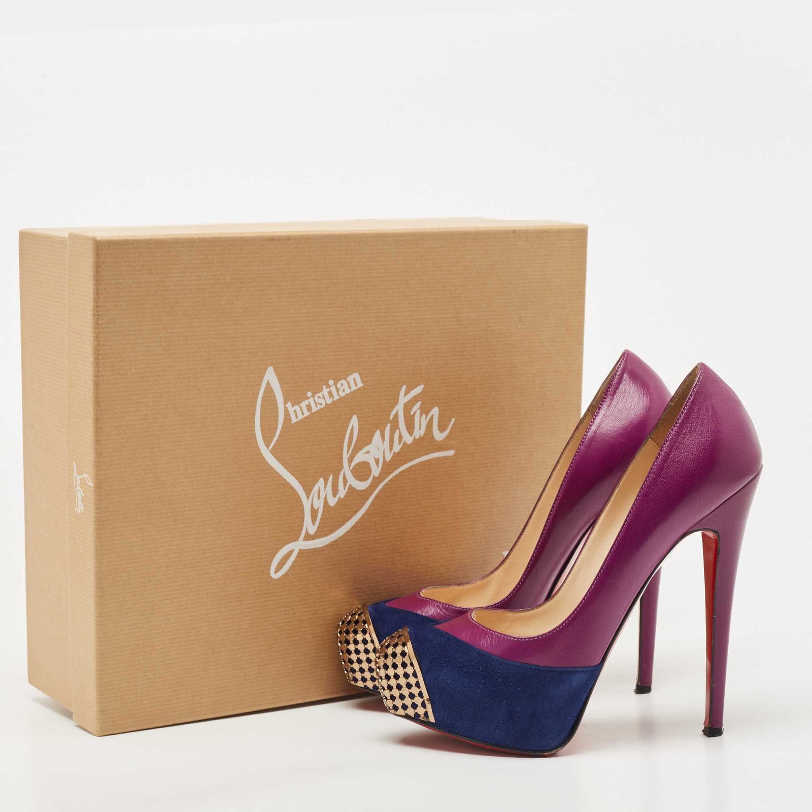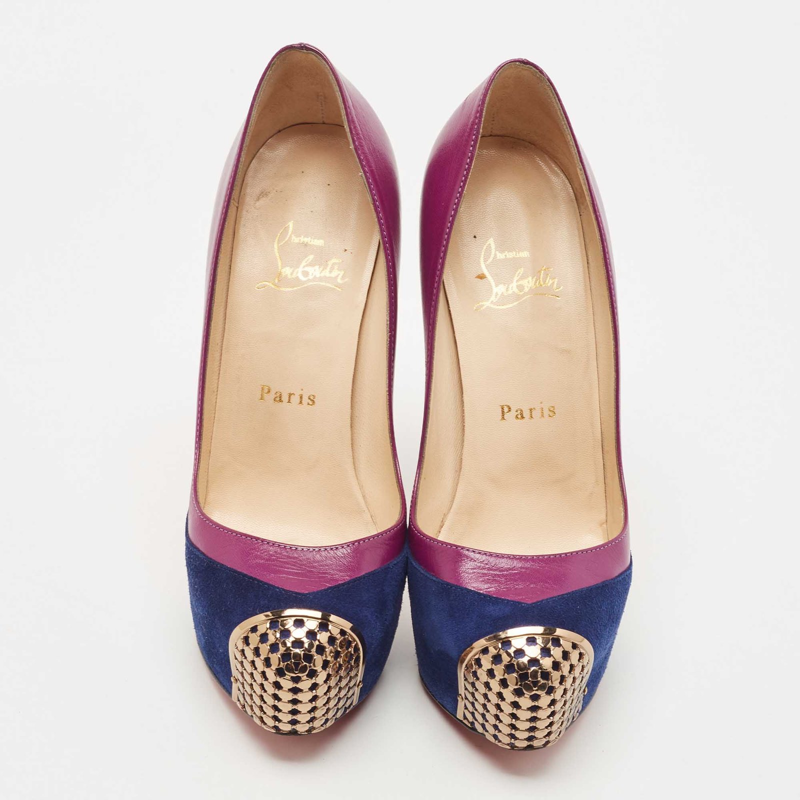 Christian Louboutin Purple Suede and Leather Maggie Platform Pumps Size 36.5