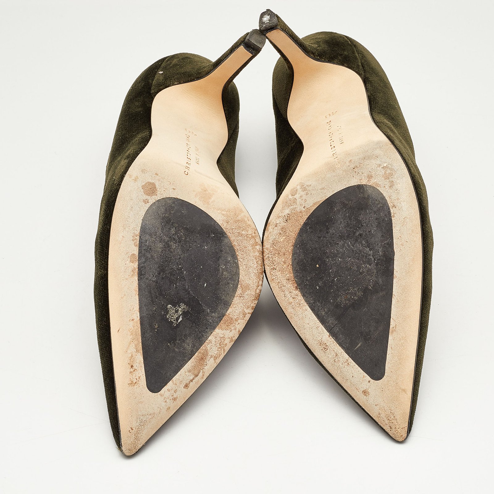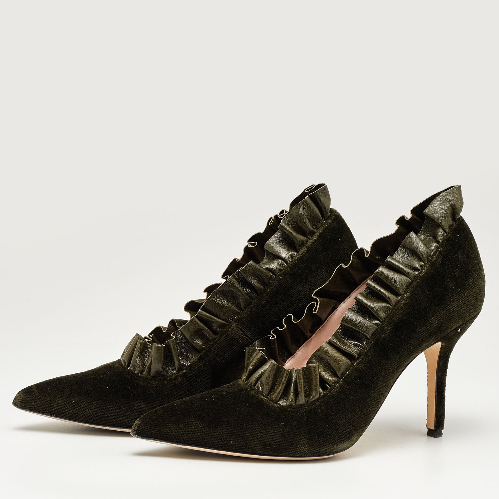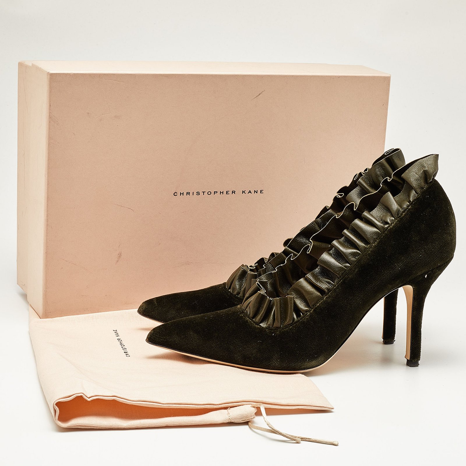 Christopher Kane Army Green Velvet and Ruffled Leather Pumps Size 40