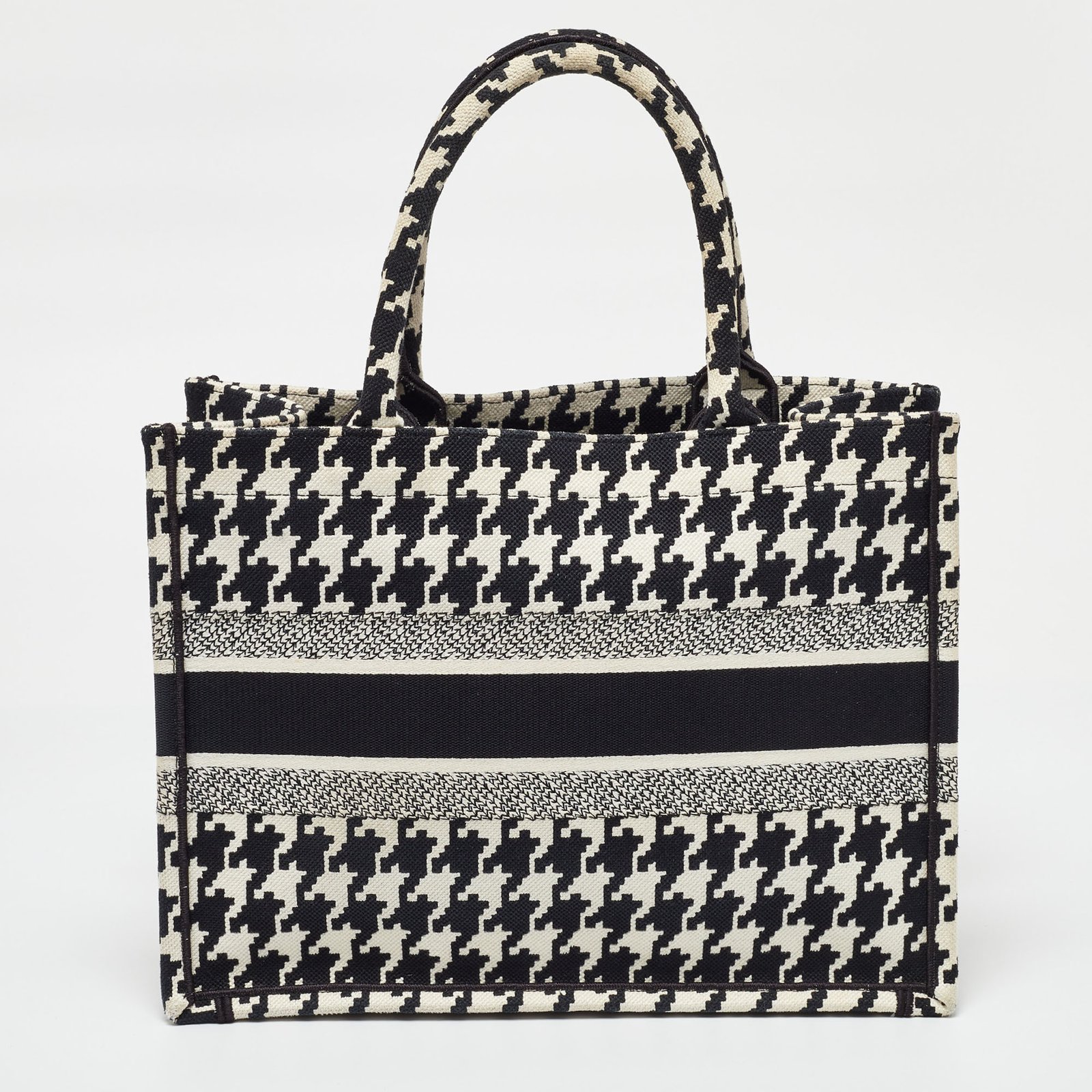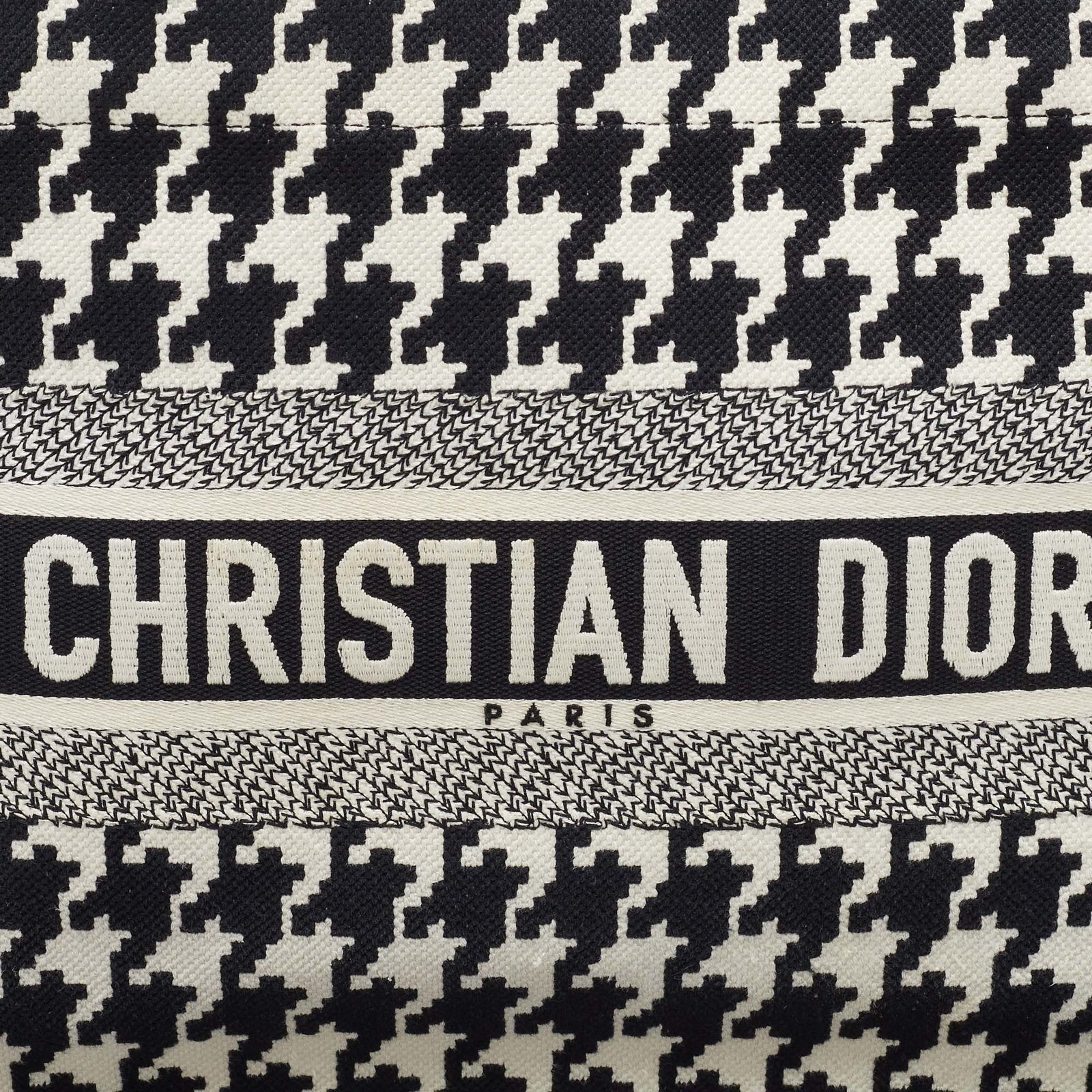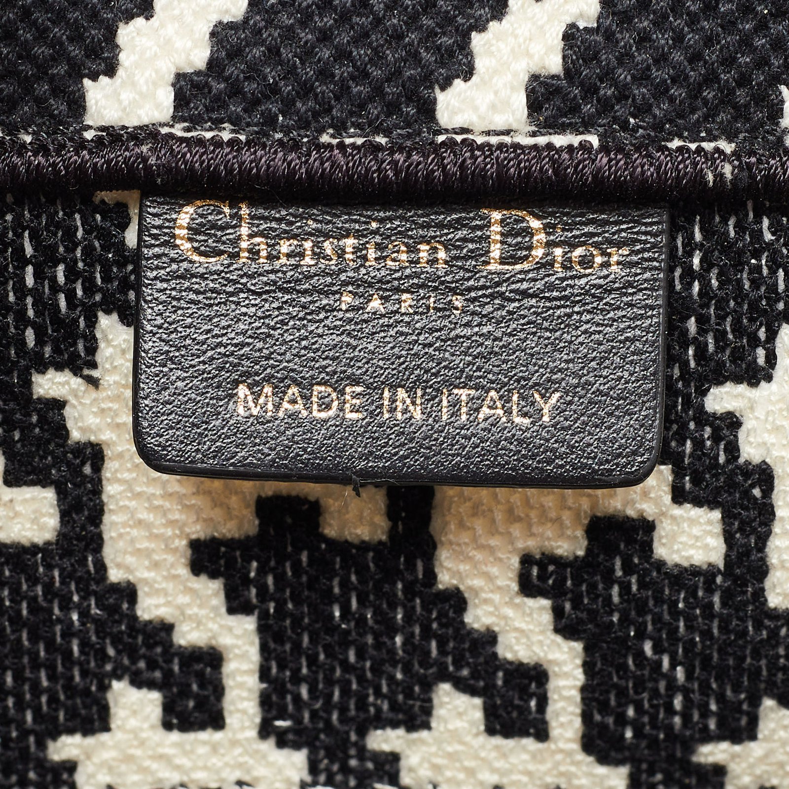 Dior Black/White Embroidered Macro Houndstooth Canvas Medium Book Tote