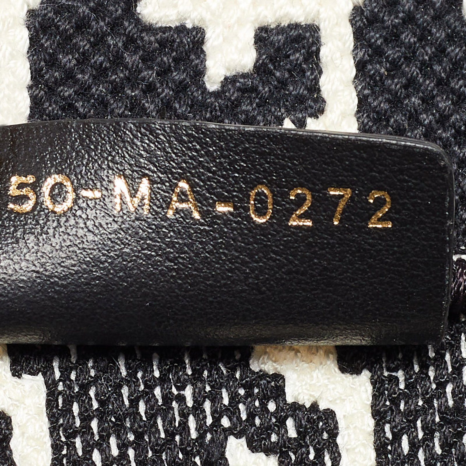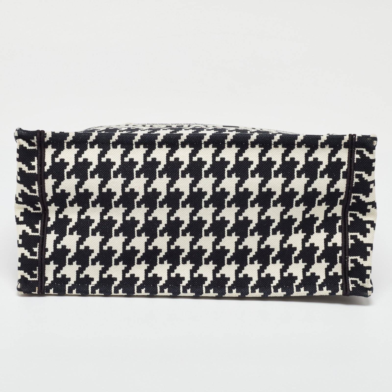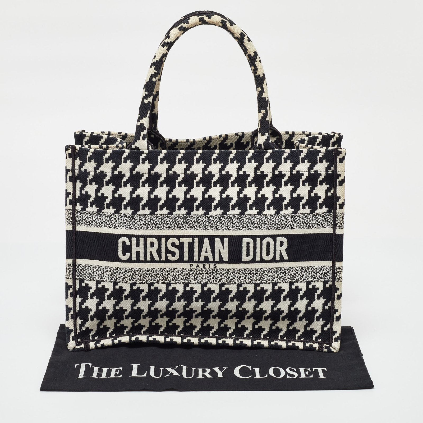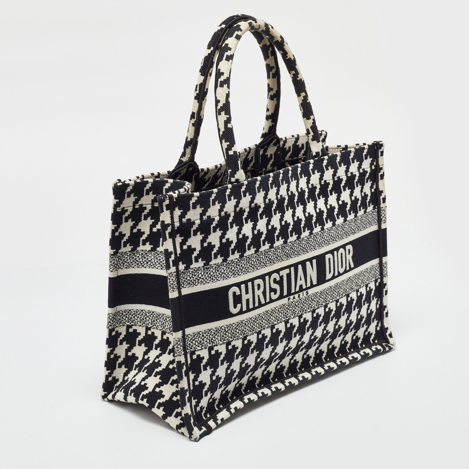 Dior Black/White Embroidered Macro Houndstooth Canvas Medium Book Tote