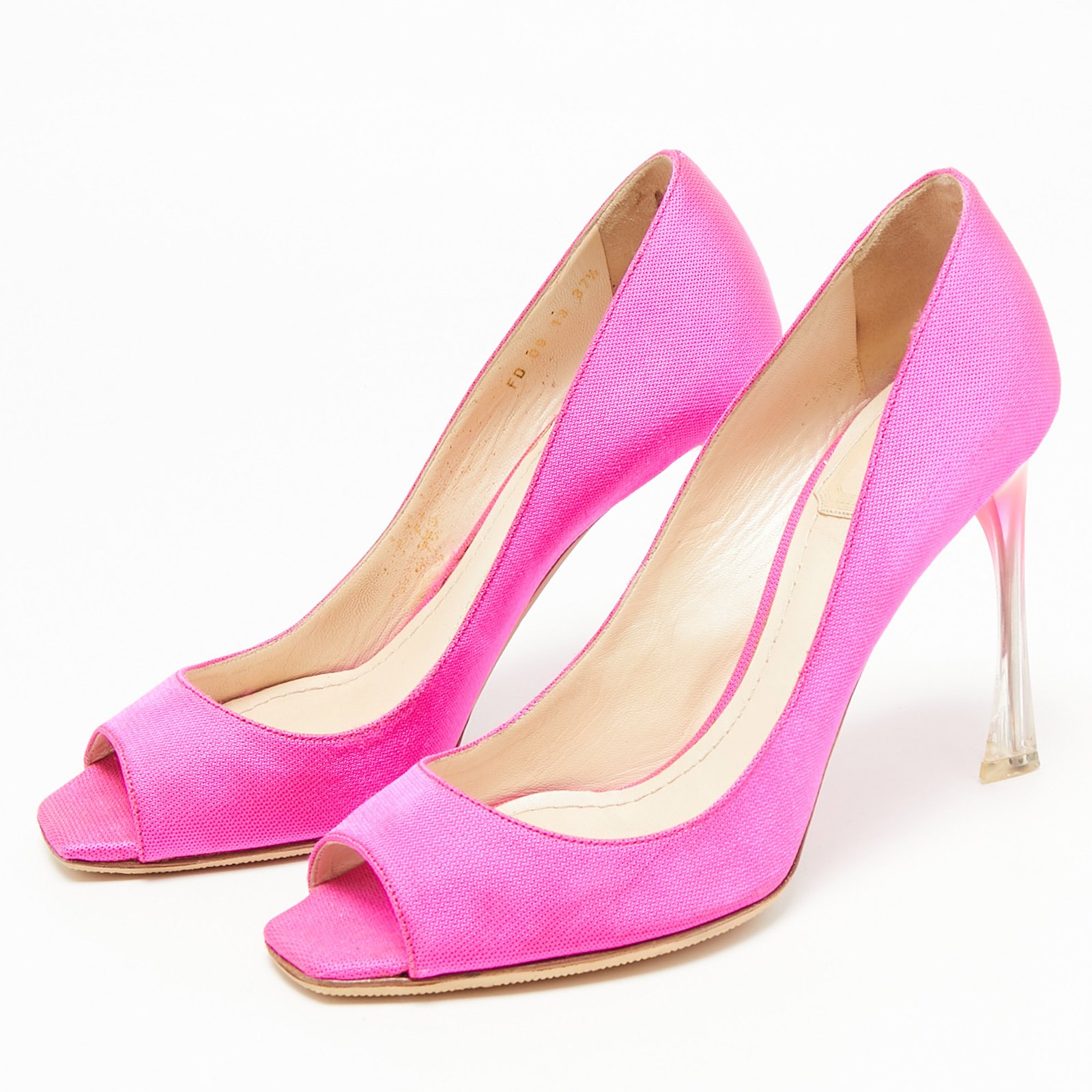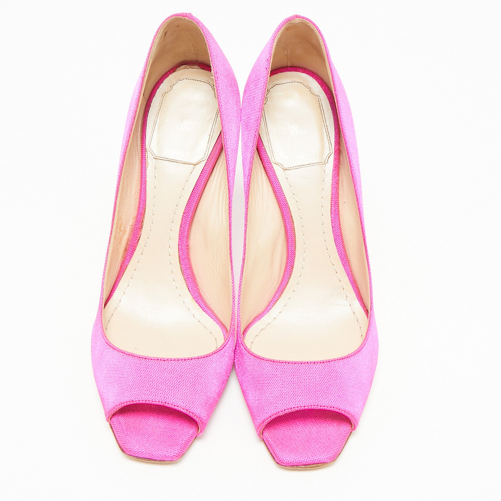 Dior Fuchsia Pink Canvas Flare Heel Peep Toe Pumps Size 37.5