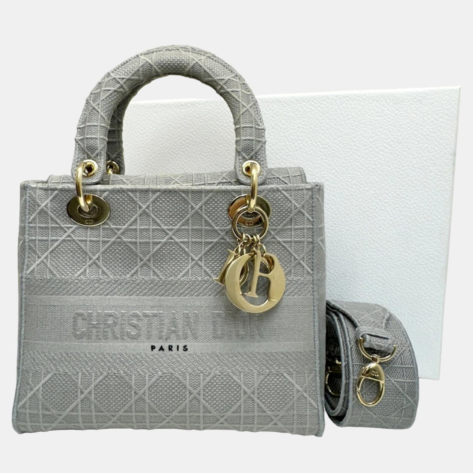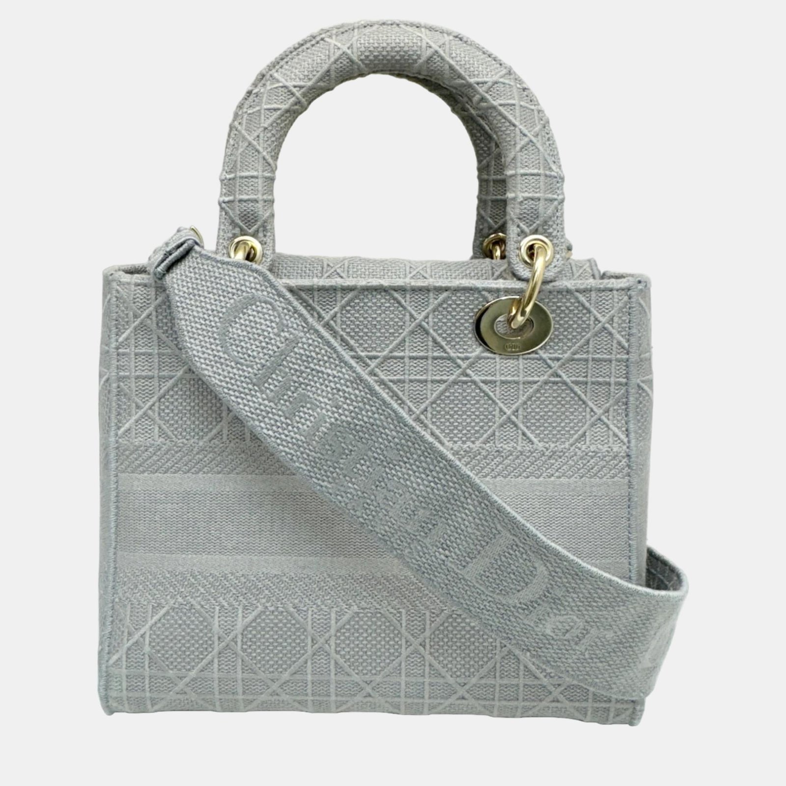 Dior Grey Canvas Medium Cannage Lady D-Lite Tote Bag