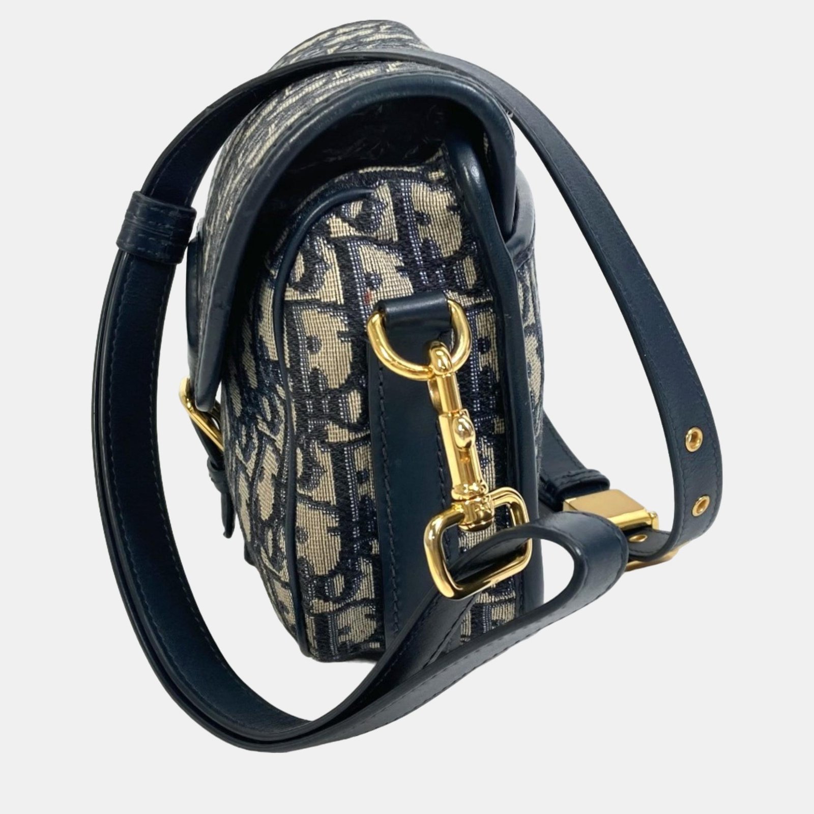 Dior Navy Blue Oblique Canvas Medium Bobby Shoulder Bag