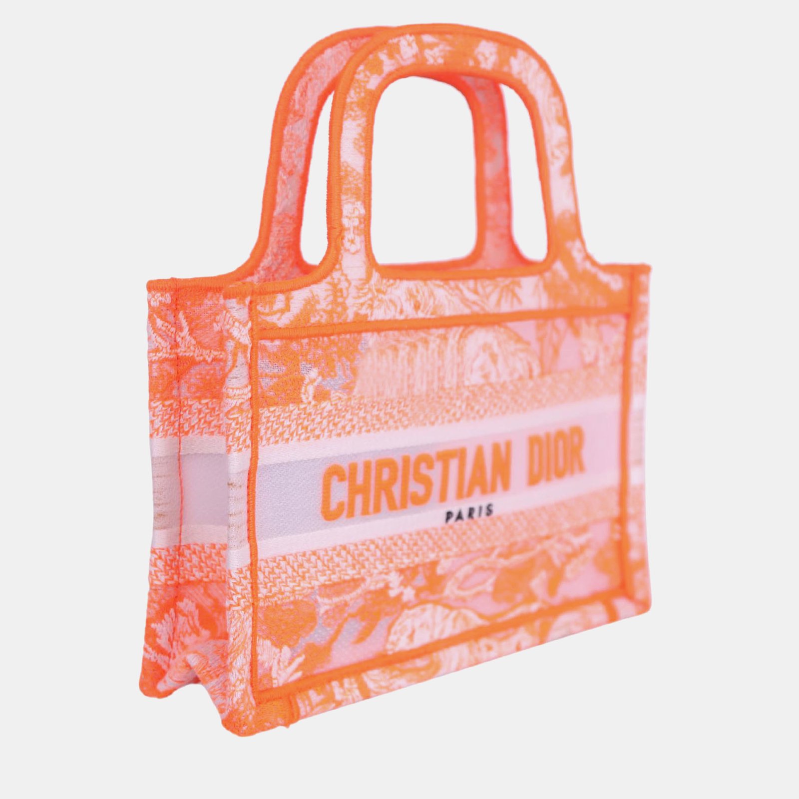 Dior Neon Orange Canvas Mini Book Tote Bag